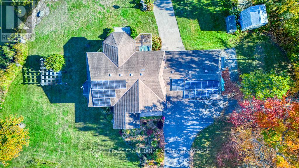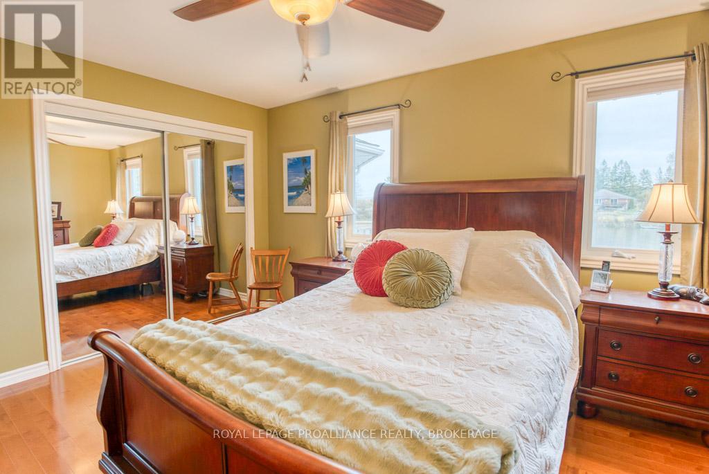 Discover an exceptional opportunity to own a beautifully maintained raised bungalow nestled on the shores of Colonel By Lake, just minutes from Kingston, yet offering a peaceful retreat from everyday life. Bright, open living spaces featuring large windows that frame beautiful lake views, a spacious eat-in kitchen with a walkout to the deck, two bedrooms on the main level, a renovated main bath with main-floor laundry. The finished lower level offers excellent versatility, with a generous walk-out level rec room with in-floor radiant flooring, loads of windows, an additional bedroom/den, a workout room/office, and a large bathroom with separate bath and shower. Outdoors, the property is designed for both lifestyle and function - enjoy the waterfront setting for kayaking, relaxing on the deck, or entertaining under the pergola - along with a 3-bay garage with a drive-through bay, two driveways, a drilled well, Bell Fibre internet, and a solar panel system that provides annual income. A rare opportunity to enjoy serene lakefront living with easy access to amenities, schools, highways, and services just minutes away. Looking for a home in fantastic shape with fantastic waterfront views, minutes from Kingston? Well, this could be the one! (id:64974)