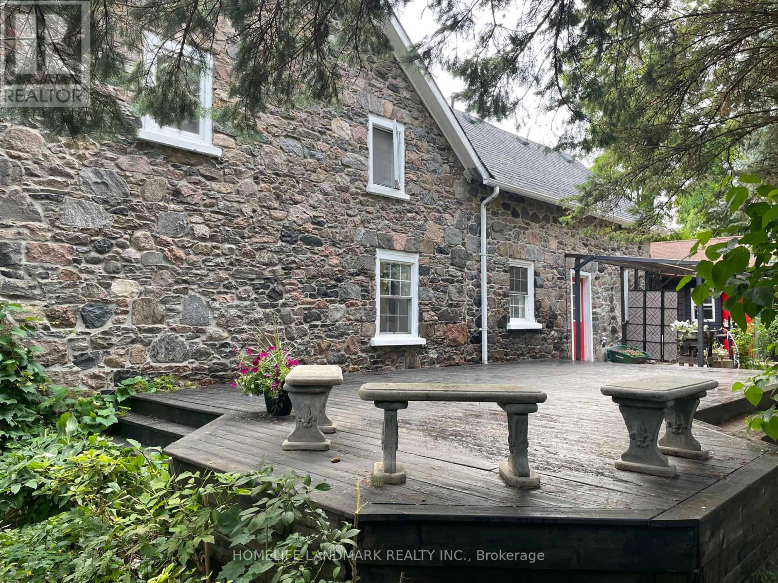 A Unique Heritage Stonehouse on a Big 144' Frontage Lot near Pickering Town Center; Full House Exterior Built with 2 Feet Thick Beautiful Raw Crystal Stones; Gothic Revival Architectural Style; A Serene Retreat Paradise with a Heavenly Perennial Garden. Existing 2 Legal Units above the Ground, Independent while Interconnected; North Wing Master Unit Offering 1 Master Bedroom, 1 Washroom and 1 Kitchen, Currently Tenanted; South Main Unit Offering 6 Bedrooms, 2 Washrooms and 1 Kitchen, Currently Owner & Renters Occupied; 2 Units Total Monthly Income $6850. Plus A Detached Garage, Used as Yoga Studio by the Owner Previously with 12+ Parking. Building Expansion Also Permitted by Heritage Committee. A Good Choice Whether to Use the Whole Property as a Single Family Dwelling with a Master Unit, or One Unit for Living and the Other for Rental Income, and with a Studio for Home Business, or Building and Converting into Your Dream Mansion Home. Sold As It Is. (id:64974)