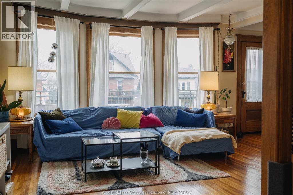 Solid brick, income producing property in one of downtown Windsor’s most desirable pockets, just steps from Riverside Drive. Offering three self-contained living spaces. This character-filled home features hardwood floors, original wood trim, large windows, covered front porch, and an oversized balcony. Main and second floors offer spacious 2-bedroom layouts, with a 1-bedroom loft on the third level. Main floor available for vacant possession — ideal for setting new rental rate or for owner-occupiers looking to live in one unit while offsetting mortgage costs with rental income. Shared basement laundry and front parking pad. Full basement offers excellent storage or future potential. A rare opportunity in a neighbourhood known for its charm, walkability, and long-term value. Please allow 24 hours for all showing requests. (id:64974)