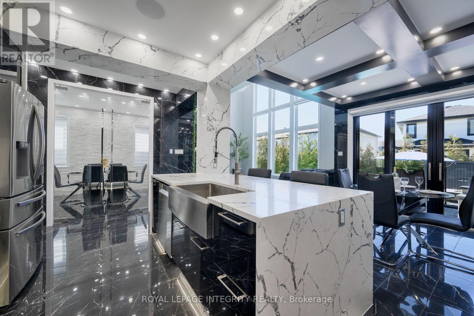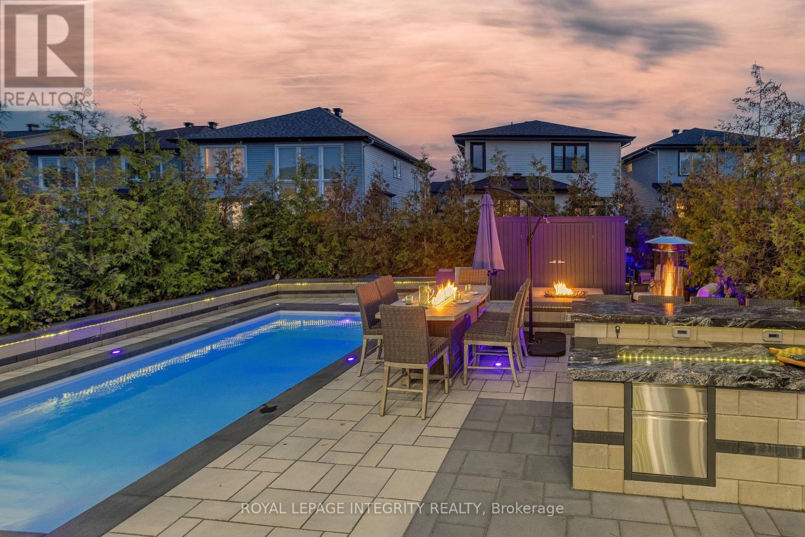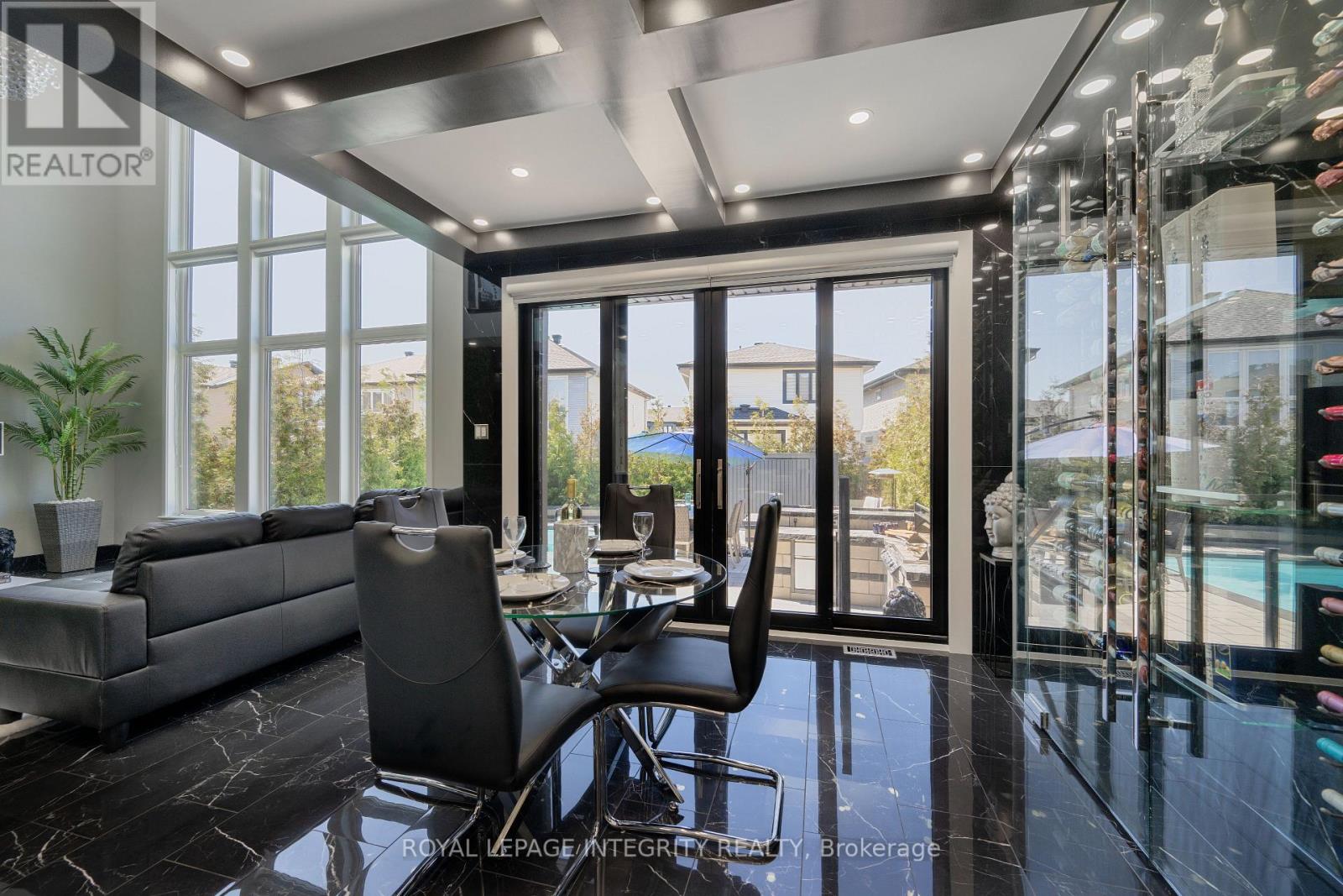 Experience unparalleled luxury at this exquisite property situated in the Blackstone area of Kanata/Stittsville. Boasting 6-bed & 4-bath, upgraded with $400K+ in custom luxury enhancements. Indulge in the gourmet kitchen, featuring one-of-a-kind upgrades & top-of-the-line appliances. Formal dining room befitting royalty with unparalleled upgrades. The eating area features a distinctive glass wine room with access to the sunlit great room accentuated by soaring ceilings & expansive windows. Retreat to the 2nd floor primary suite, complete with custom walk-in closet & 5-piece en-suite.3 additional bedrooms, a full bathroom & laundry room complete the 2nd floor. A fully finished basement offers 2 bedrooms, a full bathroom & spacious family/TV room. Outside, discover a private oasis with a pool, firepit, outdoor kitchen & cedar hedges offering privacy. With premium front double doors & stunning stone interlock, this home exudes sophistication at every turn. Elevate your lifestyle in this luxury property. (id:64974)