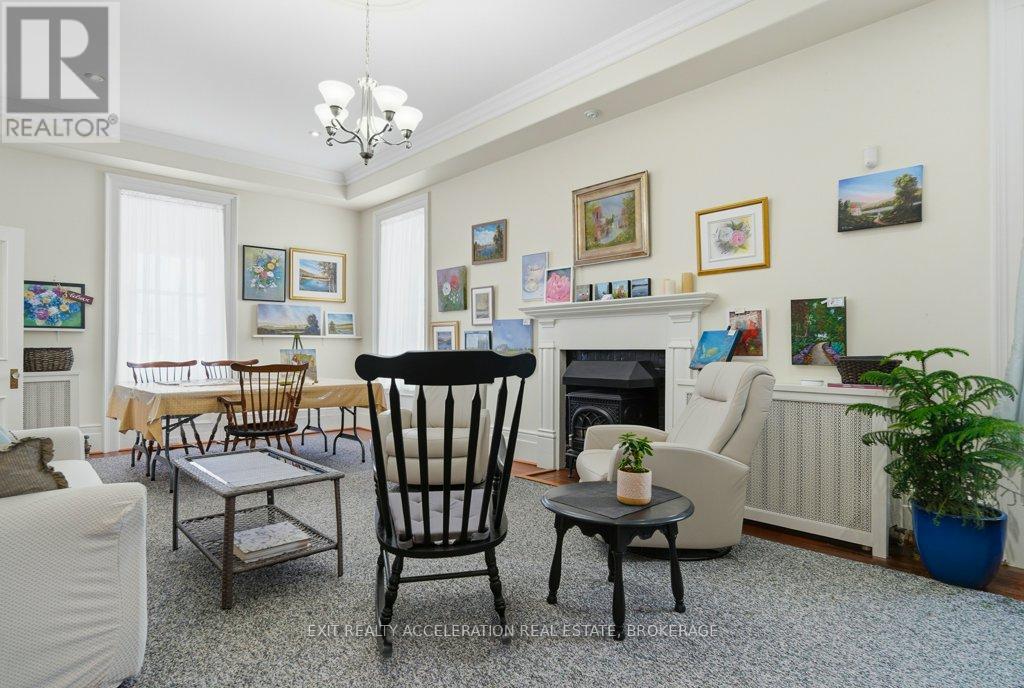 Welcome to your dream Victorian home in the heart of Napanee, Ontario! This exquisite 5-bedroom, 4-bathroom residence seamlessly blends the timeless elegance of the past with modern conveniences, offering a unique and enchanting living experience. Known as the "Hooper House" and constructed in 1864 during the infancy of Canada, you step into a world of charm as you enter this lovingly restored residence. Meticulous attention to detail is evident in every corner, from the intricate woodwork to the ornate period features that transport you to a bygone era. Immerse yourself in the warmth of hardwood floors, high ceilings, and the character-filled ambiance that defines this historic gem. The house sits on the original lot with large mature trees. A new high-efficiency boiler system provides a pleasant heat throughout the home - in floor heated bathrooms and bedrooms located upstairs (walls are 3 brick thick and are spray-foam insulated for low operating costs) as well as in floor heating in the mudroom. Some of the upgrades include: Upstairs efficiency suite with newly professionally installed kitchenette with new appliances, new screened in porch, new kitchen flooring, a new 2 piece bathroom on main level off kitchen (2023), 200 amp electric services with new wiring throughout the home, new second driveway/parking area. All plumbing has been replaced, there is a natural gas powered fully managed 24KW standby generator (2020), steel roof with lifetime warranty (2000), windows have been replaced to match original windows, chimneys rebuilt to match original chimneys.. (id:64974)