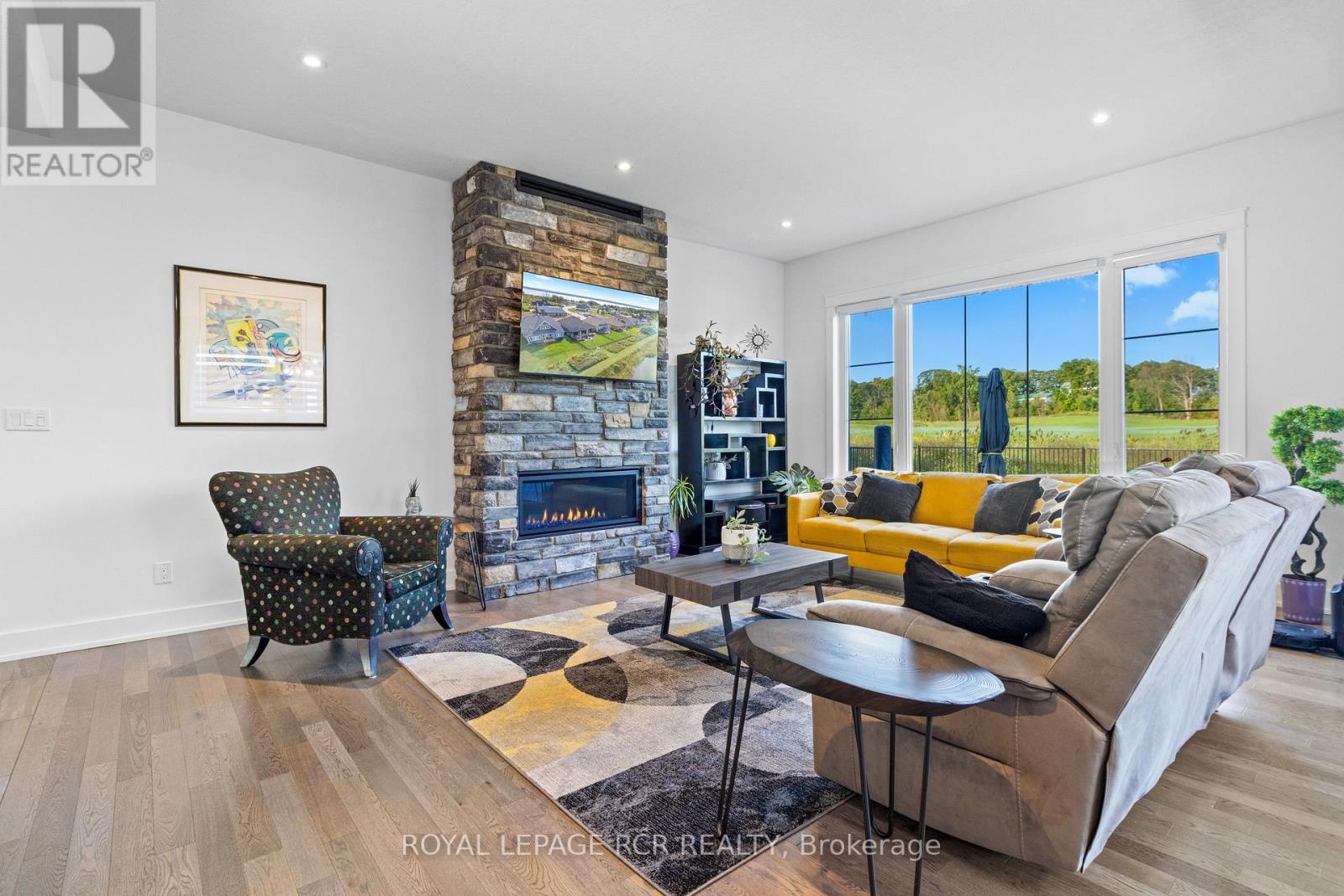 The ultimate in luxury living in this beautifully built bungalow backing onto the 12th hole in the Cobble Beach Golf Resort, a waterfront community on the shores of Georgian Bay. This home operates with a newly installed $50,000 solar panel system, including Tesla Powerwall that acts as a back-up generator and an EV charger. Make this your new home with over 3600 sq ft of finished living space, including a professionally finished basement with 2 spare bedrooms, a wet bar, steam room, elegant wine cellar and plenty of enteratinment space. Designed with elegance and comfort in mind, this 4-bed, 3-bath home features a stunning blend of functional design and modern finishes. The main floor offers 9 and 10 foot ceilings with open concept living, a stone fireplace, and large windows bringing in natural light. A gourmet kitchen with granite countertops, huge island with breakfast bar, and ample storage perfect for entertaining or casual family meals. The main floor primary suite is a luxurious retreat featuring a spa-inspired ensuite, a spacious walk-in closet and a walk out to your own private deck. An additional main floor bedroom faces the front of the house alternatively offering a spacious office. The large covered front porch offers a welcoming space for your morning coffee as the sun rises, while your choice of multiple backyard decks with golf course views are perfect for watching the sunset as your day winds down. Quiet, friendly, and desirable neighborhood. Enjoy acess to all the resort-style amenities Cobble Beach is known for: an award-winning golf course, beachfront access, tennis courts, spa, fitness centre, nature trails, winter sports, and fine dining at the clubhouse all just steps from your door. Whether you're looking for a full-time residence or a 4-season escape, this is your opportunity to own in one of Ontario's most sought-after lifestyle communities. Book your private showing today and experience luxury living at Cobble Beach! (id:64974)