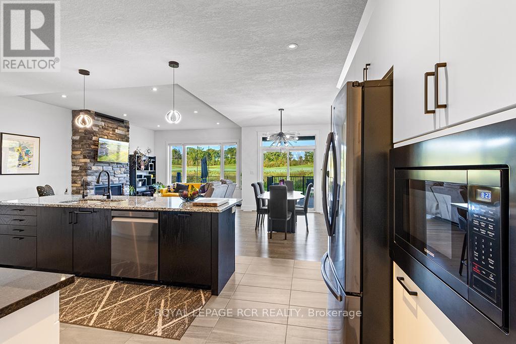 The ultimate in luxury living in this beautifully built bungalow backing onto the 12th hole in the cobble Beach Golf Resort, a waterfront community on the shores of Georgian Bay. This home operates with a newly installed $50,000 solar panel system, including a Tesla Powerwall that acts as a back-up generator and an EV charger. Make this your new home with over 3600 sq ft of finished living space, including a professionally finished basement with 2 spare bedrooms, a wet bar, steam room, elegant wine cellar, and plenty of entertainment space. Designed with elegance and comfort in mind, this 4-bed, 3-bath home features a stunning blend of functional design and modern finishes. The main floor offers 9 and 10 foot ceilings with open concept living, a stone fireplace, and large windows bringing in natural light. A gourmet kitchen with granite countertops, huge island with breakfast bar, and ample storage perfect for entertaining or casual family meals. The main floor primary suite is a luxurious retreat featuring a spa-inspired ensuite, a spacious walk-in closet and a walk-out to your own private deck. An additional main floor bedroom faces the front of the house alternatively offering a spacious office. The large covered front porch offers a welcoming space for your morning coffee as the sun rises, while your choice of multiple backyard decks with golf course views are perfect for watching the sunset as your day winds down. Quiet, friendly, and desirable neighbourhood. Enjoy access to all the resort-style amenities Cobble Beach is known for: an award-winning golf course, beachfront access, tennis courts, spa, fitness centre, nature trails, winter sports, and fine dining at the clubhouse all just steps from your door. Whether you're looking for a full-time residence or a 4-season escape, this is your opportunity to own in one of Ontario's most sought-after lifestyle communities. Book your private showing today and experience luxury living at Cobble Beach! (id:64974)