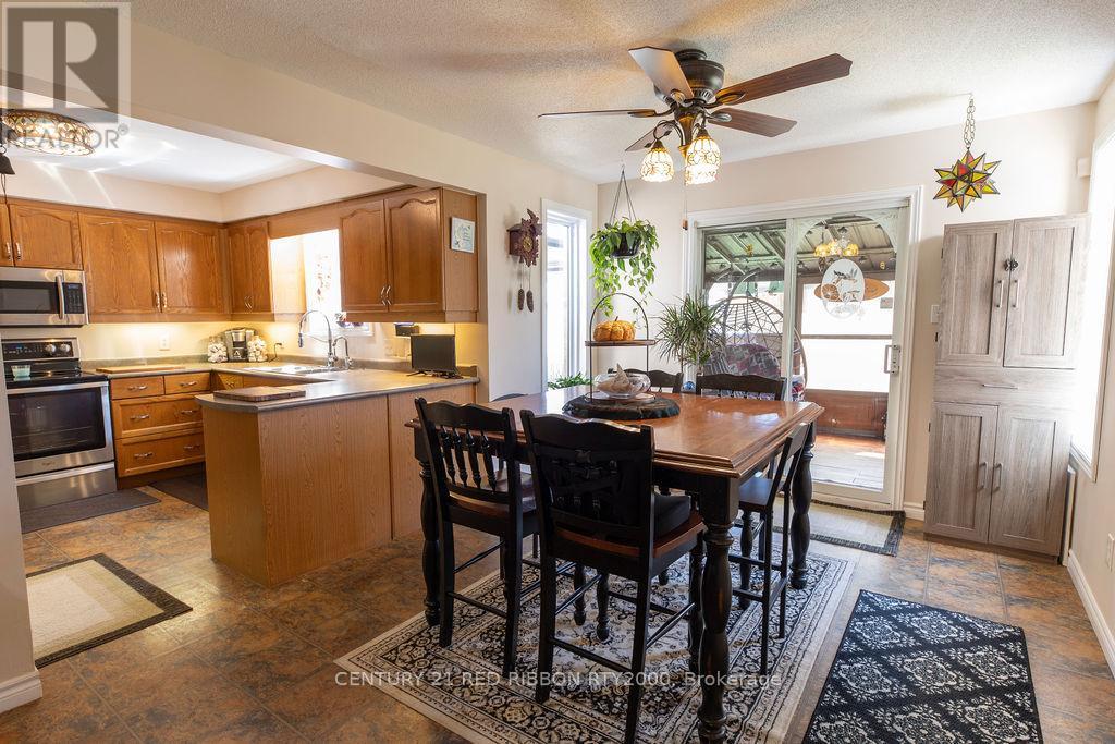 Charming Three-Bedroom Home in Strathroy's North End. Discover the perfect blend of comfort and convenience in this lovely three-bedroom, two-story home located in the sought-after north end of Strathroy. This residence boasts 2.5 baths and offers an array of features that make it truly special. Upon entering, you'll be greeted by a spacious main level that includes a well-appointed kitchen and eating area. With ample cupboard space, this kitchen is perfect for culinary enthusiasts. Enjoy easy access to the picturesque three-season sunroom and back deck, ideal for entertaining or relaxing with family. The spacious living room features a cozy gas fireplace, perfect for chilly evenings, while the formal dining room sets the stage for delightful dinner parties. For added convenience, the main floor laundry, a two-piece powder room, and direct access to the double car garage complete this level. Venture upstairs to find three generously sized bedrooms, including a nice primary suite with a walk-in closet and a well-designed four-piece ensuite. An additional four-piece main washroom serves the other two bedrooms, ensuring comfort for all. Step outside to appreciate the beautifully landscaped yard, complete with a three-season sunroom, a deck featuring a stylish metal gazebo, and a secure, fully fenced backyard-ideal for pets and children. A convenient storage shed provides extra space for outdoor equipment. Recent updates include a new roof (2021), a furnace and central air conditioning system (2024), and many window replacements completed two years ago. Additional amenities include an alarm system, lots of storage, a large cold cellar, a Sandpoint system for easy lawn watering, and 200-amp service. Situated on a desirable lot close to great schools, the Gemini Arena, and easy access to Highway 402, this home invites you to enjoy a vibrant community lifestyle. Don't miss the opportunity to make this charming home your own-it's a must-see! (id:64974)