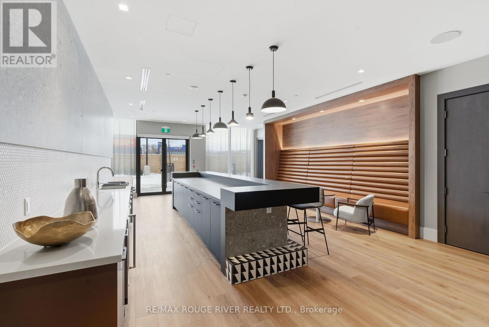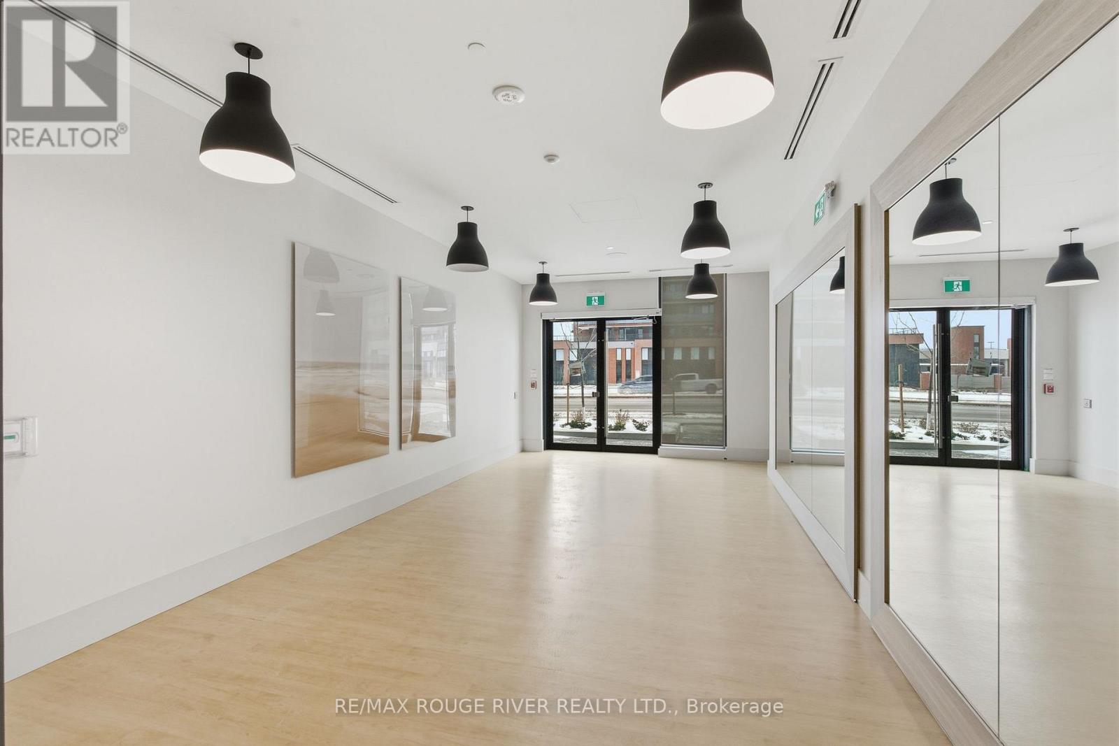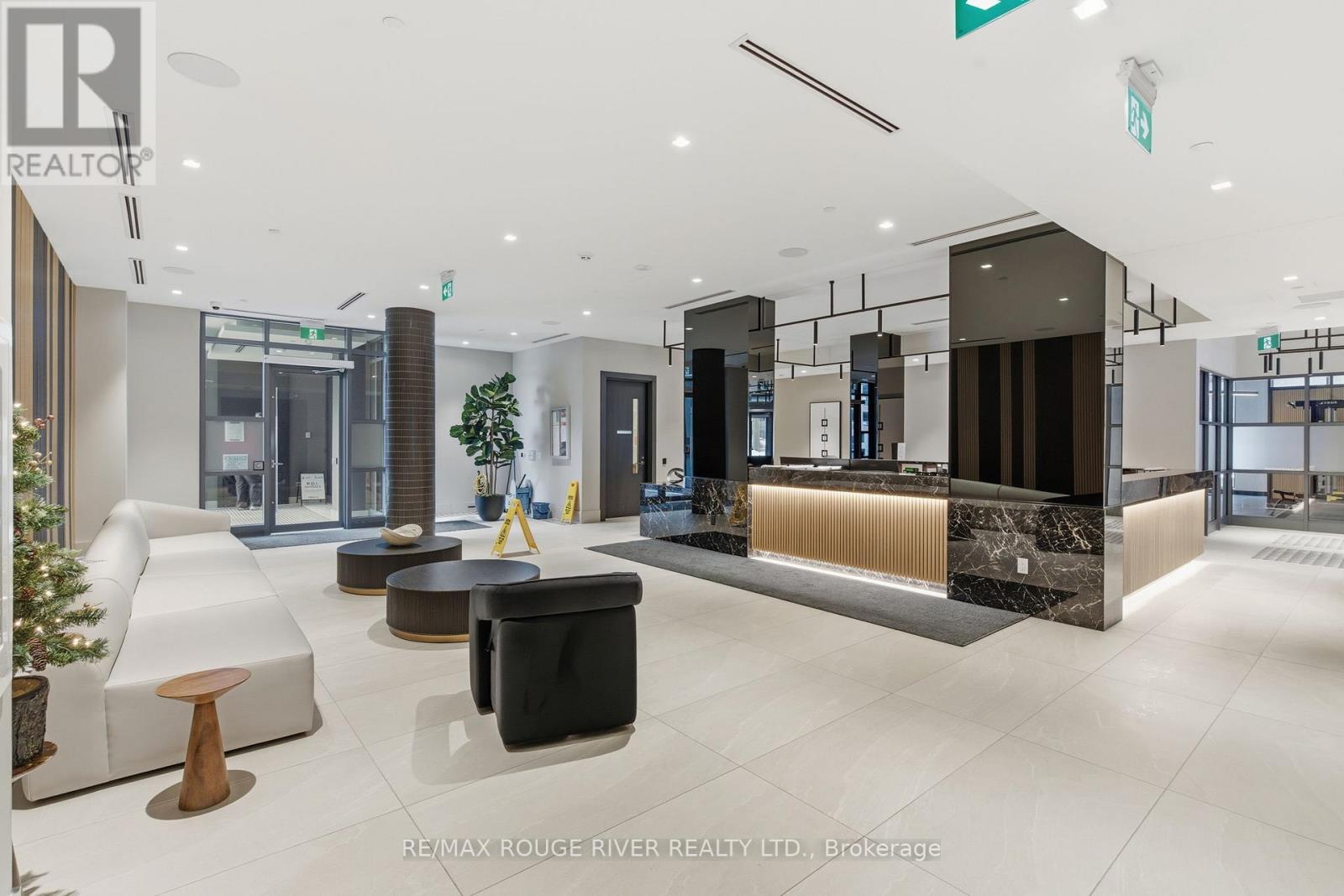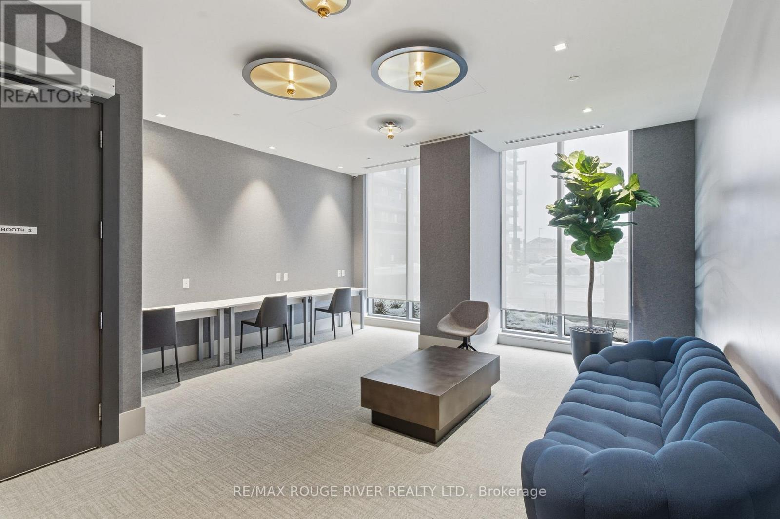 Fantastic opportunity to own in one of Oshawa's most sought-after condo communities. This modern 1+1 bed, 1 bath unit at U.C. Tower 2 offers a smart, low-maintenance lifestyle in the highly desirable Windfields neighbourhood, steps to Ontario Tech University, Durham College, shopping, transit, restaurants, and quick access to Highway 407. Positioned on the 23rd floor with east exposure, the unit enjoys unobstructed views and stunning sunsets that make coming home feel like a daily reset. The bright, open-concept layout is filled with natural light from floor-to-ceiling windows, creating a functional and modern living space. The upgraded kitchen features stainless steel appliances, quartz countertops, contemporary cabinetry, and ample storage, seamlessly connecting to the living area and private east-facing balcony-perfect for morning coffee or winding down at the end of the day. The primary bedroom offers a comfortable retreat with a generous closet, while the versatile den works beautifully as a home office, study area, reading nook, or occasional guest space. Additional conveniences include in-suite laundry and an owned underground parking space for secure, weather-protected parking year-round. U.C. Tower 2 offers an exceptional collection of amenities including two fully equipped gyms, spin studio, yoga studio, business lounge, private study pods, co-working spaces, theatre room, games lounge, kids play area, outdoor terrace with BBQ stations, concierge service, guest suites, secure bike storage, dog park, and pet spa with dog wash-everything you need to live, work, and relax without leaving home. (id:64974)