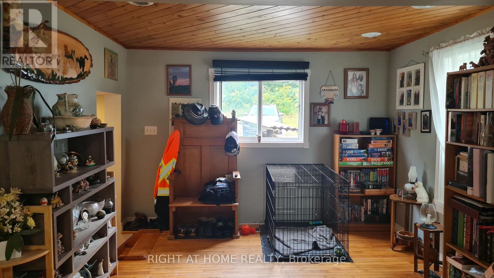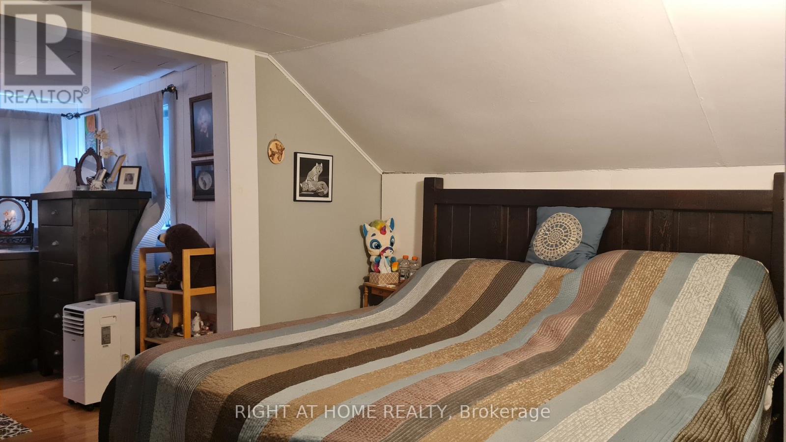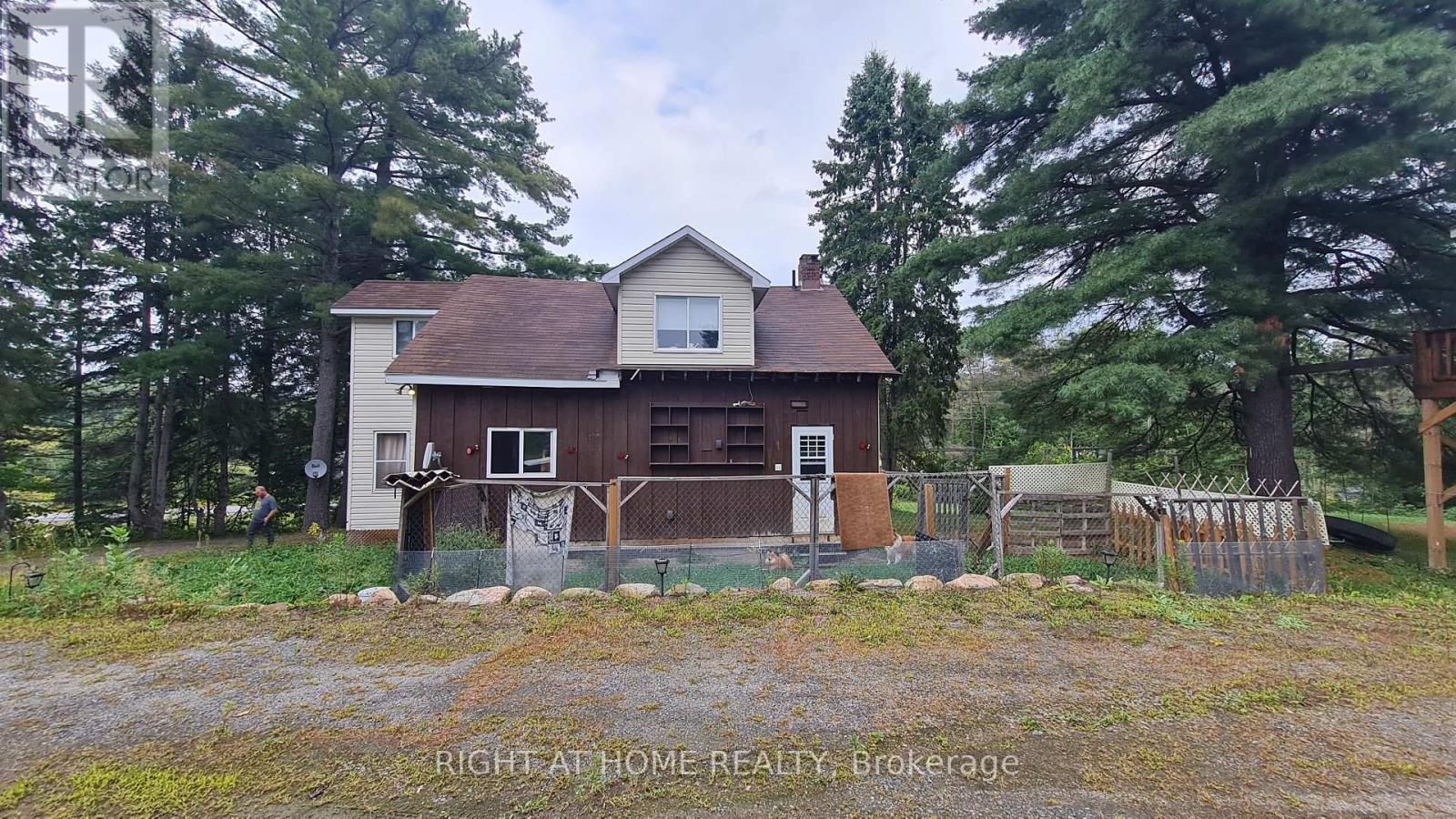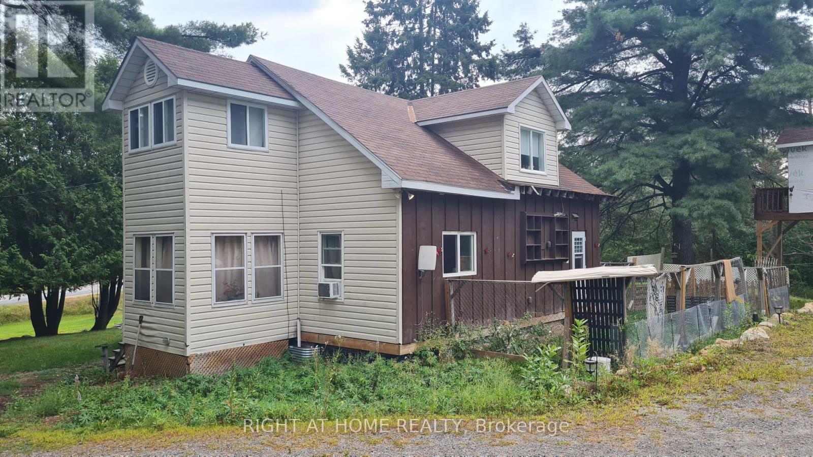 Welcome to this well-maintained detached 3 Bedroom, 1 Bath Home on HWY 60, Huntsville. Located just 10 minutes from downtown Huntsville, this house offers comfort, privacy, and character. The bright, open-concept living and dining area flows seamlessly into a cheerful kitchen with a walkout to the backyard and an island perfect for family gatherings. A versatile bonus room on the main floor provides the ideal space for a reading nook, playroom, or music room. The main level features hardwood flooring, soaring 10-ft ceilings, and plenty of natural light. Upstairs, you'll find three bedrooms, including a spacious primary suite with double closets and a sitting area, along with a 4-piece bathroom. The property also boasts a 24 x 26 detached double-car garage, a circular driveway with plenty of parking, an 8 x 10 insulated and wired treehouse, a fire pit, and beautifully landscaped gardens. All of this is within walking distance to public access at Peninsula Lake. Close to shops, hospital, school, parks and Echo Valley Nature & Bike trails. (id:64974)