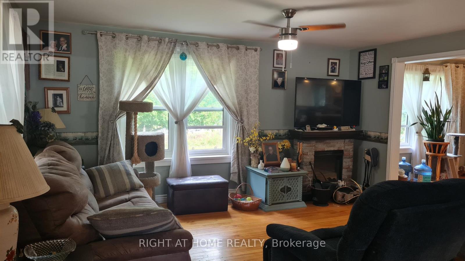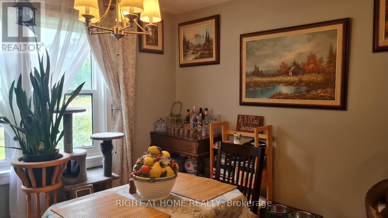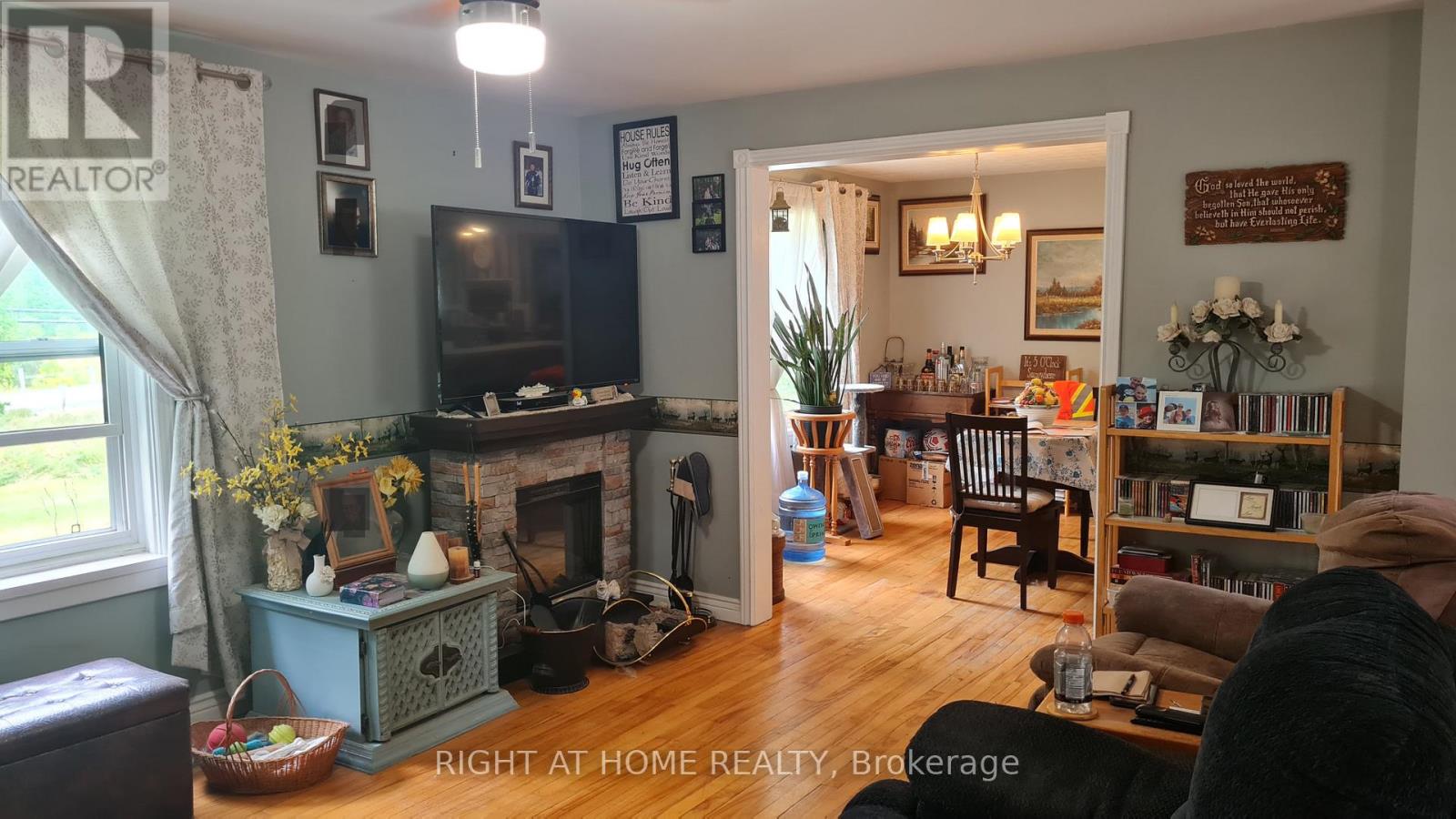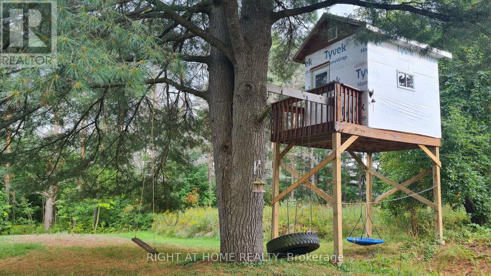 Welcome to this well-maintained detached 3 Bedroom, 1 Bath Home on HWY 60, Huntsville. Located just 10 minutes from downtown Huntsville, this house offers comfort, privacy, and character. The bright, open-concept living and dining area flows seamlessly into a cheerful kitchen with a walkout to the backyard and an island perfect for family gatherings. A versatile bonus room on the main floor provides the ideal space for a reading nook, playroom, or music room. The main level features hardwood flooring, soaring 10-ft ceilings, and plenty of natural light. Upstairs, you'll find three bedrooms, including a spacious primary suite with double closets and a sitting area, along with a 4-piece bathroom. The property also boasts a 24 x 26 detached double-car garage, a circular driveway with plenty of parking, an 8 x 10 insulated and wired treehouse, a fire pit, and beautifully landscaped gardens. All of this is within walking distance to public access at Peninsula Lake. Close to shops, hospital, school, parks and Echo Valley Nature & Bike trails. (id:64974)