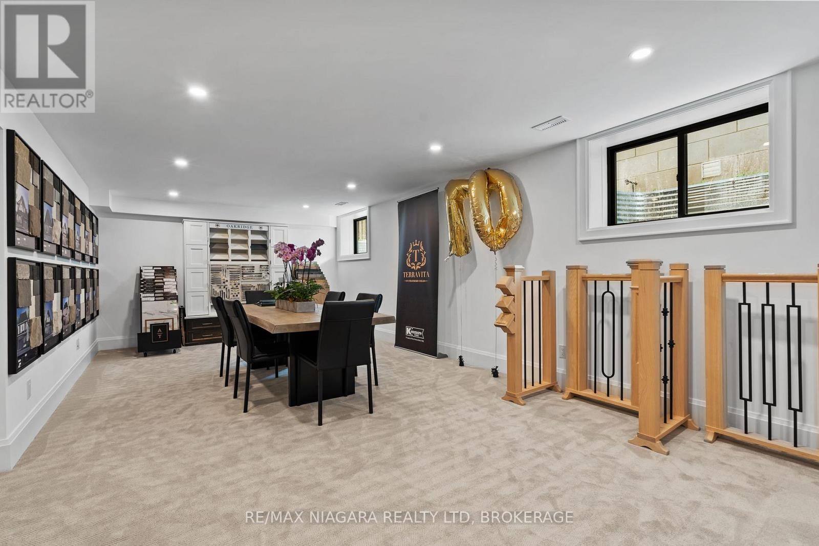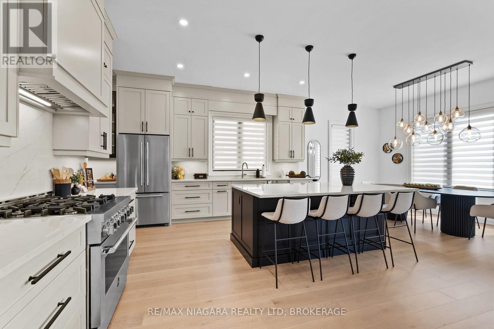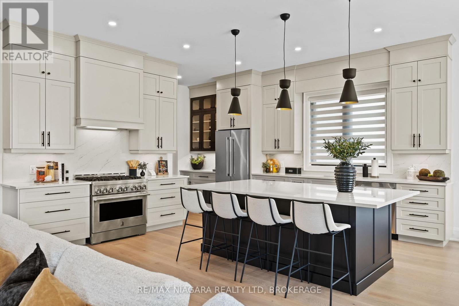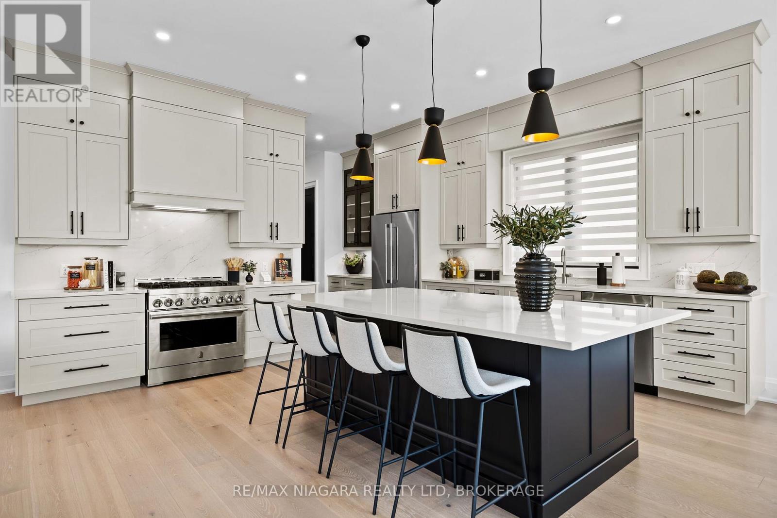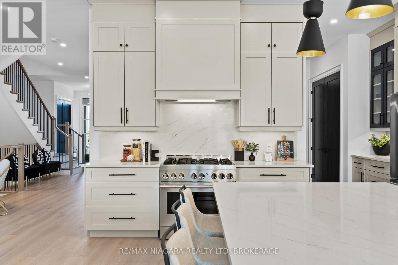 MODEL HOME FOR SALE- Welcome to luxury living in Terravita, Niagara Falls' premier new home community. This brand-new Kenmore Homes model home offers an exquisite blend of modern elegance and thoughtful design, with over 4,000 sq. ft. of finished living space. Featuring 10' ceilings on the main floor and 9' ceilings on the second, the home is flooded with natural light, enhanced by 8' doors, automatic window coverings, and pot lights throughout the interior and exterior. The spacious 4+1 bedroom, 4.5 bathroom layout ensures that every bedroom has direct access to a bathroom-ideal for families or guests.The gourmet kitchen is equipped with high-end Jenn-Air S/S appliances, including a gas stove, fridge, bar fridge, built-in microwave, and dishwasher. A sleek quartz backsplash, oversized kitchen island, and a butler's station/coffee bar with pantry closet combine functionality with luxury. The primary suite offers a peaceful retreat with a massive walk-in closet and a spa-like ensuite featuring a glass-tiled shower, freestanding tub, and a modern fluted wood panel accent wall.Upstairs, a versatile loft provides additional living space, and the second-floor laundry includes both washer and dryer. The finished basement offers excellent flexibility with legal egress windows, a large bedroom/office/gym area, spacious recreation room ideal for a home theatre or games area, two storage rooms, and a modern 3-piece bathroom.The exterior of the home showcases timeless, elegant curb appeal with a stone and stucco façade, paver stone driveway, front irrigation system, and a covered rear patio with glass railing-perfect for outdoor enjoyment. Located near schools, walking trails, golf courses, wineries, fine dining, all major amenities and quick QEW access. Note: Move-in ready with a flexible closing date. The list price includes $185,000 in premium upgrades and the current $70,000 promotional incentive. This home can be rebuilt for $1,329,000 without upgrades. Luxury Certified (id:64974)