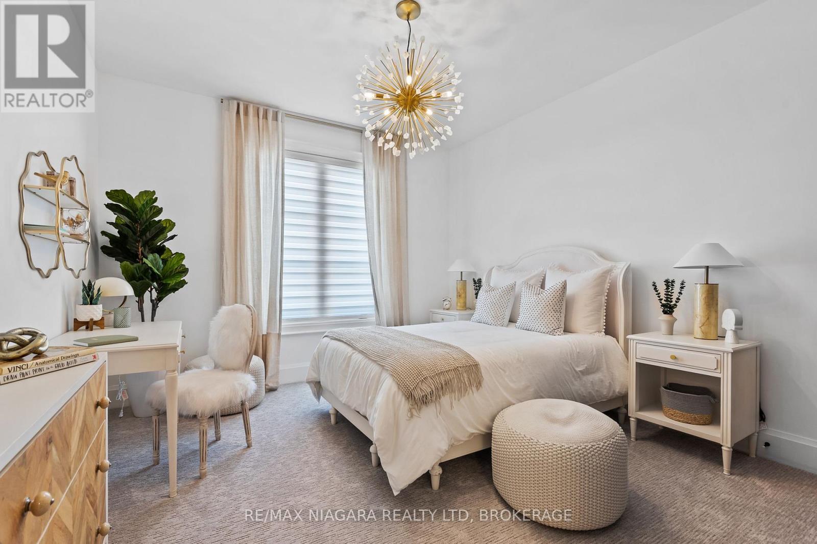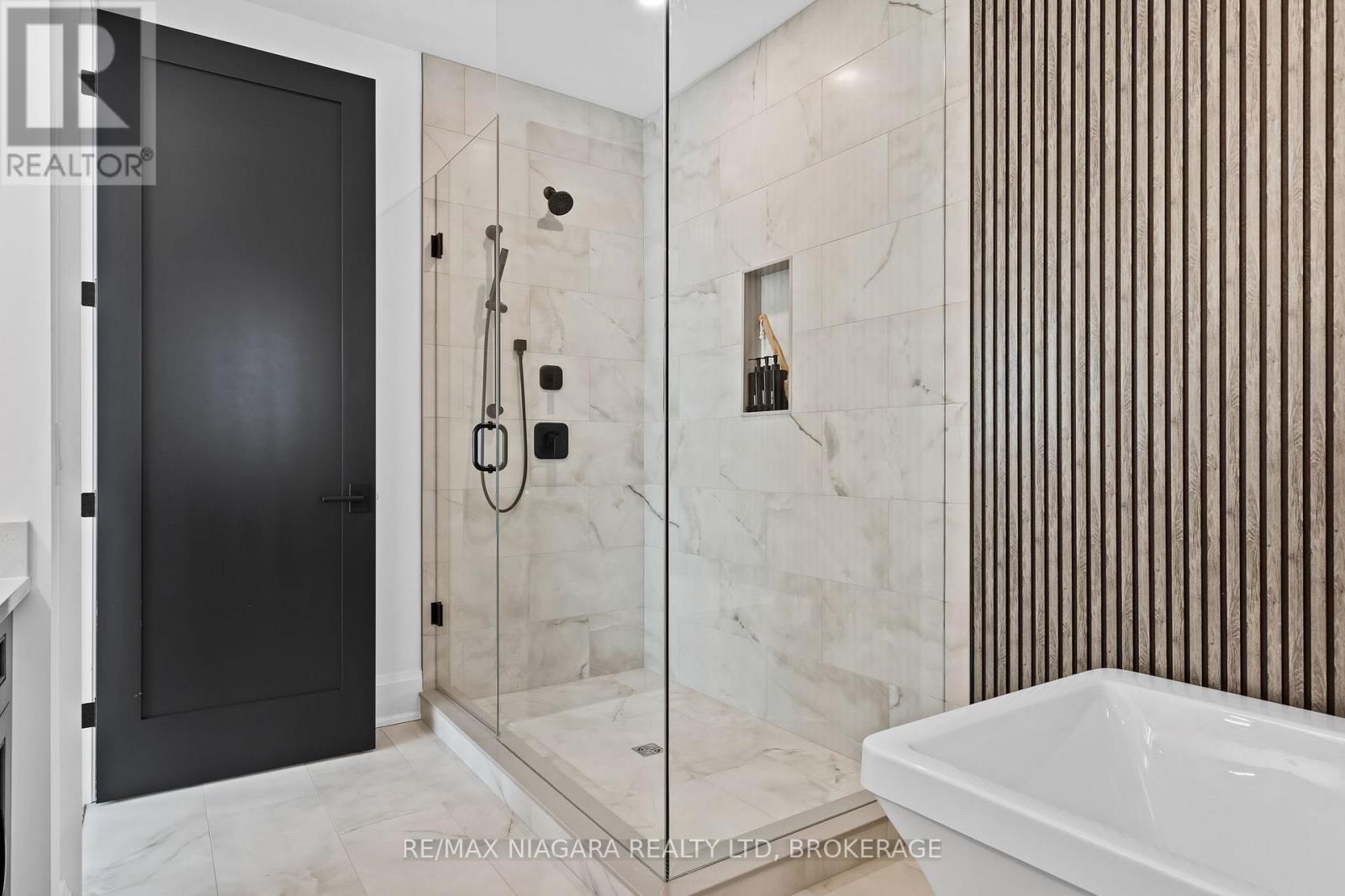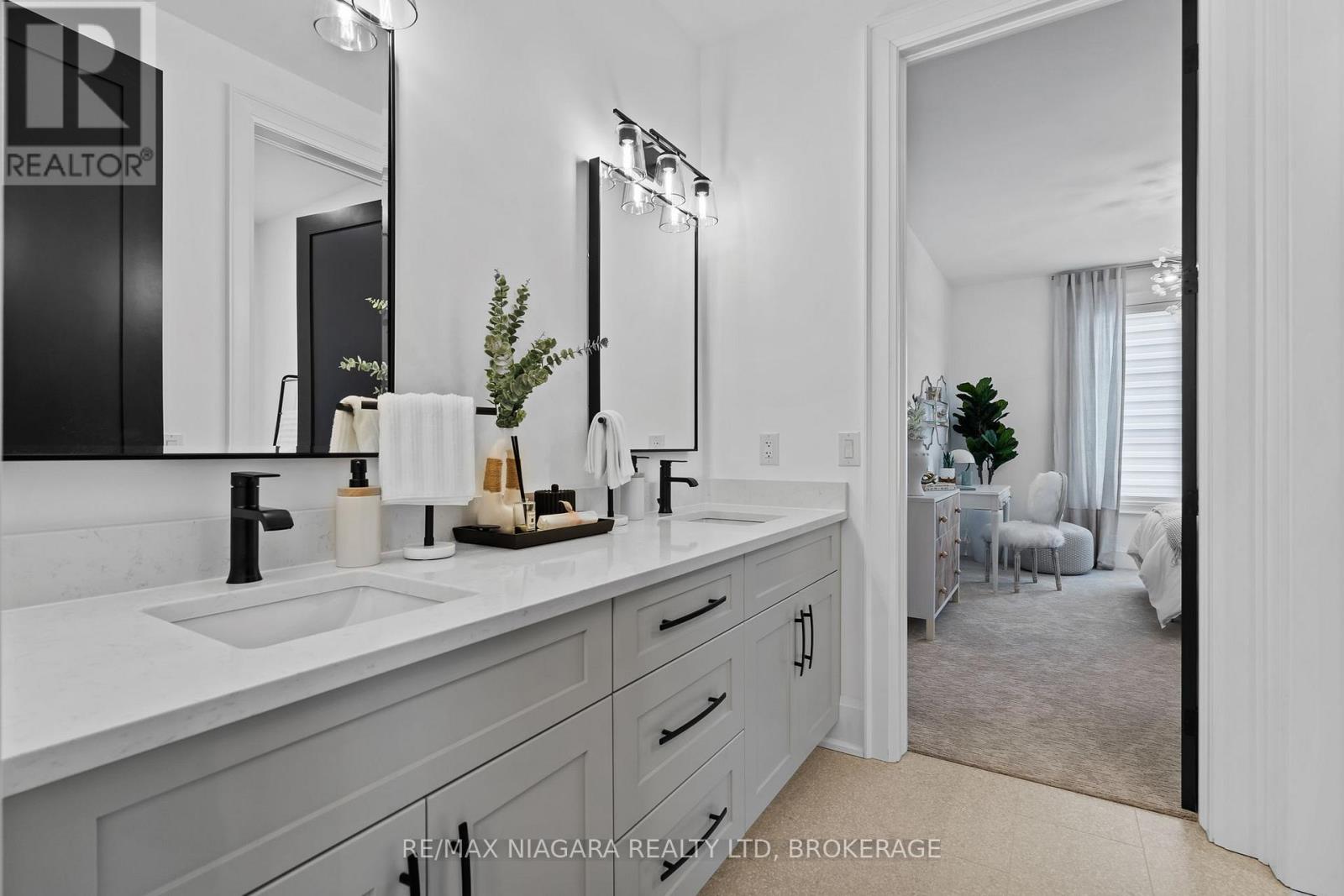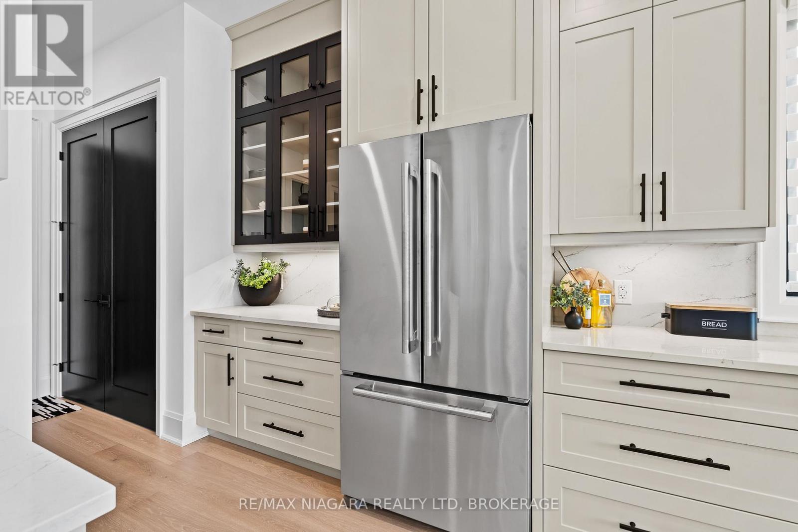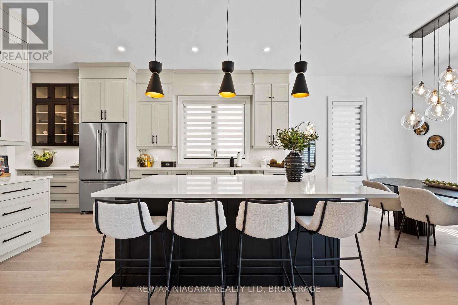 MODEL HOME FOR SALE- Welcome to luxury living in Terravita, Niagara Falls' premier new home community. This brand-new Kenmore Homes model home offers an exquisite blend of modern elegance and thoughtful design, with over 4,000 sq. ft. of finished living space. Featuring 10' ceilings on the main floor and 9' ceilings on the second, the home is flooded with natural light, enhanced by 8' doors, automatic window coverings, and pot lights throughout the interior and exterior. The spacious 4+1 bedroom, 4.5 bathroom layout ensures that every bedroom has direct access to a bathroom-ideal for families or guests.The gourmet kitchen is equipped with high-end Jenn-Air S/S appliances, including a gas stove, fridge, bar fridge, built-in microwave, and dishwasher. A sleek quartz backsplash, oversized kitchen island, and a butler's station/coffee bar with pantry closet combine functionality with luxury. The primary suite offers a peaceful retreat with a massive walk-in closet and a spa-like ensuite featuring a glass-tiled shower, freestanding tub, and a modern fluted wood panel accent wall.Upstairs, a versatile loft provides additional living space, and the second-floor laundry includes both washer and dryer. The finished basement offers excellent flexibility with legal egress windows, a large bedroom/office/gym area, spacious recreation room ideal for a home theatre or games area, two storage rooms, and a modern 3-piece bathroom.The exterior of the home showcases timeless, elegant curb appeal with a stone and stucco façade, paver stone driveway, front irrigation system, and a covered rear patio with glass railing-perfect for outdoor enjoyment. Located near schools, walking trails, golf courses, wineries, fine dining, all major amenities and quick QEW access. Note: Move-in ready with a flexible closing date. The list price includes $185,000 in premium upgrades and the current $70,000 promotional incentive. This home can be rebuilt for $1,329,000 without upgrades. Luxury Certified (id:64974)
