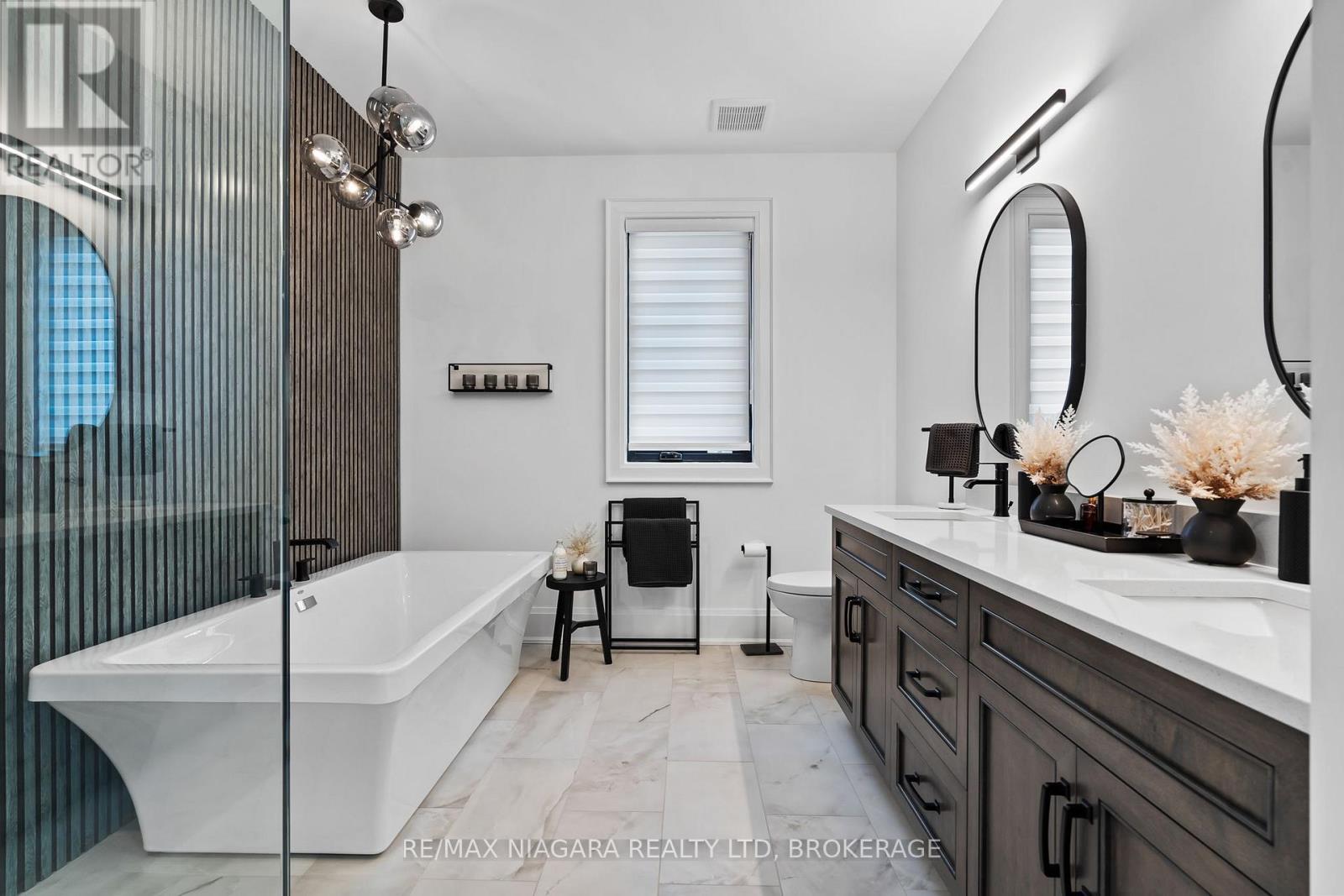 **MODEL HOME FOR SALE** - Welcome to luxury living in Terravita, Niagara Falls' luxury new home community. This brand-new fully finished Kenmore Homes model home offers over 4,000 sq. ft. of finished living space, blending style, comfort, and thoughtful design. Featuring 10' ceilings on the main floor, the home is filled with natural light and elevated by 8' doors, automatic window coverings, and pot lights throughout.With 4+1 bedrooms and 4.5 bathrooms, this home is ideal for families or guests, with each bedroom offering direct bathroom access. The gourmet kitchen features high-end Jenn-Air stainless steel appliances, including gas stove, fridge, bar fridge, B/I microwave, & dishwasher along with a quartz backsplash, oversized island, and butler's station/coffee bar with pantry closet.The primary suite includes a walk-in closet and a spa-inspired ensuite with a glass-tiled shower, freestanding tub, and fluted wood accent wall. Upstairs, a versatile loft provides additional living space, and the second-floor laundry includes washer and dryer.The finished basement adds flexibility with legal egress windows, a large bedroom or office/gym, spacious rec room, two storage rooms, and a modern 3-piece bathroom.Outside, enjoy timeless curb appeal with a stone and stucco façade, paver stone driveway, front irrigation system, and covered rear patio with glass railing. Conveniently located near schools, walking trails, golf courses, wineries, dining, amenities, and quick QEW access.Move-in ready with a flexible closing date. The list price includes the current $70,000 promotional incentive, upgrades and finished basement. This home can be rebuilt for $1,223,000, without finished basement. List price shown is inclusive of the HST, net of applicable HST rebate(s), assuming the buyer qualifies and assigns such rebate(s) to the builder/vendor on closing. If not, the unavailable rebate(s) shall be payable by the buyer in addition to the purchase price on closing. Luxury Certified (id:64974)