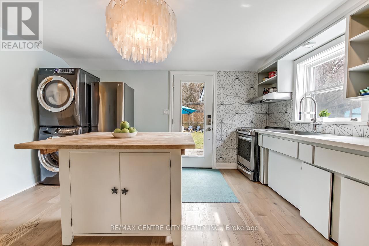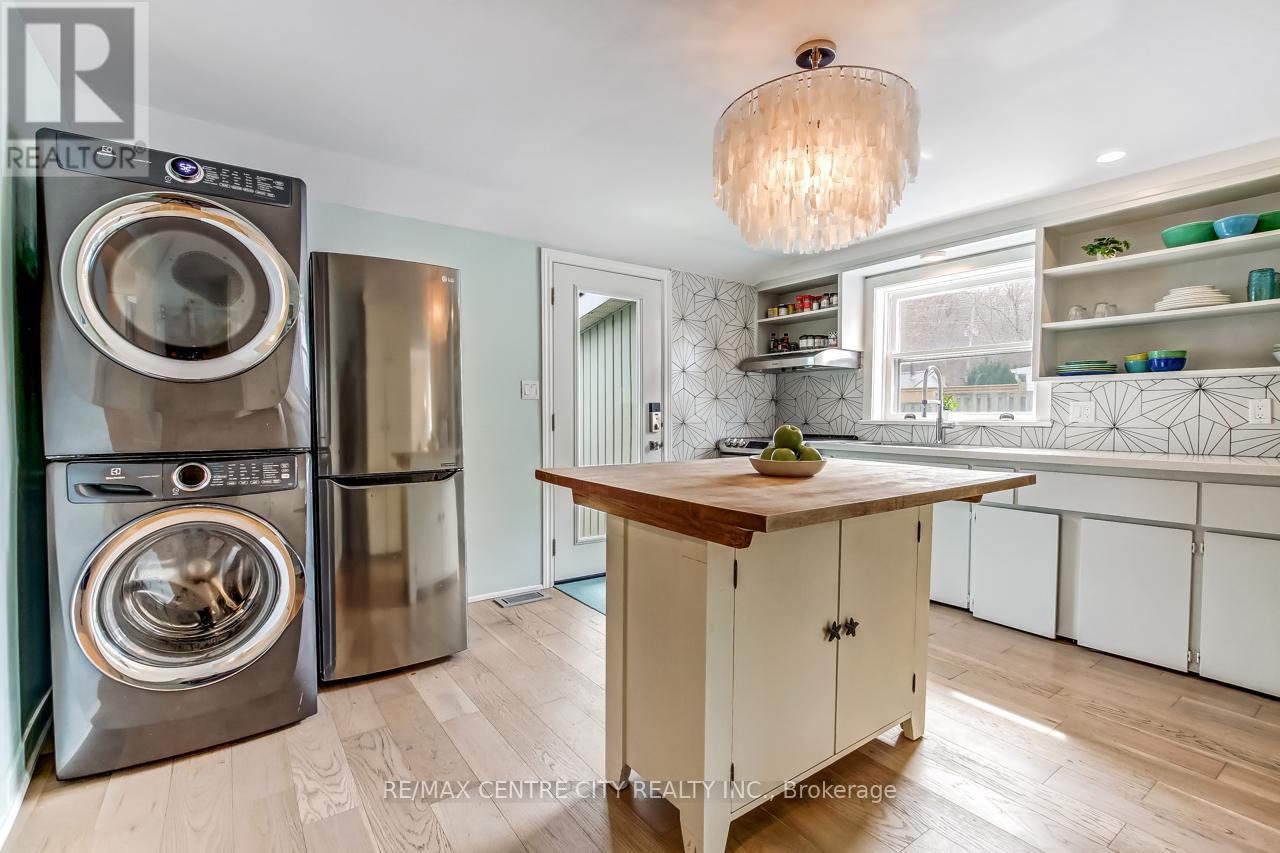 233 Colborne Street offers a rare opportunity in the heart of Port Stanley with flexible B1 zoning, allowing for both residential and commercial use. Ideally located within walking distance to the beach, marina, local shops, grocery stores, and the popular farmers' market, this property is perfectly positioned to enjoy everything the village has to offer-while still being tucked into a surprisingly quiet and relaxed setting. This charming two-storey home is full of character and potential, making it an excellent option for homeowners, investors, or entrepreneurs alike. Whether you're considering a year-round residence, short-term rental, Airbnb, or a business venture, the possibilities here are endless. A double-wide driveway provides ample parking, while the fully fenced backyard with patio, firepit area, and shed creates a private outdoor space ideal for relaxing or entertaining. Step into the welcoming enclosed front sunroom-perfect for morning coffee or additional living space.Inside, the main floor features a formal dining room, a versatile den or office, and a convenient 3-piece bathroom. The spacious living room showcases a unique gas fireplace and flows into the large, updated kitchen, complete with stackable washer and dryer and direct access to the backyard patio.Upstairs, you'll find four bedrooms and a second 3-piece bathroom, offering plenty of space for family, guests, or rental flexibility. A unique property in a prime central location, brimming with charm and opportunity-bring your vision and make it your own. (id:64974)