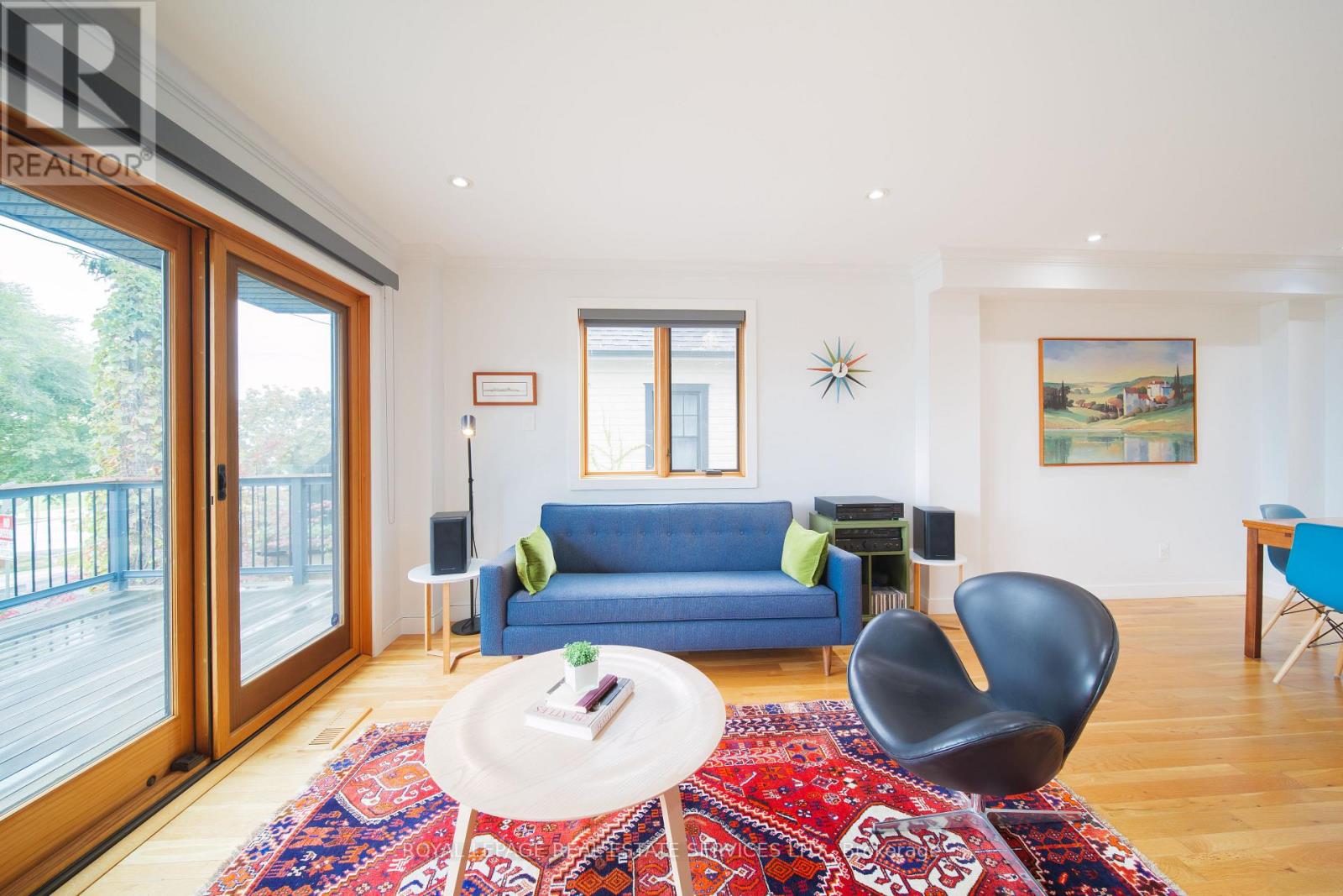 Water Lover's Delight - Experience lakeside living at its finest in this charming home located in the heart of Bronte Village, across from the Harbor Marina and Park with a beach. Panoramic, unobstructed views of Lake Ontario from the living room, master bedroom, and loft, along with direct access from the ground level to a huge terrace, provide a one-of-a-kind experience that feels like a beach house in the city. This home has been treated with passion and renovated from top to bottom. Almost 2,000 sq. ft. of living space has been designed with European touch throughout, offering both functionality and luxury with many unique features. The expansive living room with a gas fire place opens to the modern kitchen loaded with Miele appliances. Convenient laundry space is tucked on one side. Floor-to-ceiling windows with sliding doors lead to the terrace and BBQ area, equipped with a gas hookup making the main part of the house perfect for everyday family living, relaxation, and social gatherings. The upper level presents a master bedroom with an ensuite spa-like bathroom including a large shower with a glass door and a Japanese toilet, finished with cork flooring. Two additional bedrooms along with an extra full bathroom complete the quiet area. For anyone in search of a soothing getaway, a productive sanctuary home office or art studio or a teen space, the loft area offers a stunning escape. It features a soaring cathedral ceiling, a grand Palladian window, and more breathtaking views of the water. The cozy main-level family room provides seamless access to your own private backyard, which invites relaxation, while the saltwater hot tub adds an extra touch of luxury. This prime spot is surrounded by walking trails, trendy restaurants, boutique shops, and more to discover. It offers the perfect balance of lakeside serenity and urban convenience. (id:64974)