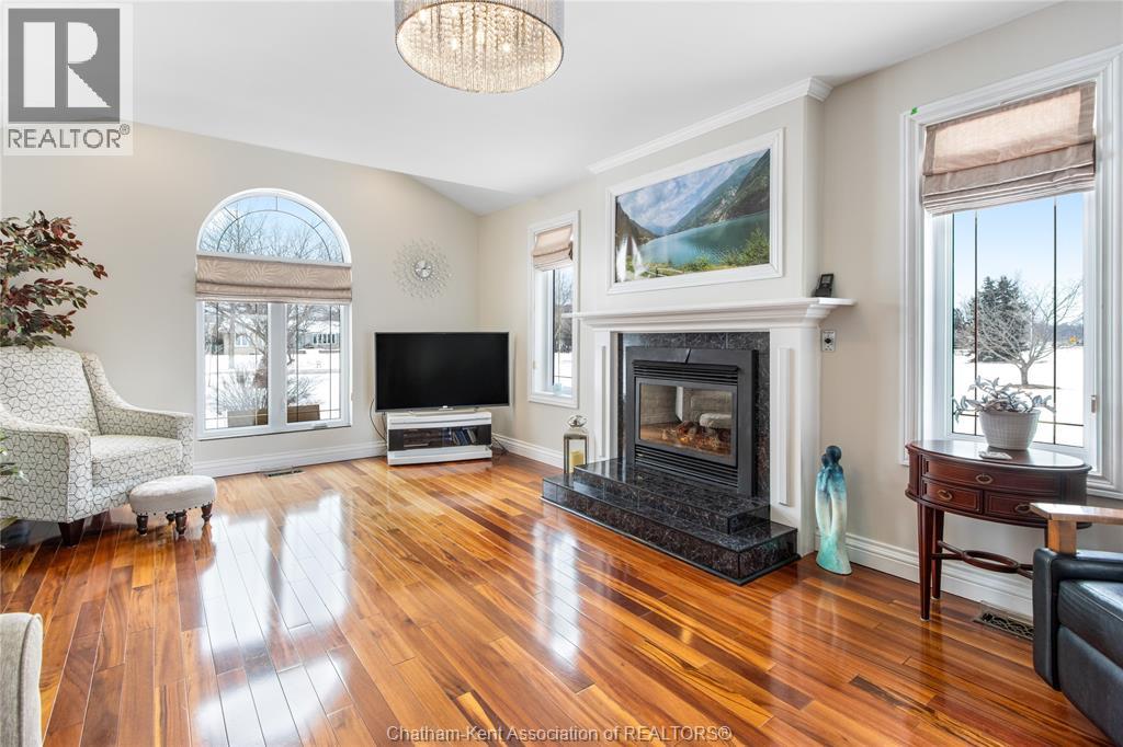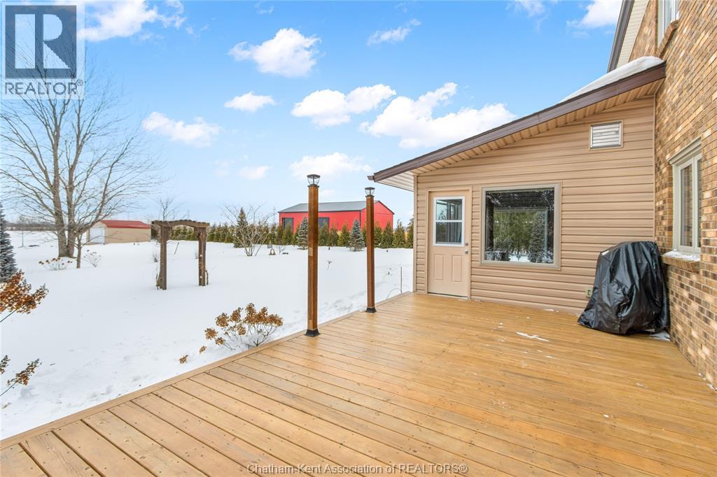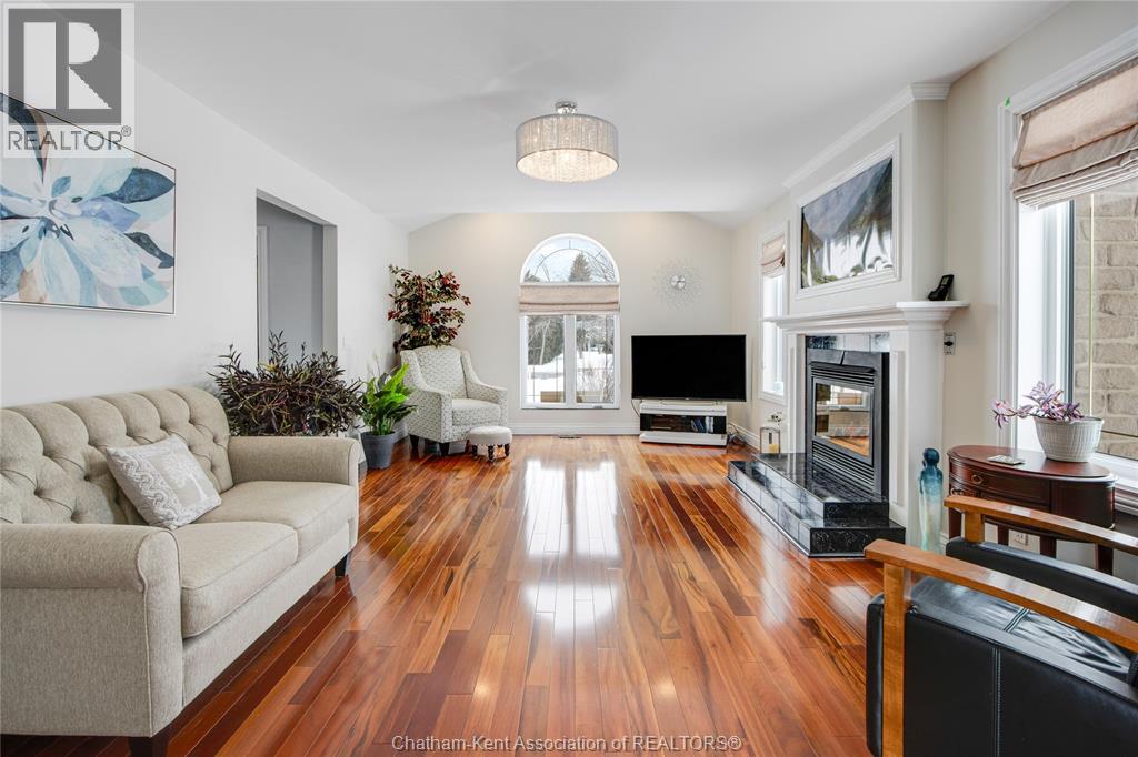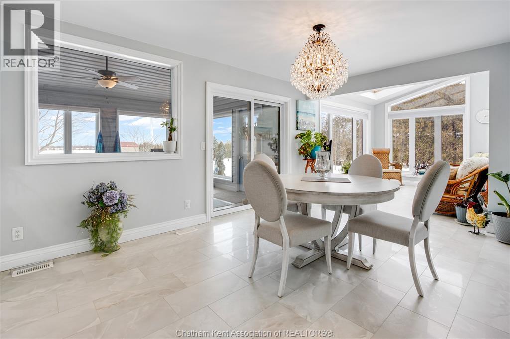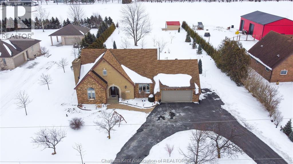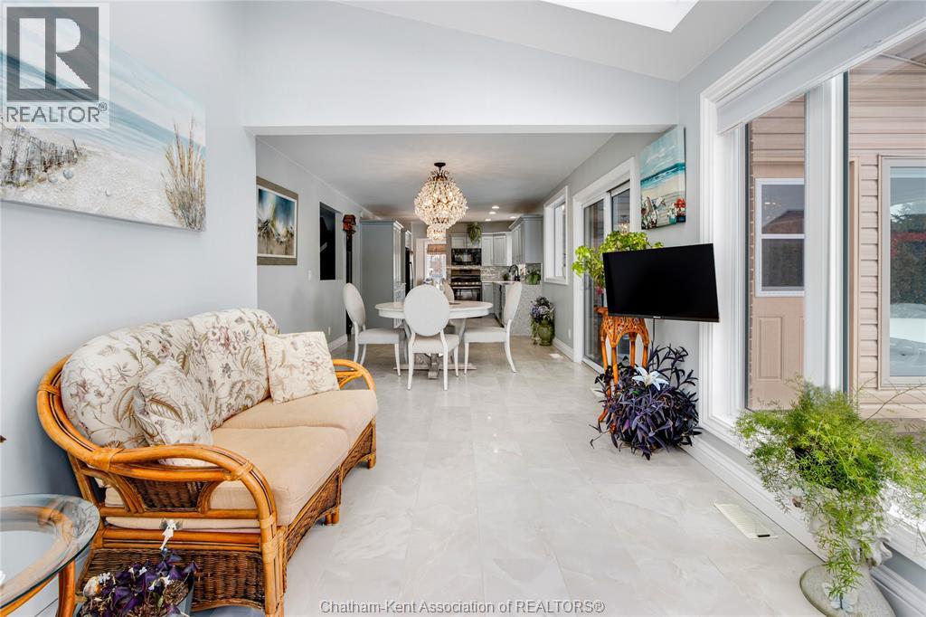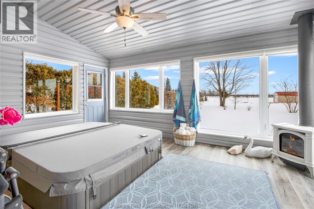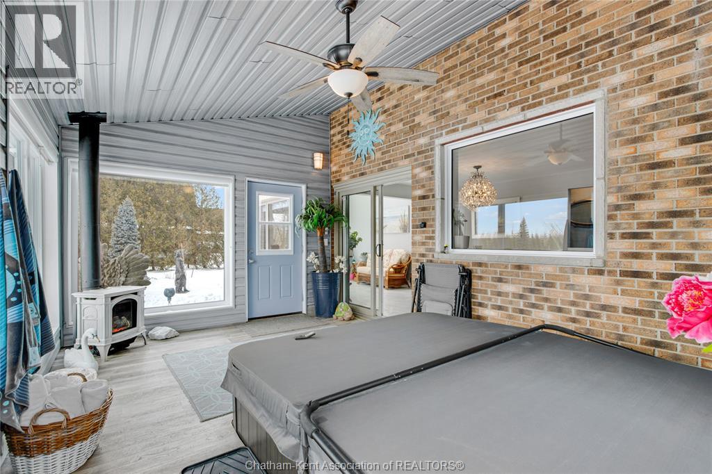Situated on a large, private country lot with agricultural zoning at the rear, this unique two-storey home showcases true pride of ownership. Step inside and you’ll immediately notice the many upgrades, including Brazilian hardwood and porcelain tile throughout the main floor plus a sleek porcelain staircaise. A convenient office or main-floor bedroom is located just off the front entry. The heart of the home features a stylish kitchen with quartz countertops and a stunning waterfall edge that connects the dining area and sunroom featuring huge skylights. This bright, open space is filled with natural light, creating an incredible sun-soaked atmosphere throughout the day. The warmth continues into the 2nd sunroom where you’ll find ample windows, a hot tub and a cozy gas fireplace that is perfect for relaxing year-round. The living room also offers a gas fireplace and connects to a potential formal dining space, complete with a wet bar rough-in and patio doors leading to a large deck overlooking the deep treed backyard . Upstairs, you’ll find spacious bedrooms, including a primary suite with his-and-hers closets and a stylish ensuite featuring a walk-in marble-tiled shower. An adjacent bedroom offers direct access to the primary, making it ideal for a nursery, office, or impressive walk-in closet. Designed with convenience in mind, this home also includes a large walk in attic space for extra storage, a 21’ x 17’ shed, and a spacious horseshoe driveway leading to a double attached garage. Located just 10 minutes from Belle River, 25 minutes to Kingsville, and 30 minutes to downtown Windsor. Don’t miss this incredible opportunity—call today! (id:64974)