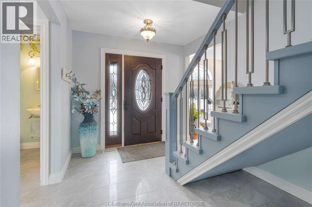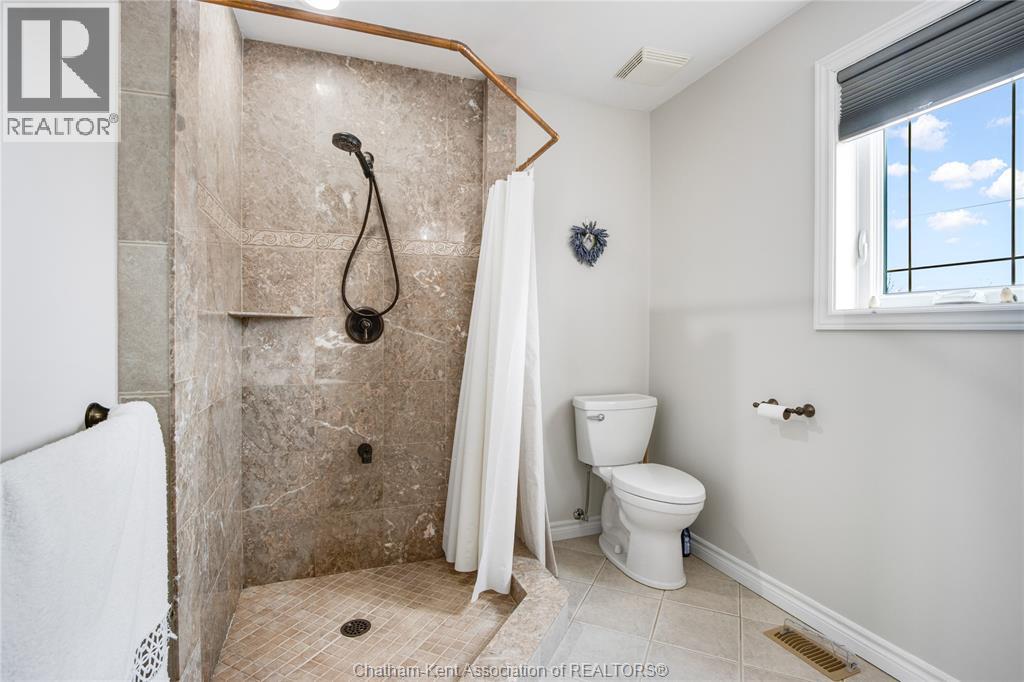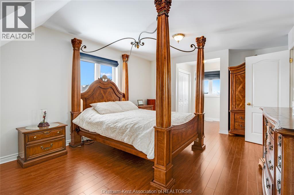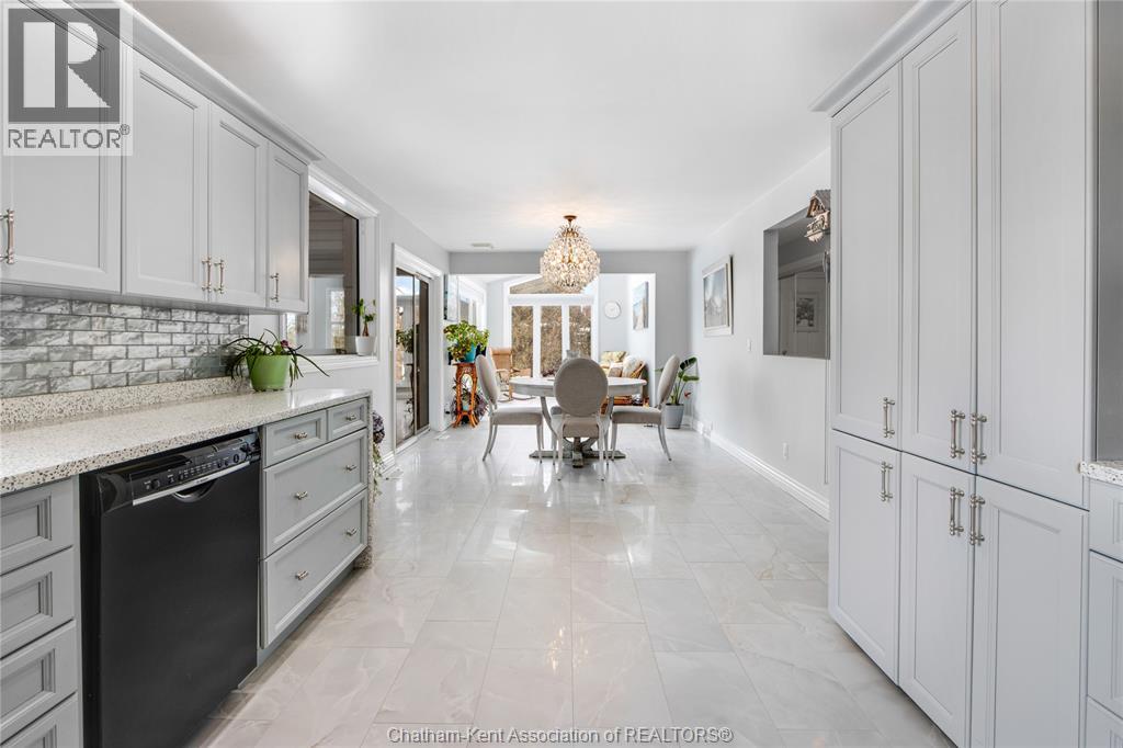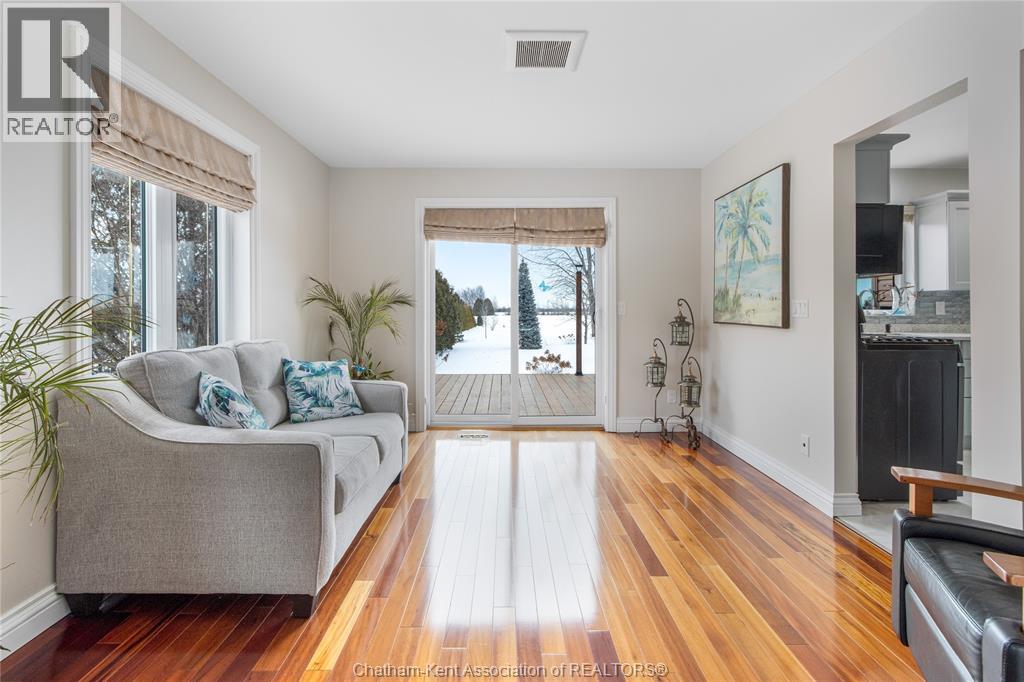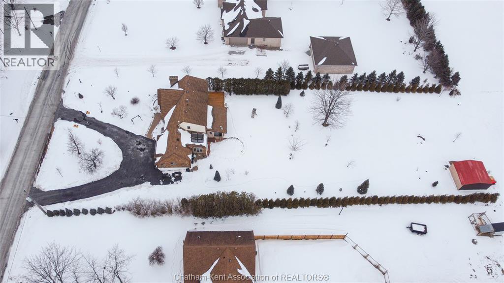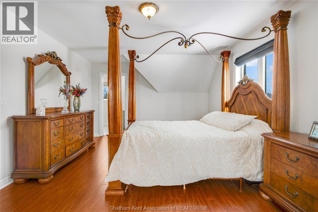 Situated on a large, private country lot with agricultural zoning at the rear, this unique two-storey home showcases true pride of ownership. Step inside and you’ll immediately notice the many upgrades, including Brazilian hardwood and porcelain tile throughout the main floor plus a sleek porcelain staircaise. A convenient office or main-floor bedroom is located just off the front entry. The heart of the home features a stylish kitchen with quartz countertops and a stunning waterfall edge that connects the dining area and sunroom featuring huge skylights. This bright, open space is filled with natural light, creating an incredible sun-soaked atmosphere throughout the day. The warmth continues into the 2nd sunroom where you’ll find ample windows, a hot tub and a cozy gas fireplace that is perfect for relaxing year-round. The living room also offers a gas fireplace and connects to a potential formal dining space, complete with a wet bar rough-in and patio doors leading to a large deck overlooking the deep treed backyard . Upstairs, you’ll find spacious bedrooms, including a primary suite with his-and-hers closets and a stylish ensuite featuring a walk-in marble-tiled shower. An adjacent bedroom offers direct access to the primary, making it ideal for a nursery, office, or impressive walk-in closet. Designed with convenience in mind, this home also includes a large walk in attic space for extra storage, a 21’ x 17’ shed, and a spacious horseshoe driveway leading to a double attached garage. Located just 10 minutes from Belle River, 25 minutes to Kingsville, and 30 minutes to downtown Windsor. Don’t miss this incredible opportunity—call today! (id:64974)