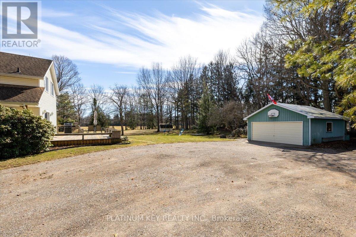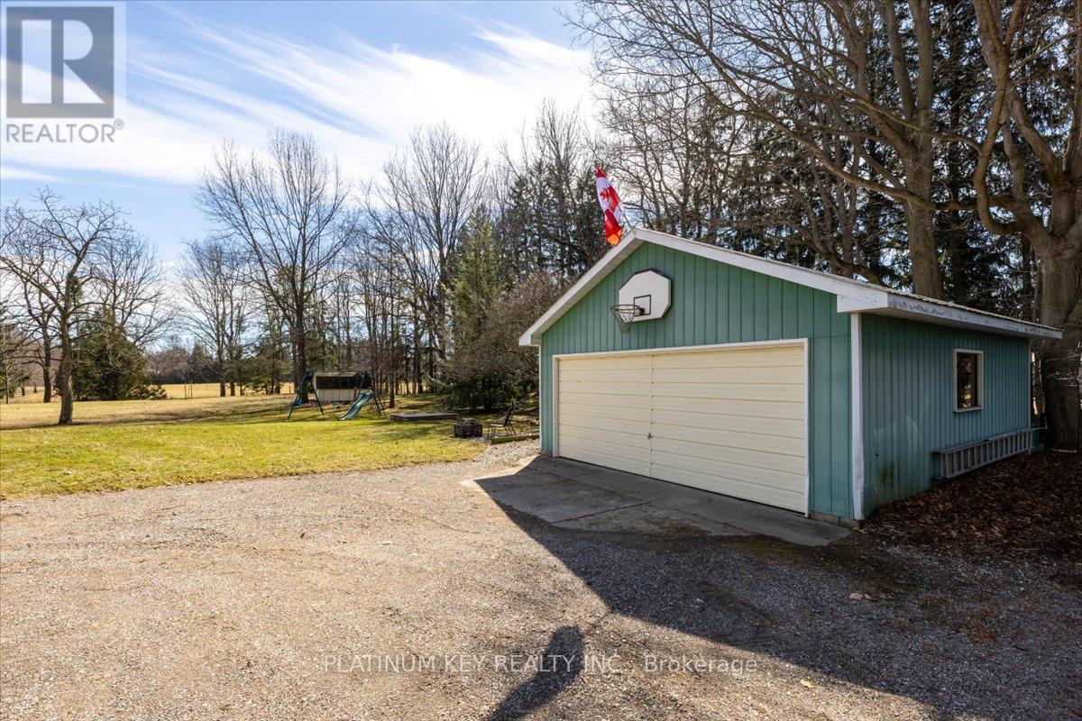 A two acre country retreat in rural Mount Brydges. This well-maintained, charming property offers 3 bedrooms, 2 bathrooms and a detached garage with a workshop in a peaceful rural setting. The main floor features a spacious family room with double closets and French doors leading to a large, private sun deck. The kitchen offers quartz countertops, a centre island, walk-in pantry, and generous dining area, with hardwood flooring extending into the adjoining open-concept room currently used as an office. At the front of the home, the living room features a large picture window and exterior door providing additional access to the outdoors. A four-piece bathroom and laundry complete the main level. Upstairs are three bedrooms, including a spacious primary bedroom with a walk-in closet. The second bedroom offers double closets, while the third bedroom provides a comfortable space for a bedroom, nursery, or office. A three-piece bathroom and linen closet are also on the upper level. The lower level includes a finished rec room, providing additional living space and storage. The detached workshop with a two-car garage and power is ideal for hobbyists, tradespeople, or additional storage. The property is surrounded by mature trees and open green space, offering a quiet country setting. Local Mount Brydges amenities include schools, parks, pharmacy, medical, dental, shopping, and restaurants, with convenient access to surrounding communities, the 402 highway and the City of London. (id:64974)