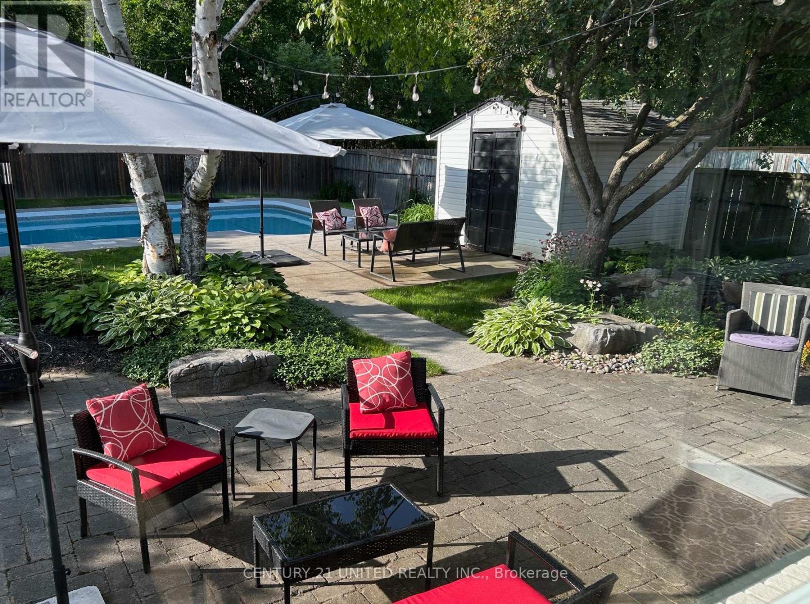 Set in Peterborough's west end, 234 Ridgewood Rd is positioned in a neighbourhood known for its access to outdoor space and established feel. Kawartha Golf & Country Club is just down the road, with the 3rd green a short shot away, and Sherbrooke Woods Trail is located a few doors over and across the street. cole Monseigneur-Jamot and St. Catherine Catholic Elementary are within walking distance, with James Strath Public School and Crestwood Secondary also nearby. The home offers 4+1 bedrooms and 4 bathrooms, with a layout that includes a main floor family room, dedicated dining area, and main floor laundry, along with inside access from the double car garage. The principal living spaces overlook the backyard. Outdoors, the property unfolds into a private, landscaped setting anchored by a saltwater in-ground pool installed in 2017, complemented by a small pond and established greenery. Upstairs, four bedrooms provide functional space for family living, including a primary suite with a walk-in closet and an updated ensuite. The finished basement adds an additional bedroom, updated bathroom, and flexible recroom space. Updates include roof shingles in 2017, main floor windows replaced in 2021, and recent improvements to both the ensuite and basement bathrooms. A location that keeps daily needs, schools, and outdoor access all within reach. (id:64974)