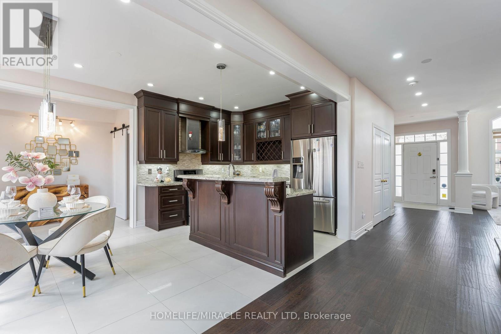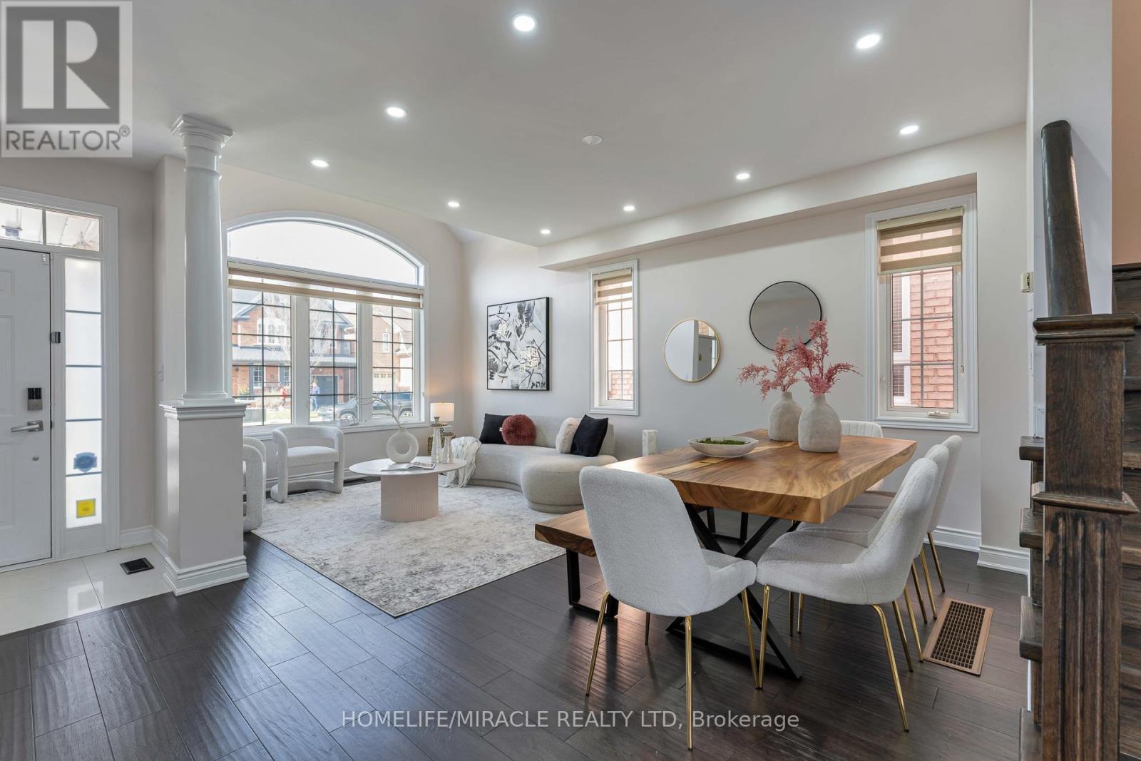 Nestled in a highly sought-after pocket of West Oak Trails, this beautifully maintained detached home offers the perfect blend of space, upgrades, and a rare nature-backed setting. The main floor features a functional and spacious layout with separate living and dining areas, a warm and inviting family room, and a bright breakfast area with a breathtaking view of the green space. The upgraded kitchen, with Quartz counter and modern finishes, flows seamlessly into the living space and opens through an oversized patio door to the outdoors-perfect for everyday living and entertaining. Step outside to a water-kissed backyard backing onto a lush green ravine and scenic trails, offering exceptional privacy with no rear neighbours. Enjoy your mornings and evenings on the newly upgraded, terrace-sized composite deck, designed for low maintenance and maximum enjoyment. The upper level offers 4 generously sized bedrooms and 2 full washrooms, filled with natural light throughout the day and complemented by pot lights for a bright, modern feel-ideal for growing families. The fully finished walkout basement adds incredible versatility, featuring 2 bedrooms, a full washroom, and a kitchen-perfect for extended family, potential in-law suite use, or additional living space. Currently configured as a premium entertainment zone, it includes an ultra-modern home theatre setup with Dolby surround sound, projector, and motorised drop-down screen, creating a true cinematic experience at home. Enjoy proximity to schools, parks, scenic trails, recreation centres, shopping at Dundas & Neyagawa, and convenient transit options including access to GO Transit-offering the perfect balance of nature, convenience, and connectivity. Book your viewing Today! Roof(2021), Home theatre(2022), Furnace(2022), Composite Deck(2022), Garage Door(2026), pot lights(2026), Patio Door(2026), Professionally painted(2026) (id:64974)