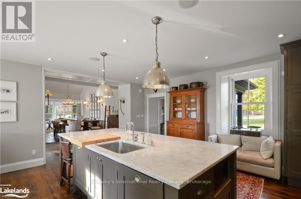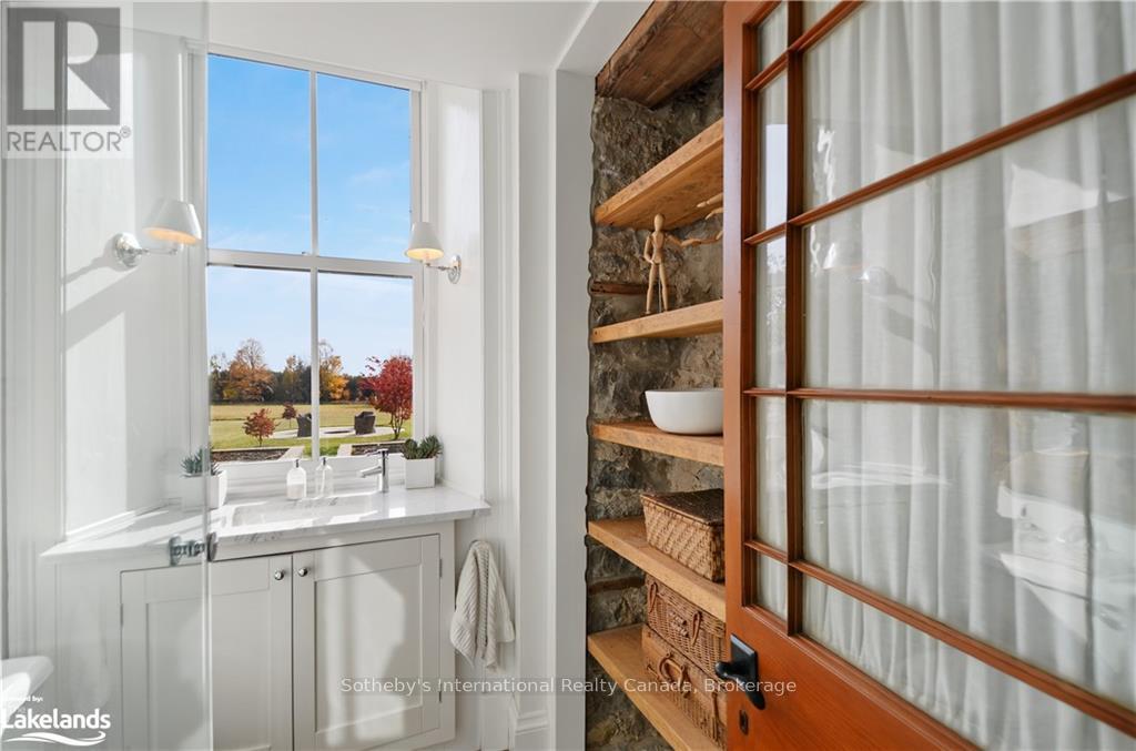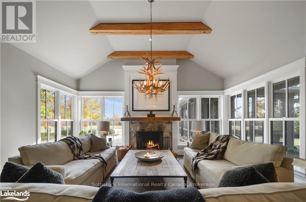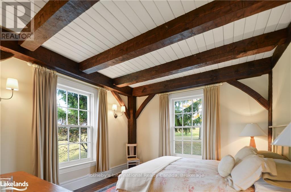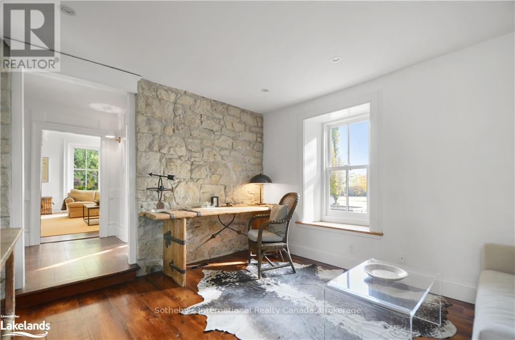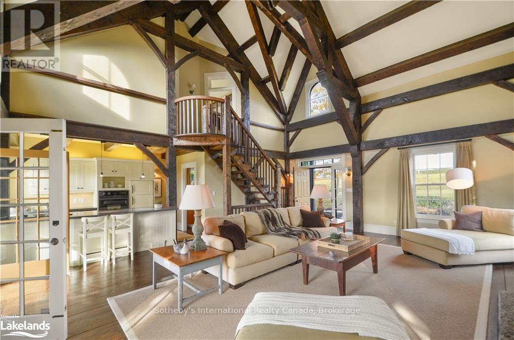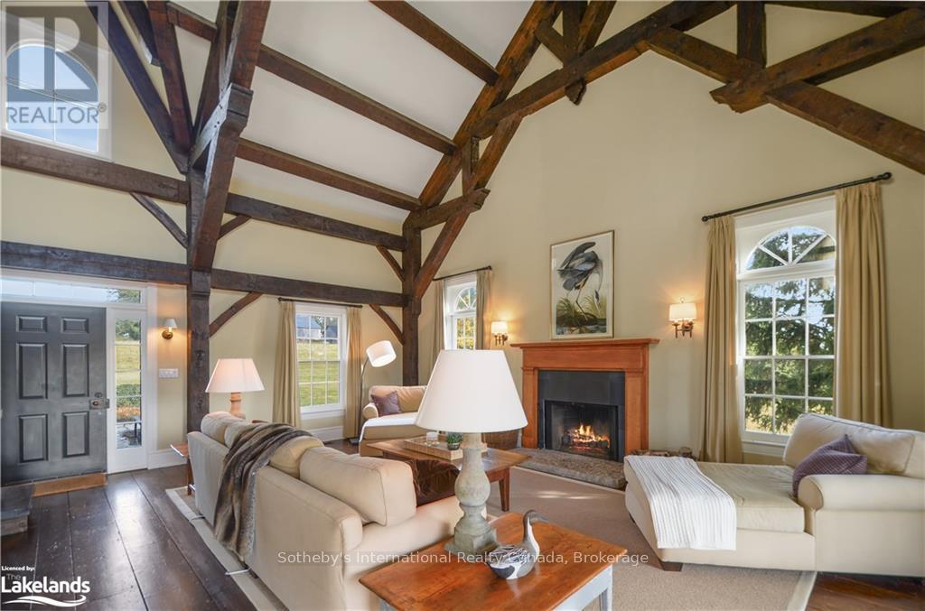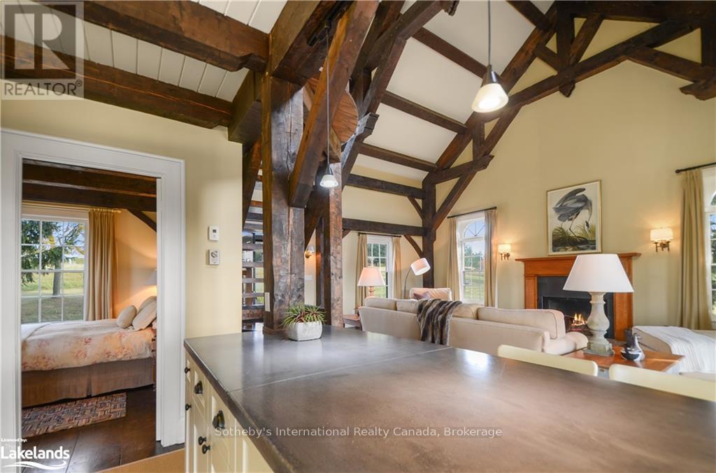 Discover tranquility across 486 acres of historic countryside, anchored by a beautifully preserved 1850s stone farmhouse, cherished by just five previous families. Designed by Oakville/Toronto architect Gren Weis, the residence combines modern luxury with timeless character, featuring a chef's kitchen, a spacious great room, a sunroom, a screened-in outdoor summer room, and a heated dining gazebo. A short stroll leads to the lakeside guest house, passing the original 1919 barn and shed, and the remains of a century-old barn foundation, transformed into a charming garden for gatherings. This timber-frame guest house offers sweeping lake views, three bedrooms, two full bathrooms, and a finished lower level with a walkout. Wander through scenic trails that wind through fields and forests. Recreational highlights include a private tennis court, an inviting in-ground pool, and a firepit for starlit evenings. Complete privacy awaits, with meticulously maintained gardens blending modern landscaping with classic architecture. As you enter under a canopy of mature spruce trees, the secluded beauty of the property unfolds. Endless views and breathtaking sunsets make this retreat truly rare and cherished. Sq Ft includes Guest House. Valuable harvest potential on 400 acres of bush and 60+ workable acres. Three Managed Forest Plans. (id:64974)