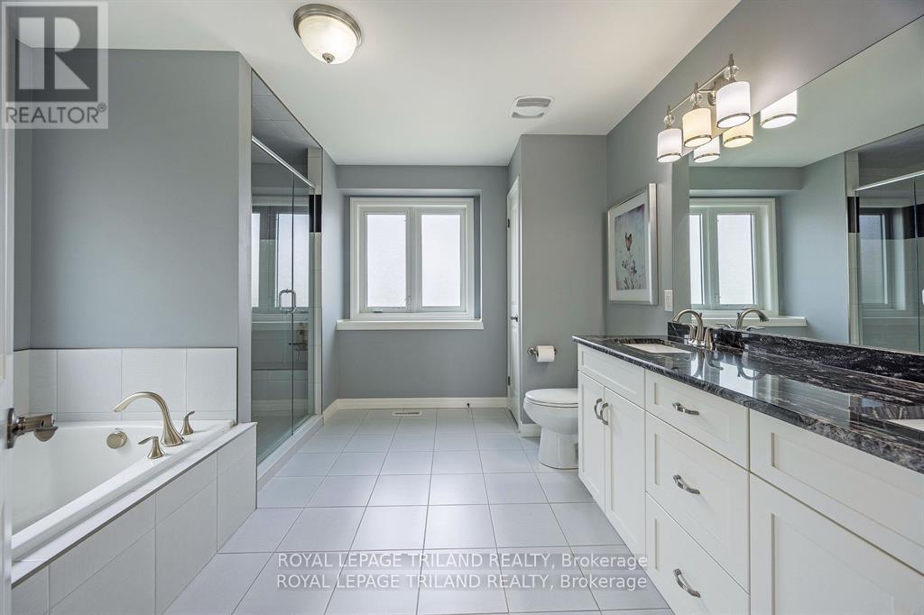 Looking for a luxurious home with ample space for your family? Look no further than 2349 Dauncey Crescent! This elegant over 3100 sq ft two-story residence offers 4+1 bedrooms and 3.5 baths, perfect for accommodating the whole family in style. This immaculate home is located in one of the most sought after neighbourhoods in North London. A welcoming foyer greets you as you enter the home. The main floor features a beautiful vaulted living room with fireplace, a formal dining room, eat-in kitchen with granite countertops with walk-in pantry and a separate den/office. Upstairs is the spacious primary bedroom with two walk-in closets and 5 piece ensuite bathroom. Completing this floor are three good-sized bedrooms and4 piece bathroom. The fully finished basement offers additional versatile living space with a large bedroom, family/recreation room, and a 4 piece bathroom. Stamped concrete patio in a beautifully groomed yard provides an ideal setting for entertaining. Short distance to amenities: shopping and restaurants, Western University, hospital, YMCA/Library/Community Centre, nature trails. Don't miss the opportunity to make this stunning property your own! (id:64974)