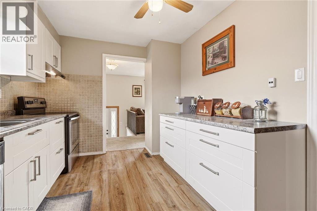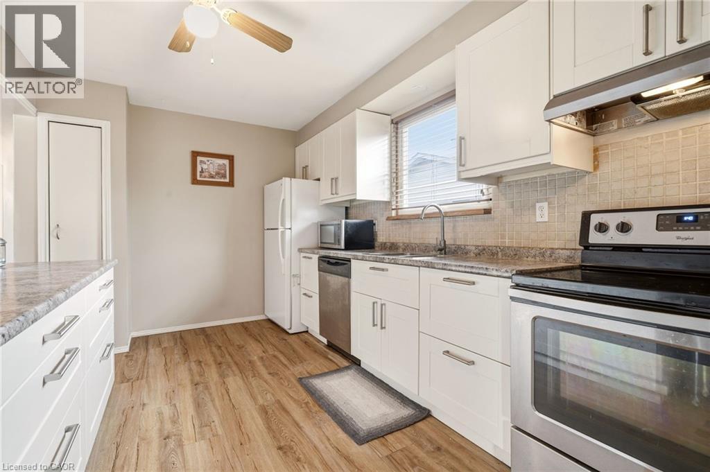 Welcome to your stunning 3+1 bedroom semi-detached home located in family friendly Brant Hills! As you enter through the updated front door w/elegant glass sidelights, you’ll be greeted by a welcoming foyer featuring a convenient front hall closet. The expansive living room boasts a large window offering unobstructed western views, creating a bright and inviting atmosphere. This space seamlessly flows into the generously sized dining room, highlighted by a beautiful chandelier and stylish laminate flooring. The eat-in kitchen is a chef’s delight, equipped with a suite of 4 appliances, fresh white cabinetry, double sink, & spacious prep counter. You’ll also find 3 generously proportioned bedrooms. The primary suite features a large window & oversized floor-to-ceiling dbl closet, the 2nd bed also includes a window & single closet. The 3rd bed offers a cozy ambiance with its own window and single closet. The main floor washroom featuring a wide vanity with a single sink, tub/shower combination, ceramic flooring, & additional storage space. Descending to the lower lvl, you’ll discover a bedroom with eye-level windows, a massive recreation room w/brand new broadloom, & bar area w/storage cabinets & laminate flooring. This level also includes a well-appointed 3pc bath w/stand-up shower, large vanity, & abundant storage cabinets. Additionally, the lower level features a laundry room & a spacious storage area that could easily serve as another bedroom or office space. Step outside through the sliding glass doors to your private backyard oasis, featuring a deck gazebo and a fully fenced expansive grass area, perfect for outdoor play and relaxation. Additional highlights of this remarkable home include a large driveway providing ample parking, a charming front porch with a covered awning, & recent updates that encompass the roof, furnace, air conditioning, and hot water tank. Experience the perfect blend of comfort, space, and modern amenities in this wonderful family home! (id:64974)
