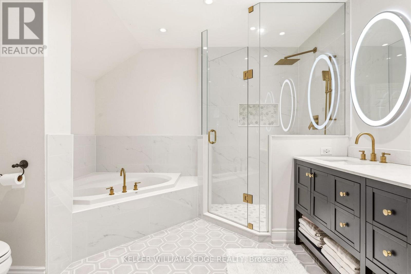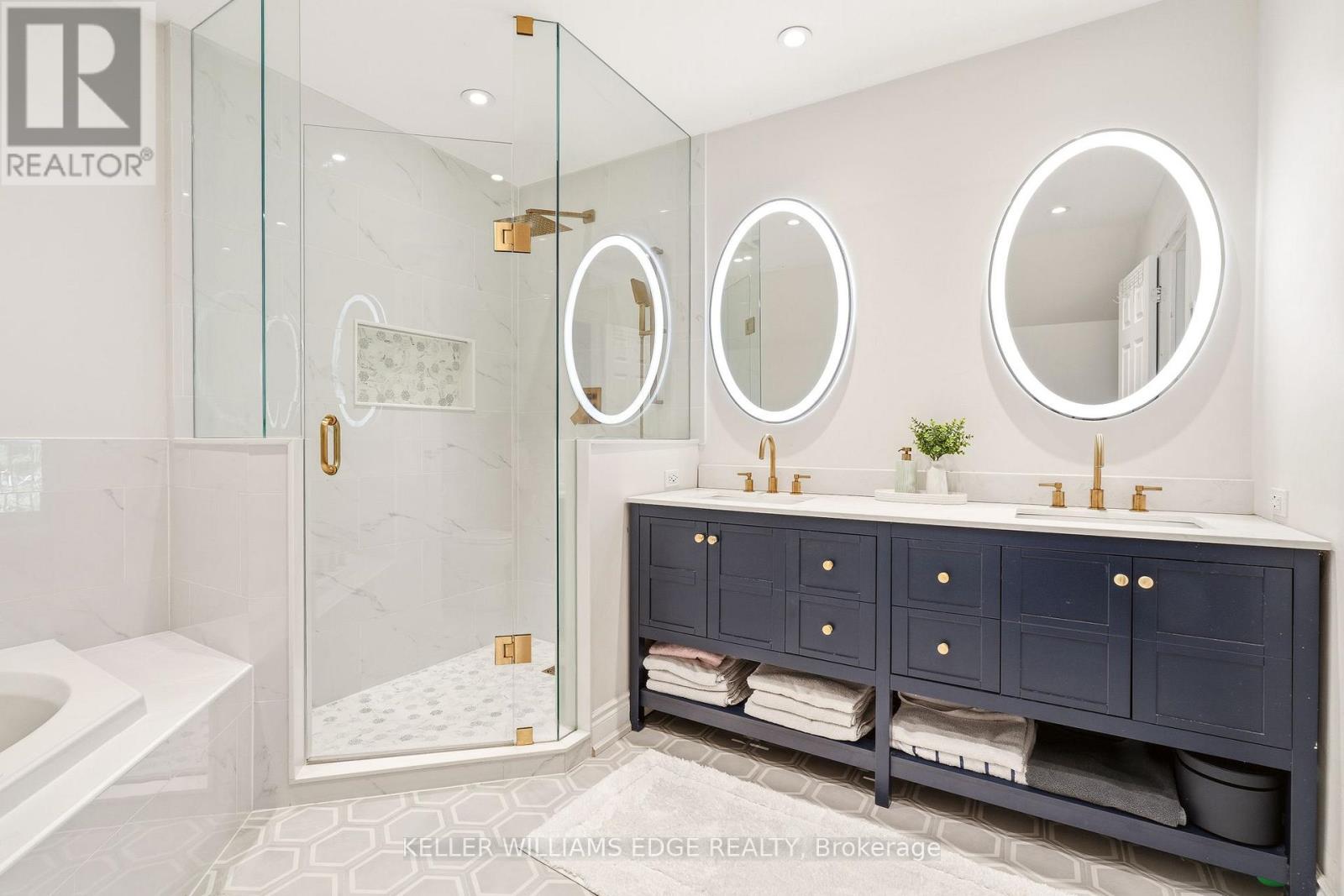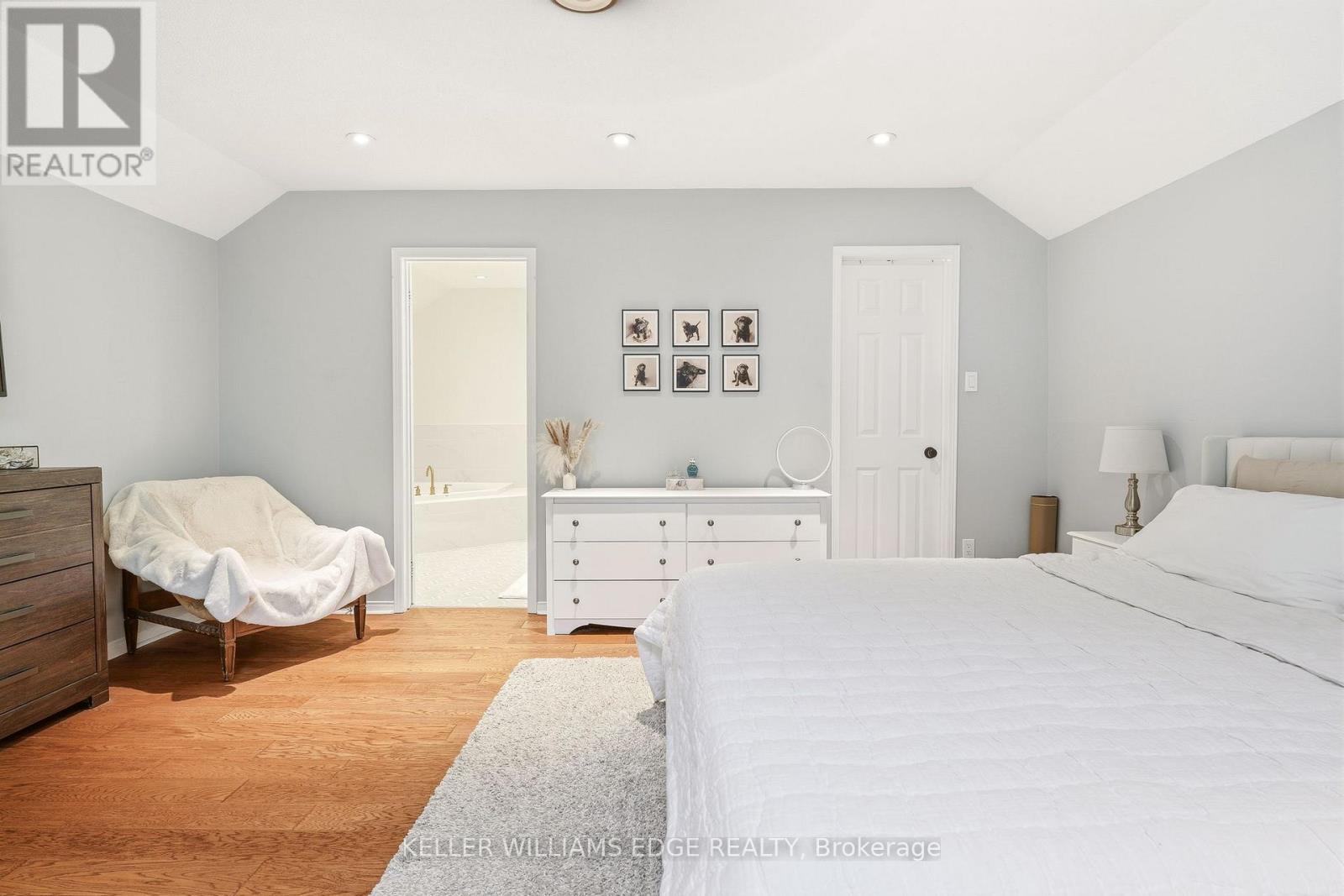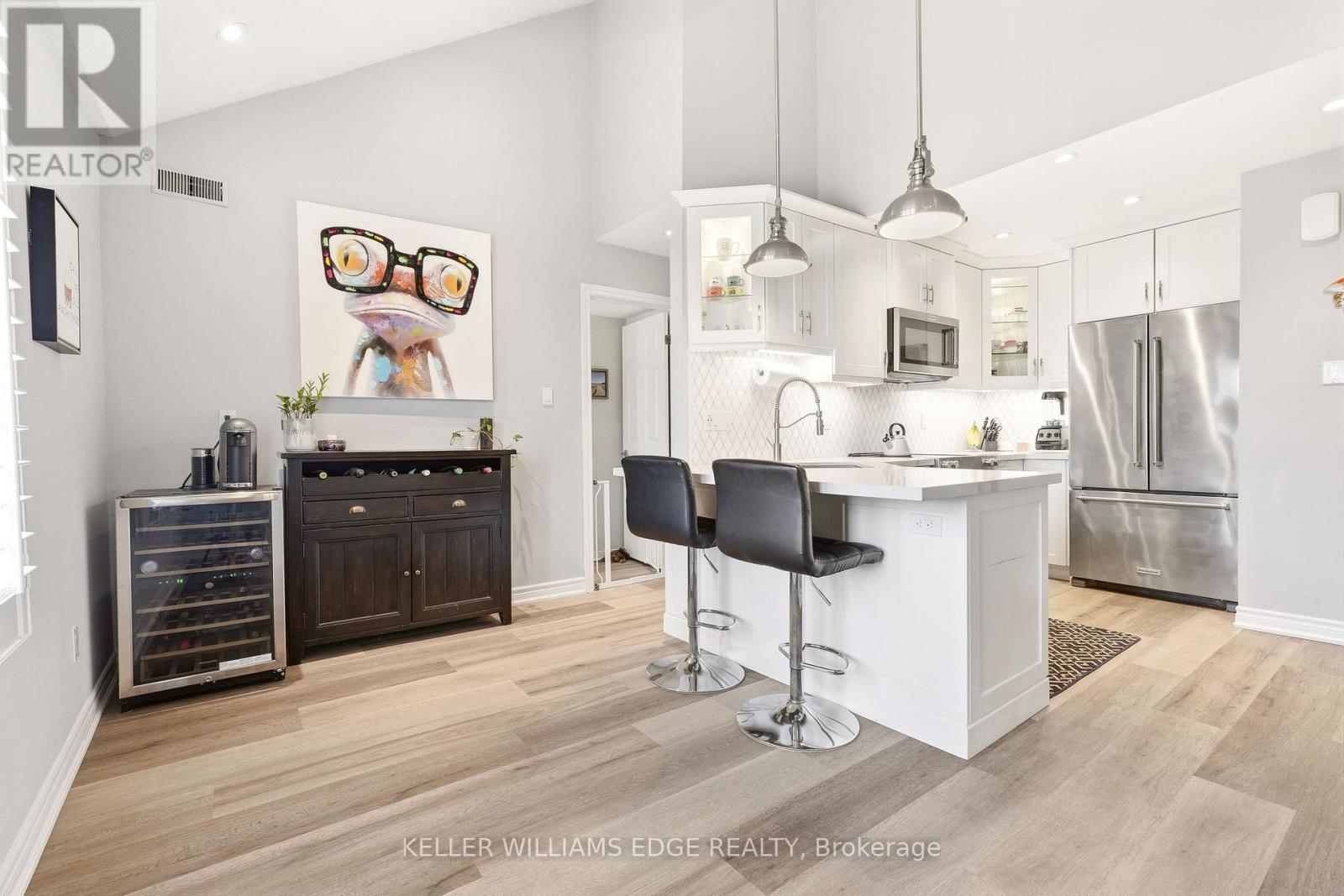 Welcome to this beautifully updated 3-bedroom, 2-bathroom end-unit townhouse in the highly sought-after HeadonForest neighbourhood of Burlington! This bright and stylish home features a newly renovated eat-in kitchen completewith quartz countertops and stainless steel appliances, offering both modern elegance and everyday functionality. Theopen-concept living and dining area boasts soaring vaulted ceilings and sliding door access to a private deck - perfectfor BBQing and entertaining. You will enjoy upgraded LED pot lights throughout the home, integrated with anautomated smart lighting system controllable via mobile app and customizable settings. Enjoy the convenience of mainfloor laundry, along with two generously sized, sun-filled bedrooms and a well-appointed 4-piece bathroom on the mainlevel. Upstairs, retreat to your own private primary suite, featuring a massive walk-in closet, juliette balcony, and a fullyrenovated ensuite with a luxurious soaker tub, heated floors and separate walk-in shower. Enjoy both a single cargarage, as well a 1 outdoor parking space. As an end unit, this home offers added privacy and direct access to adjacentlawn space - ideal for kids to play - while backing onto Cleaver Park with playground and walking trails. Located juststeps from shopping and restaurants, and easy access to highway access, this home combines comfort, style, andconvenience. Don't miss this incredible opportunity! (id:64974)
