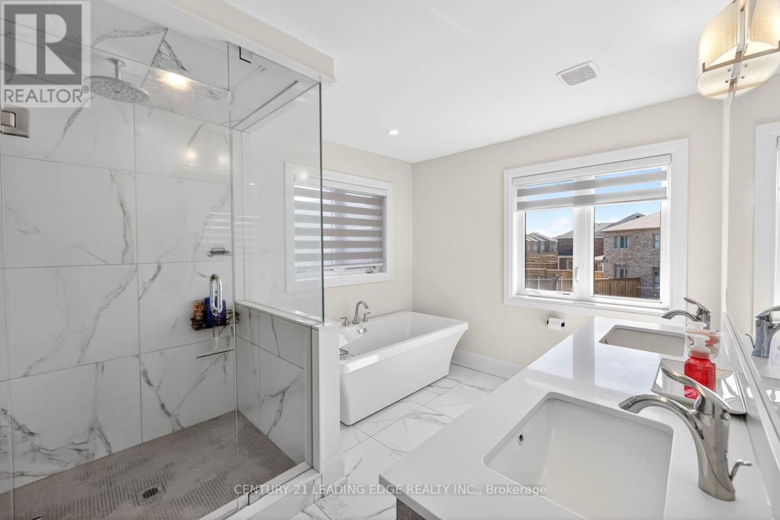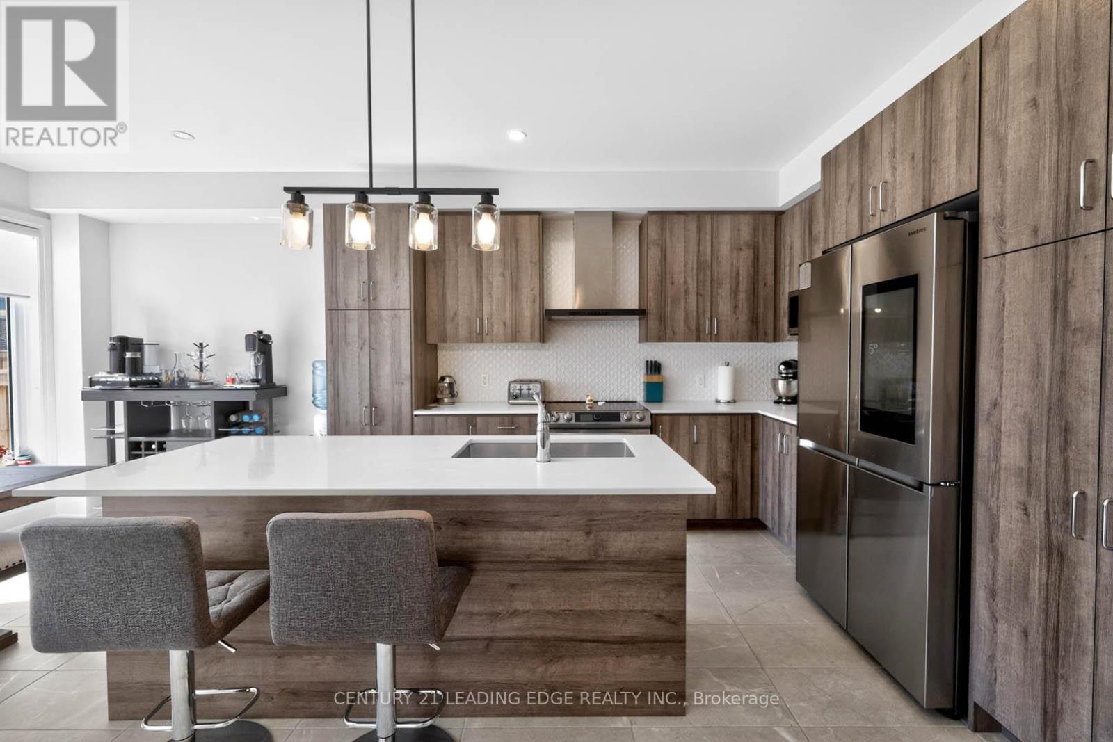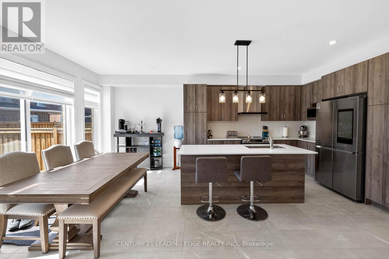 Beautifully upgraded home featuring extensive modern enhancements throughout. Exterior and interior pot lights, including timed outdoor lighting, provide excellent illumination and curb appeal. The home is equipped with security cameras, a Ring doorbell, and **internal data network ports throughout** for enhanced connectivity and convenience. The main living areas showcase hardwood flooring on both the main and second floors, complemented by zebra blinds throughout. The kitchen has been upgraded with a chef-style sink and a redesigned, extended island offering additional functionality and space. Bathrooms have been tastefully upgraded, including the primary ensuite with a modern shower, upgraded tub, flooring, and vanity, and the second-floor bathroom with a glass shower, upgraded tiling, and sink. Bathroom exhaust fans include timers for energy efficiency. Additional features include a larger, upgraded A/C unit, a furnace with a humidifier, upgraded electrical wiring, and a central vacuum rough-in. The home also offers two garage door openers with remotes and mobile app access. The fully fenced backyard provides privacy, and the driveway has been enhanced with decorative rain pebble stonework. A well-maintained home with thoughtful upgrades throughout, ideal for comfortable modern living. Close to Bradford Go, shopping plazas, schools, and easy access to the highway 400 & 404 (id:64974)