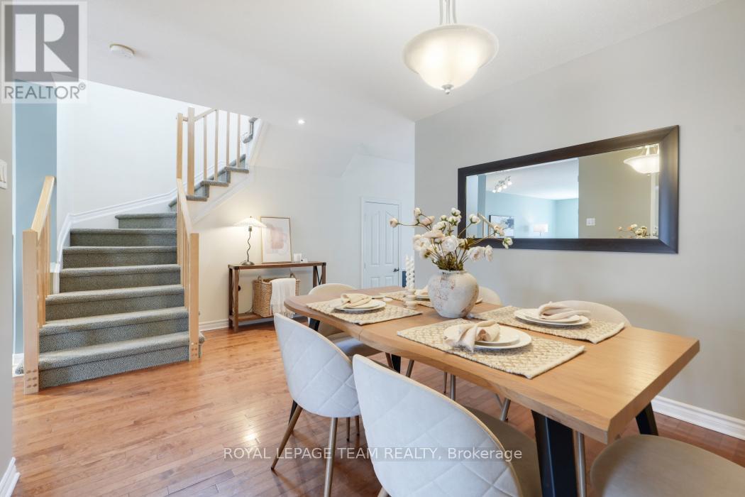 Welcome to 235 Saddlesmith Circle, NOT your everyday town home in Kanata/Bridlewood. True pride of ownership is evident the moment you walk through the front door. Many recent expensive updates have been made including a new roof in late 2025, a new air conditioner in 2025, front windows in 2024, beautiful hard landscaping done to the front walkway and rear patio in 2023, backyard rear deck in 2023, engineered hardwood installed in the bedrooms in 2022, the furnace and hot water tank installed in 2019, stylish ceramic tile in the kitchen in 2018 and most of the home has been freshly painted and decorated in 2026. This Urbandale Built, rarely available Sausalito Model sits on a gorgeous oversized south facing lot. The lot is OUTSTANDING and like very few others,. The back measures 54.79 feet, which spans 3 detached homes, and the west depth is 124.94 feet and the east depth is 117.99. It has been superbly landscaped with a very large stone patio, a lovely sitting area and enough land for a hockey rink and a toboggan hill in the winter and outside gardening in the summer. Enjoy a morning coffee on the upper level deck and an evening beverage on the lower level patio. The walk out lower level is ideal and rarely available. Saddlesmith Circle is close to excellent schools and all of the shopping and transportation available on Eagleson Road. Not much to do except move in and enjoy this lovely, well located family home. There will be an open house on Sunday April 12 from 2-4. Hope to see you then. (id:64974)