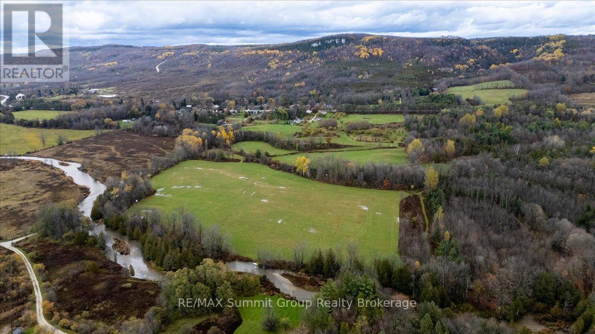 44 acres of meadows, river frontage, valley views and space for a whole new vision. This beautiful 43.28 acre parcel sits at the edge of Kimberley and offers a rare mix of open land, natural features and iconic Beaver Valley scenery. Rolling meadows, tree lines and a small pond create a landscape that feels peaceful and wide open. Along the back corner of the property you will find more than 400 feet of the Beaver River winding through the land. Paddle, fish, float or simply sit by the water with your morning coffee. The valley views stretch for miles and include views of Old Baldy and the slopes of Beaver Valley Ski Club in the distance. The setting gives you the feeling of being out in the country while still being right next to the village. The location is hard to beat. Not just because of how close everything is, but because opportunities to own acreage this close to the heart of Kimberley are rare. You get the privacy, space and quiet of being outside the village while still being able to walk into town. That balance is what makes this location so special. Walk to Kimberley Cafe & Social House and grab your favourite coffee before heading out for the day, enjoy dinner at Justin's Oven or Hearts, explore the trails just across the road, or spend the day skiing at Beaver Valley Ski Club just minutes away. Thornbury, Meaford, Eugenia and Markdale are all a short drive. Large parcels with river frontage, valley views and this kind of location in the Beaver Valley do not come along often. This is a special piece of land ready for the next chapter. (id:64974)