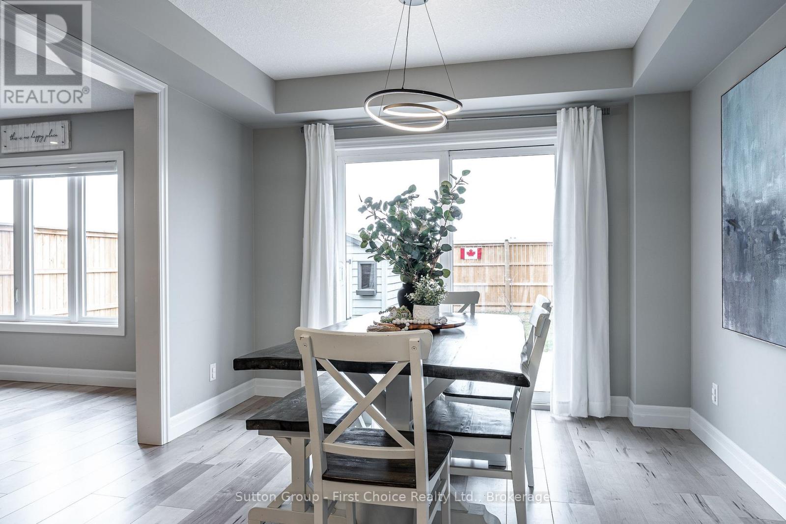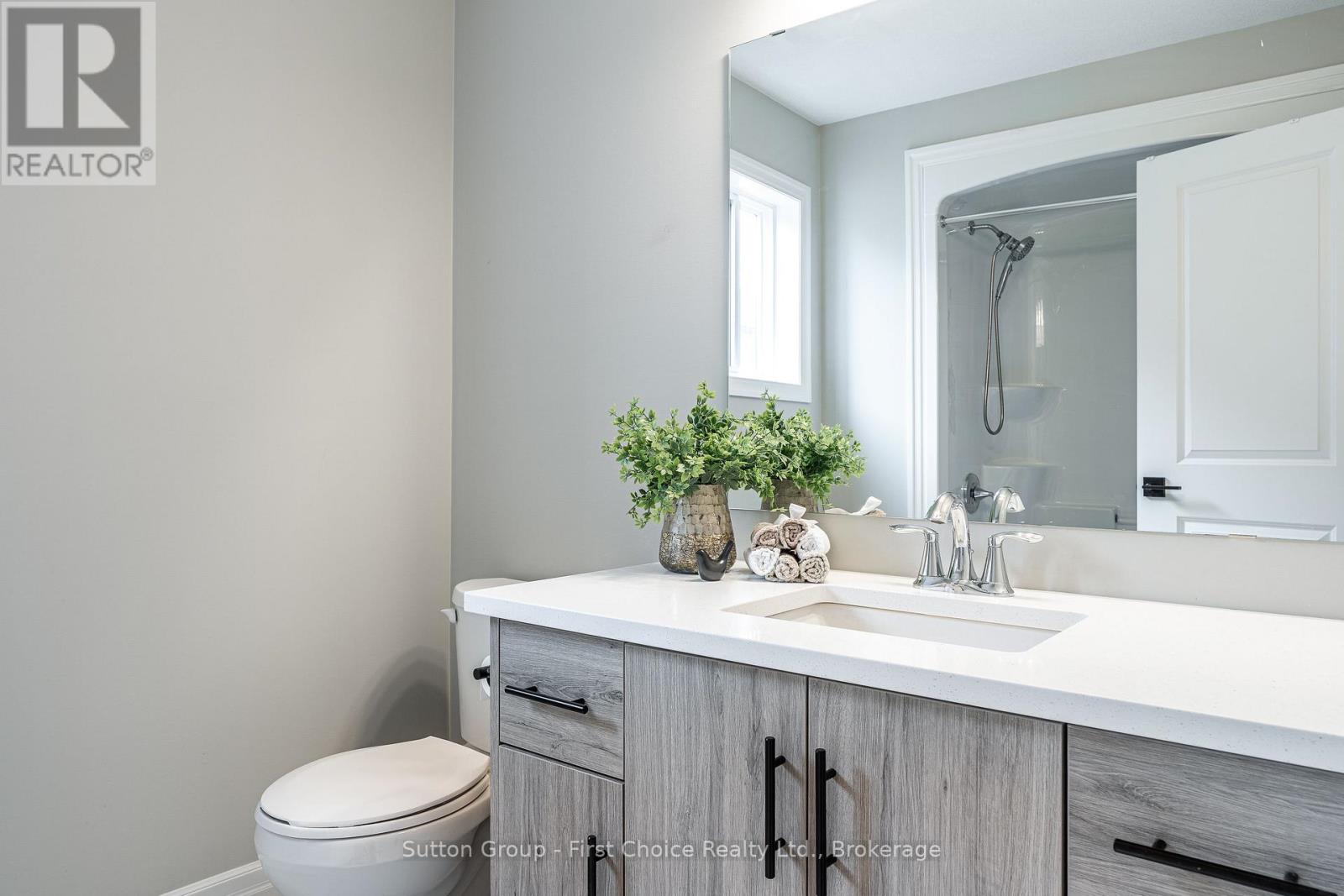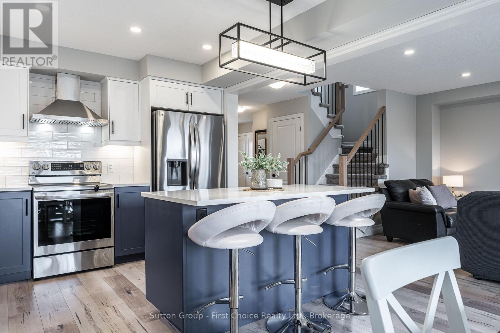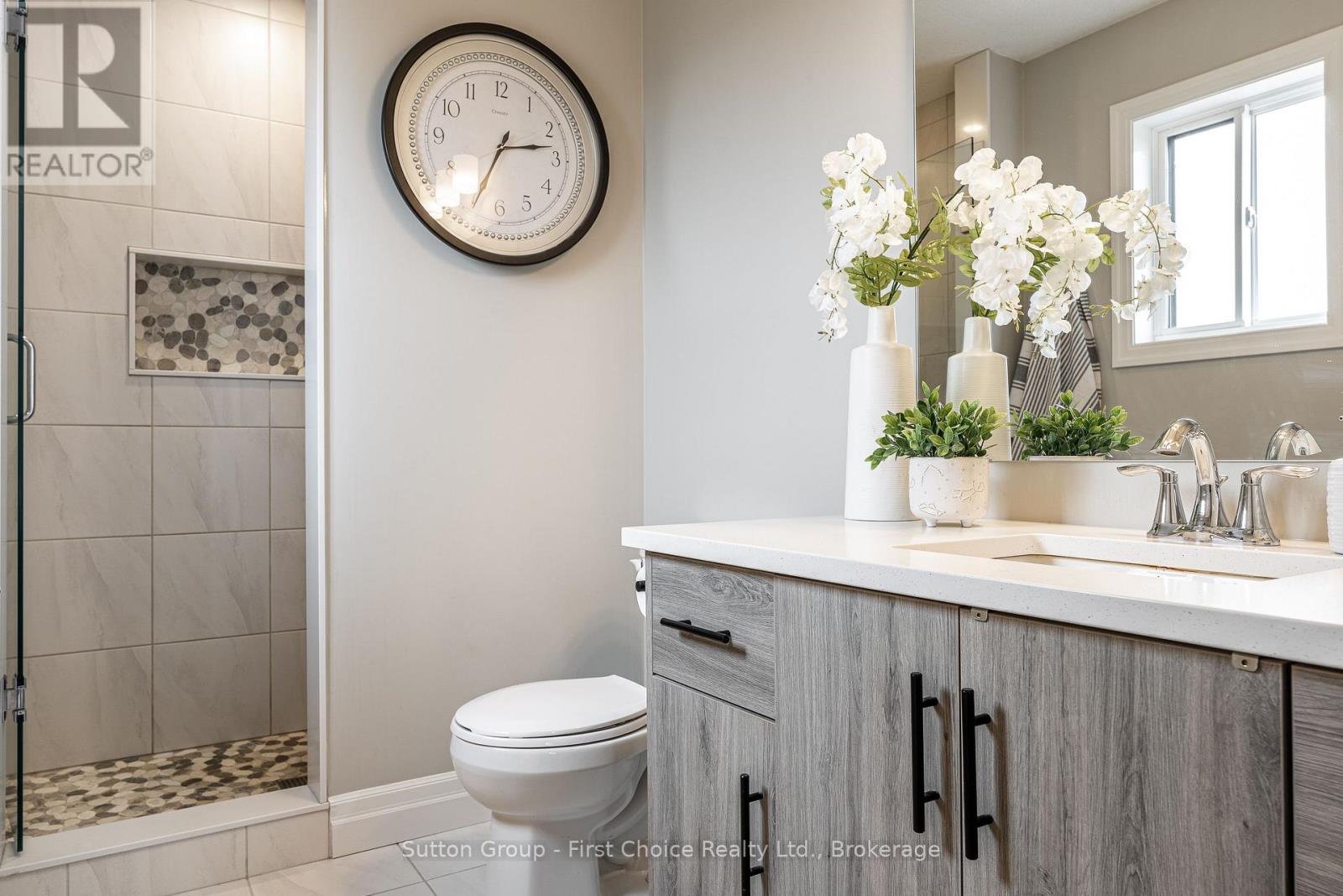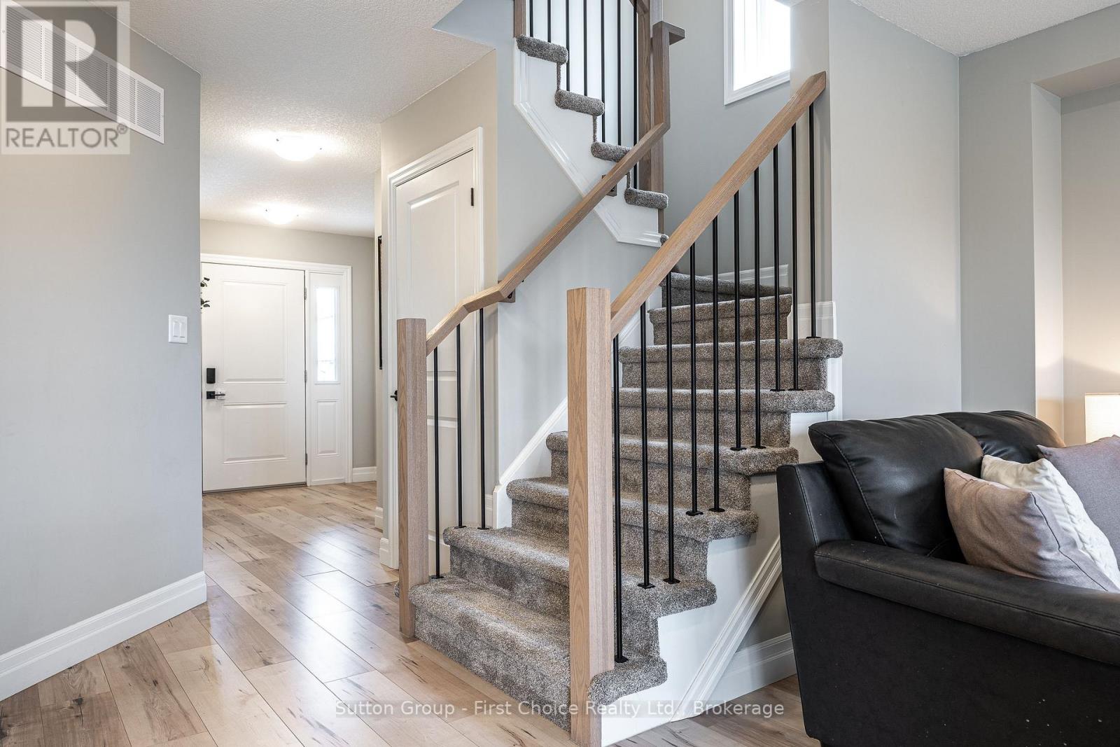 Welcome to 236 Bradshaw Drive, Stratford - where modern living meets comfort, style, and upgrades. Situated in the desirable Avon Ward, this move-in ready Earth Park home offers a beautifully designed layout just steps from a future park, the Stratford Rotary Complex, Stratford Farmers' Market and nearby schools. The open-concept main floor is bright and airy, featuring a beautifully updated kitchen with natural stone countertops, stylish cabinetry, a new modern backsplash and seamless flow into the dining and living spaces, perfect for everyday living and entertaining. Large windows with upgraded black exteriors enhance the home's curb appeal while flooding the interior with natural light. Upstairs, the spacious primary suite offers a walk-in closet and a beautifully finished 3-piece ensuite with a large walk-in shower and quartz countertops, designed with a clean, modern aesthetic. Two additional generously sized bedrooms, a full 4-piece bathroom, and convenient second-floor laundry complete the upper level. The unfinished basement presents incredible potential, complete with a bathroom rough-in and all the space needed to create a rec room, home gym, or future in-law suite. Step outside to a fully transformed exterior, featuring an impressive large stamped concrete patio, new concrete walkways, extended front steps, and an 8' fully fenced yard with two thoughtfully placed gates. Additional highlights include a Pinehaven shed, upgraded exterior pot lighting, insulated garage doors and hot tub electrical rough-in. This is the turnkey home you've been waiting for. Contact your Realtor today to book your private showing. ** This is a linked property.** (id:64974)