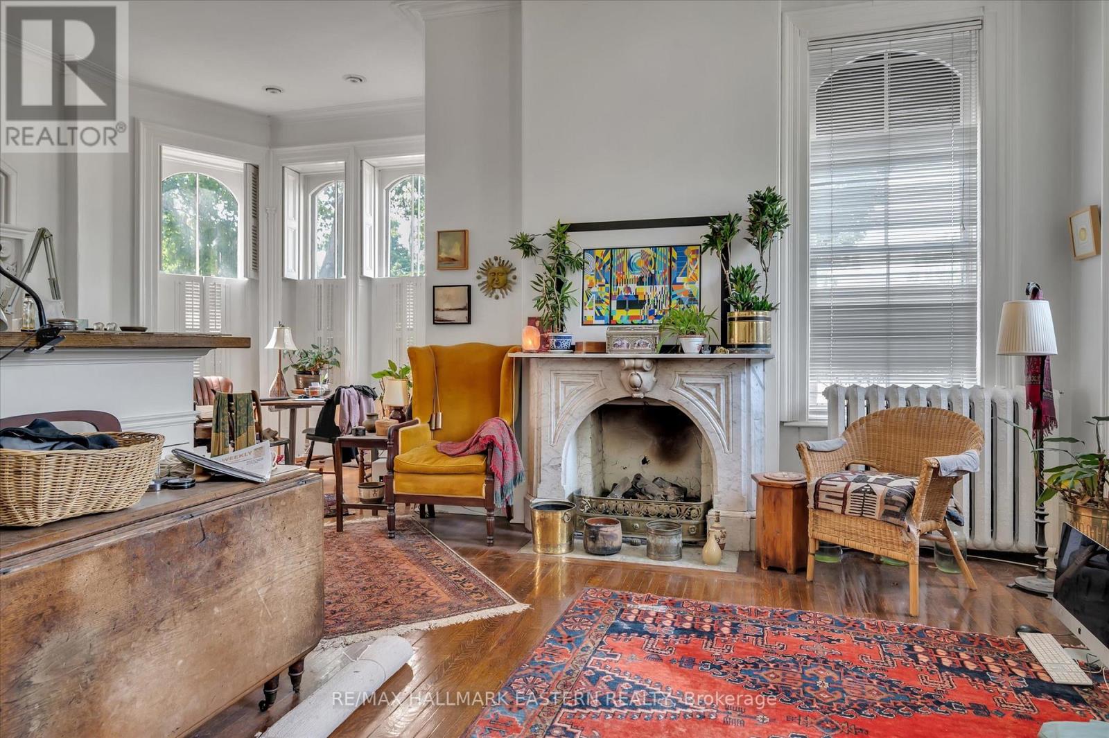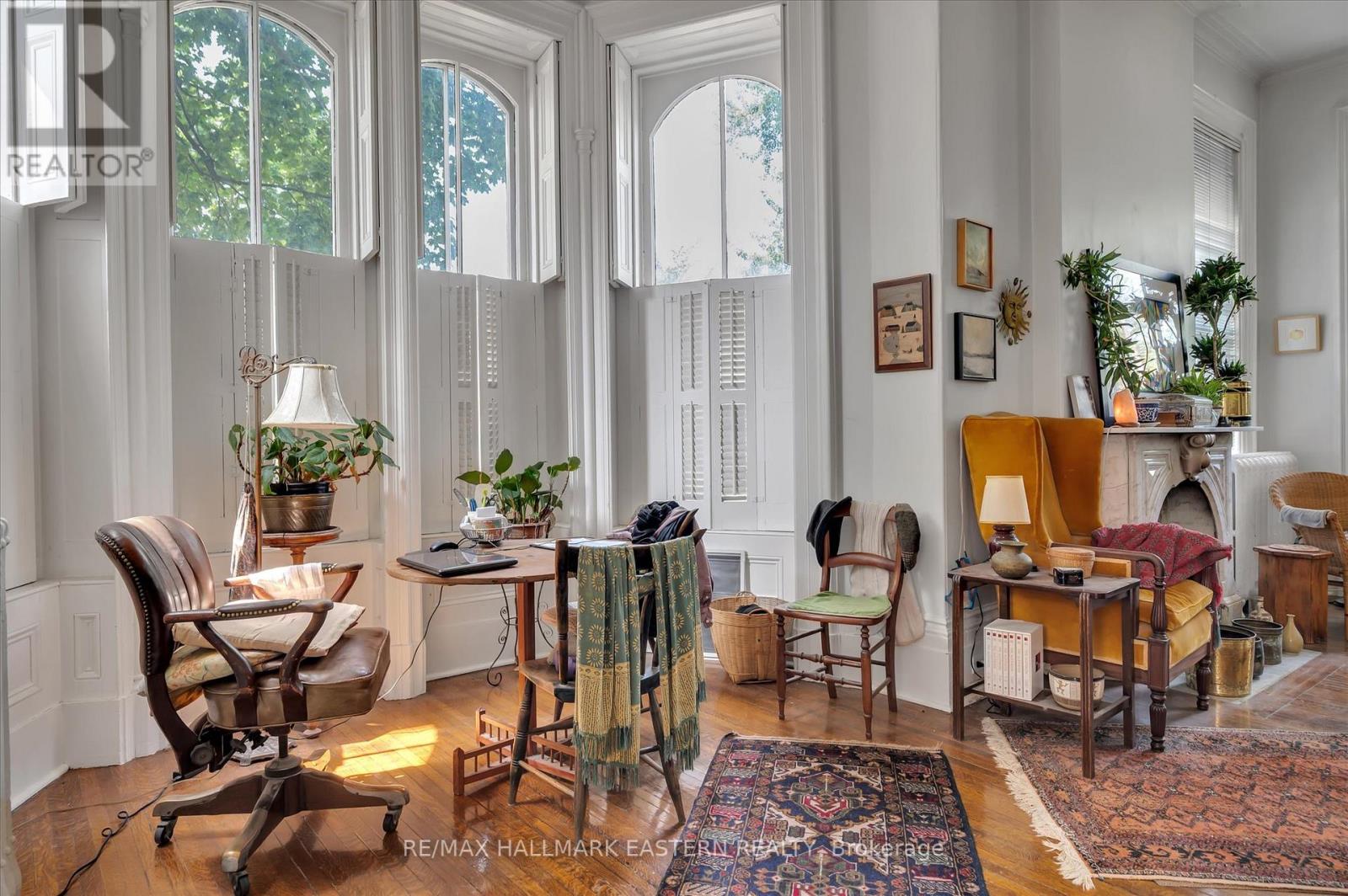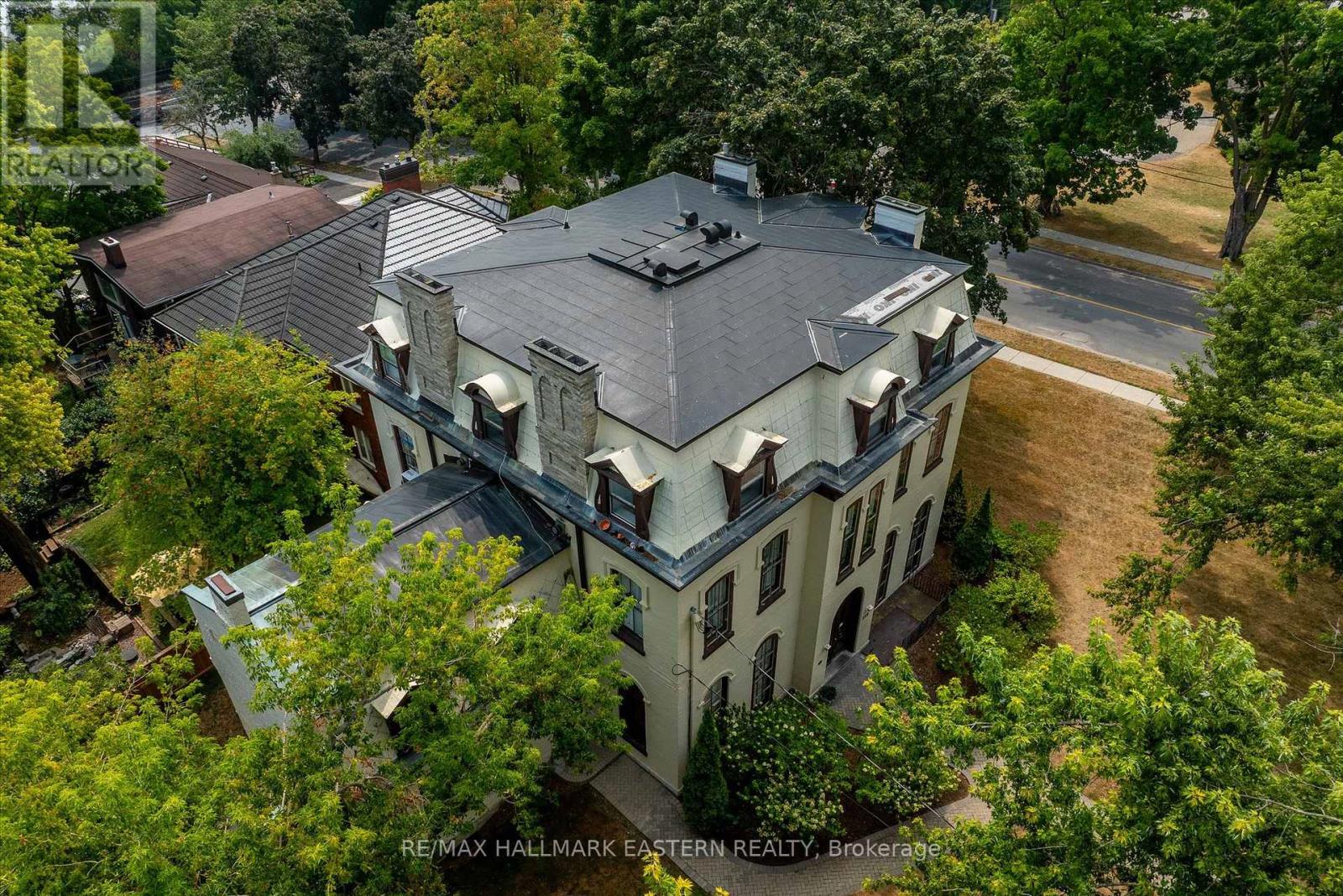 Welcome to Verulam House, an 1877 architectural treasure in Peterborough's elegant East City. This historic 7-unit income property (main property with six 1-brm suites and the side annex with one 2-brm suite plus full basement) sits on a generous 0.6-acre lot and seamlessly blends timeless character with quality updates. Inside, you'll find grand 1012 ft ceilings, striking bay windows, ornate moldings, and distinctive craftsmanship. Some suites feature gas or woodburning fireplaces framed by elegant marble mantles. Modern enhancements include three high-efficiency boilers (two Wi-Fi enabled), a copper roof, secure entry, interlocking parking, and fire safety systems. Once the home of a former mayor and a hub for arts and culture, Verulam House retains its creative charm while offering solid rental income. Moments from Little Lake, this property is an extraordinary chance to own a landmark that combines history, beauty, and enduring value in the heart of Peterborough's desirable East City. Coin laundry in the basement for tenant use. (id:64974)