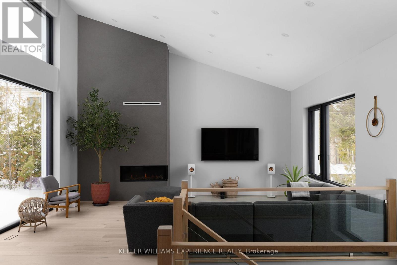 Architectural. Refined. Turn-Key. Exceptional custom-built bungalow (2021) offering over 4,300 sq ft of finished living space, complete with a private courtyard retreat, insulated Quonset hut, and summer house. Constructed with R35 ICF for superior efficiency and durability, and finished with a Standing Seam aluminum roof, aluminum siding, and aluminum windows. Striking angular rooflines, rich wood accents, and professionally landscaped grounds create remarkable curb appeal. Open-concept interior featuring 17-ft cathedral ceilings, engineered hardwood flooring, and a chef-inspired kitchen imported from Greece with porcelain countertops, waterfall island, premium KitchenAid and Monogram appliances, and a full butler's pantry. All main-level bedrooms offer private ensuites, including a spa-like primary with freestanding tub and glass shower. Fully finished lower level with 9-ft ceilings, rec room with fireplace, wet bar, office, bonus room, additional bedroom, laundry, and 4-piece bath. Gas hot water on demand. 200-amp service (home), 100-amp (garage), 60-amp (Quonset hut). Outdoor courtyard includes gas line; raised garden beds and greenhouse complete the property. A rare, design-forward offering combining craftsmanship, efficiency, and lifestyle. (id:64974)