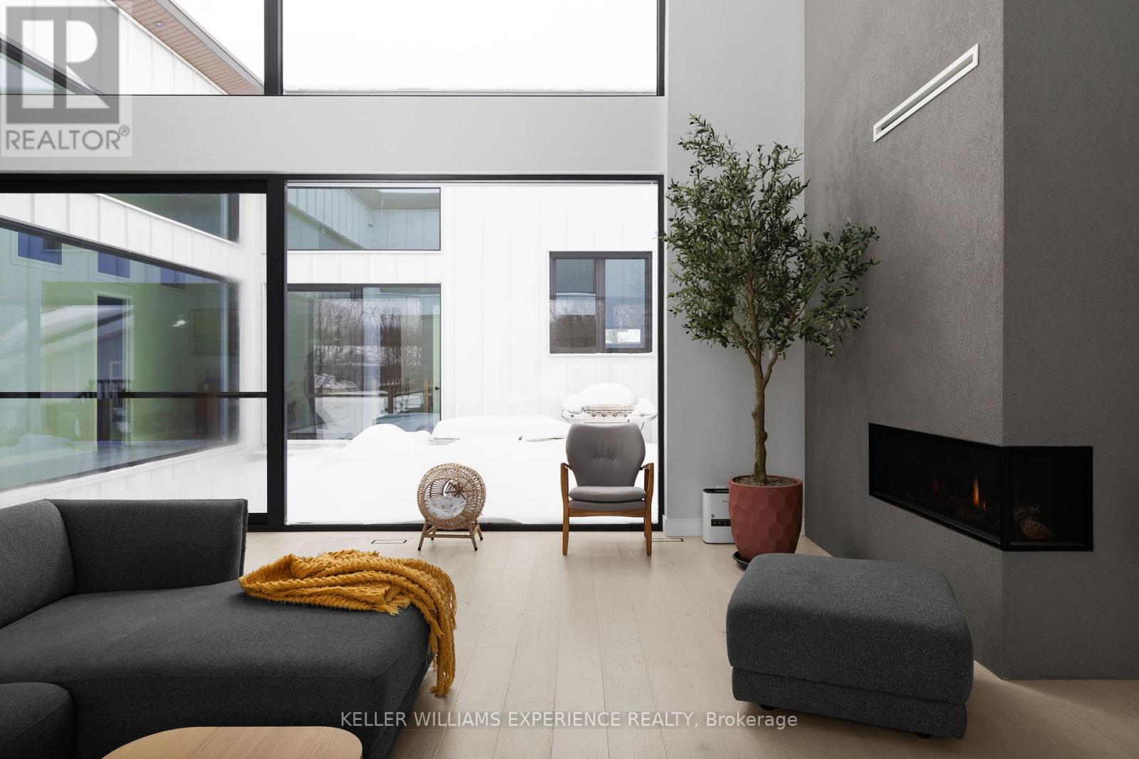 Architectural. Refined. Turn-Key. Exceptional custom-built bungalow (2021) offering over 4,300 sq ft of finished living space, complete with a private courtyard retreat, insulated Quonset hut, and summer house. Constructed with R35 ICF for superior efficiency and durability, and finished with a Standing Seam aluminum roof, aluminum siding, and aluminum windows. Striking angular rooflines, rich wood accents, and professionally landscaped grounds create remarkable curb appeal. Open-concept interior featuring 17-ft cathedral ceilings, engineered hardwood flooring, and a chef-inspired kitchen imported from Greece with porcelain countertops, waterfall island, premium KitchenAid and Monogram appliances, and a full butler's pantry. All main-level bedrooms offer private ensuites, including a spa-like primary with freestanding tub and glass shower. Fully finished lower level with 9-ft ceilings, rec room with fireplace, wet bar, office, bonus room, additional bedroom, laundry, and 4-piece bath. Gas hot water on demand. 200-amp service (home), 100-amp (garage), 60-amp (Quonset hut). Outdoor courtyard includes gas line; raised garden beds and greenhouse complete the property. A rare, design-forward offering combining craftsmanship, efficiency, and lifestyle. (id:64974)