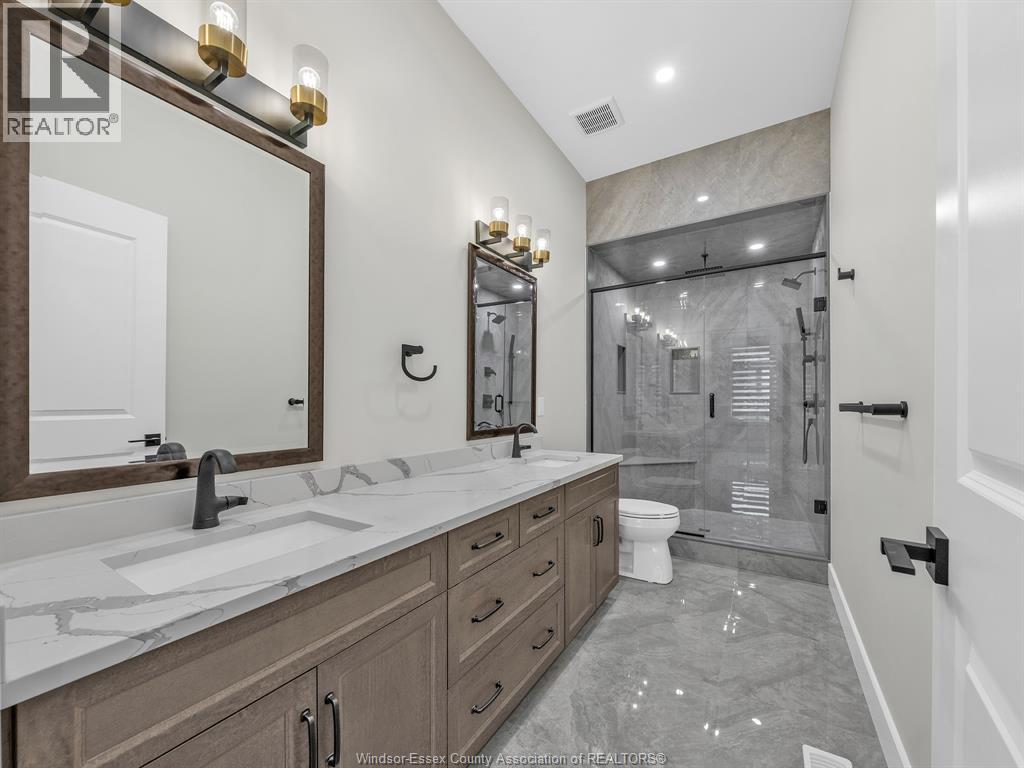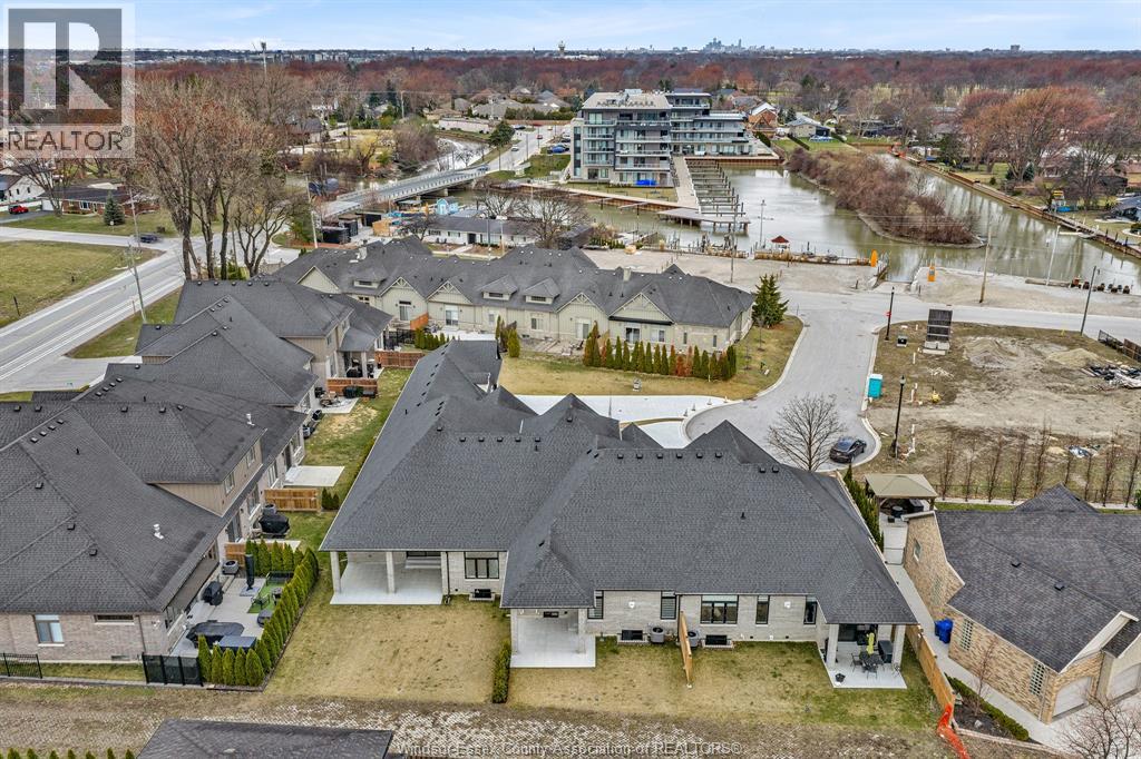 LOCATION, LOCATION, LOCATION! An Exceptional Newer-Built Townhouse in Lakeshore tucked away on a quiet cul-de- sac just off Old Tecumseh Road and East Pike Creek, offering upscale finishes and serene canal-side living leading to Lake St. Clair. This thoughtfully designed home features a main floor primary suite with a walk-in closet and spa-like ensuite, ideal for elegant main floor living. The open-concept layout showcases a custom kitchen with quartz countertops, walk-in pantry, powder room, main floor laundry and flows seamlessly into a refined living space anchored by a sleek linear gas fireplace and access to a covered rear patio with gas line hookup for BBQ. Upstairs, a second primary-style bedroom captures peaceful water views, perfect to impress guests or extended family. The fully finished basement adds versatility with a legal bedroom, full bathroom, TWO additional living areas, and a private den or office space with LOTS of storage Featuring 10’ ceilings, hardwood flooring, designer lighting, and a private driveway with a 2-car garage, this home delivers low-maintenance luxury in a premier location. The Seller has the right to refuse any and all offers. Call for more details. (id:64974)