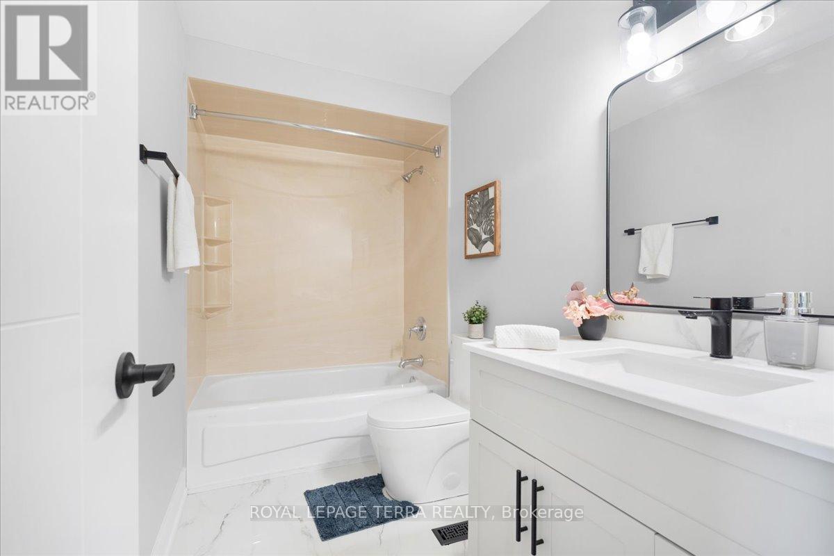 Beautifully upgraded townhouse in the heart of Brampton! This move-in ready home features a fully renovated main floor with a bright living area, modern powder room, and a stunning kitchen complete with quartz countertops, quartz backsplash, custom cabinetry, stylish finishes, pot lights, and laminate flooring throughout. The second floor offers three spacious bedrooms, all fully renovated with laminate flooring, along with a brand new modern full bathroom. The finished basement adds incredible value with a 1-bedroom layout and a sleek 3-piece bathroom, perfect for extended family or additional living space. This home has been upgraded top to bottom, offering the perfect blend of comfort, elegance, and functionality. A rare opportunity for first-time buyers or investors to own a beautifully finished home in a desirable location. (id:64974)
