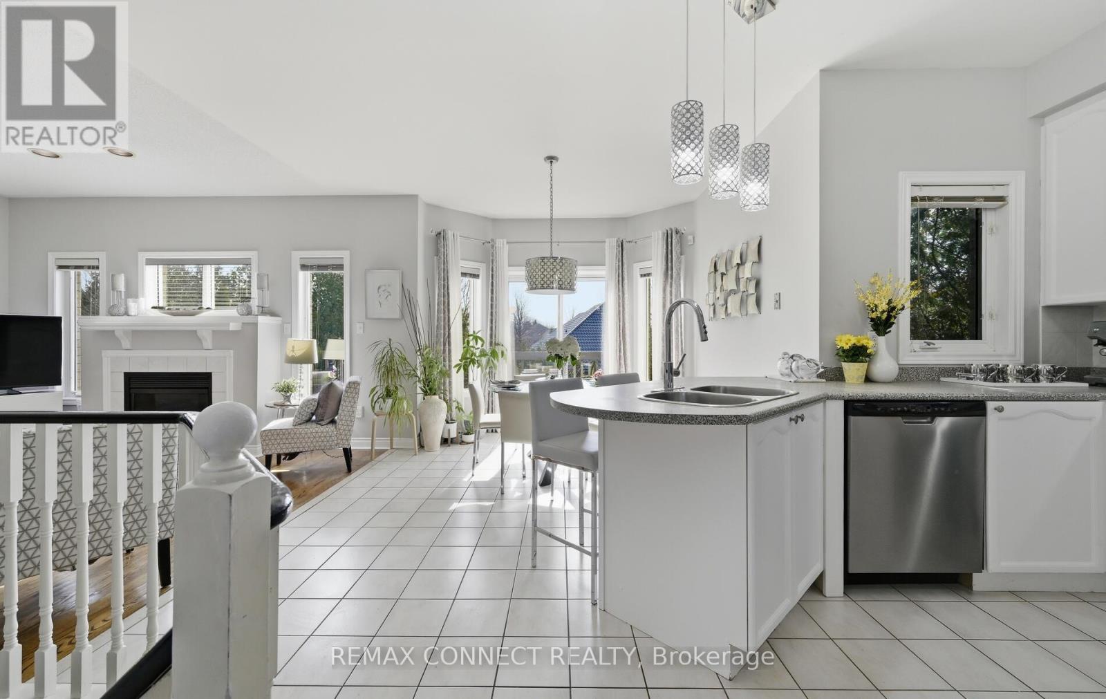 Welcome to great family living in the heart of North Pickering's prestigious Buckingham Gates community. This beautiful detached bungalow showcases a blend of elegance and functionality! From the moment you step inside, you are greeted with a stunning cathedral ceilings in the living/dining room, just perfect for hosting family gatherings or elegant parties. 9ft ceilings on the main level. The kitchen has walkout to deck great for entertaining. This home offers bright, open-concept living with thoughtfully designed spaces that maximize comfort and natural light. Large principal rooms. The fully finished lower level features its own walkout to outdoor patio with gas bbq line creating seamless indoor-outdoor living and with opportunity for added separate privacy with a second kitchen and a dining area . A second laundry rough -in is also available. Great set up for in-law suite or multi-generational families. Step outside to a fully fenced backyard, perfect for relaxing, entertaining, or enjoying special memorable family times. Two (2)gas fireplaces. Basement rec fireplace "as is". Garage boasts custom shelving for extra storage and a central vacuum system is available. Come and make this one your next home!!! (id:64974)