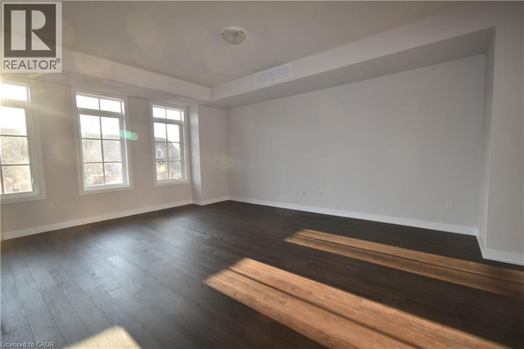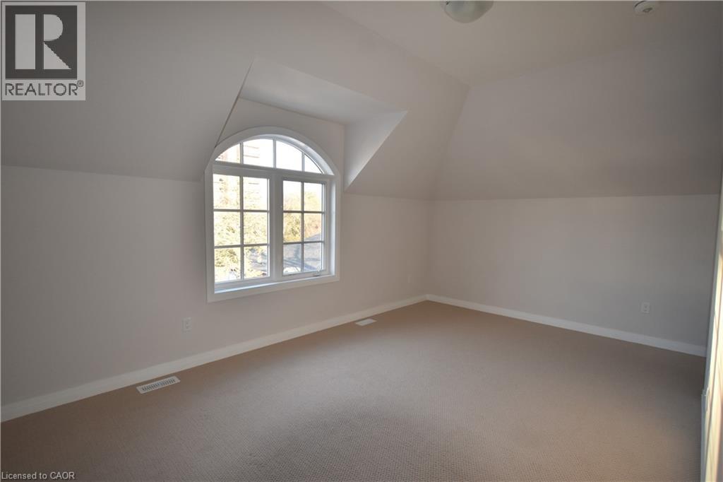 This exceptional townhome in Central Burlington provides 1850 sf on three floors, plus an unfinished basement. Unique plan provides for 4 private parking spaces (double garage plus double driveway). 2 bedrooms on upper level + one bedroom/den/office on main floor, 3.5 baths, bedroom level laundry. Many upgrades including laminate flooring, granite, walk-in shower in master ensuite. Available June 1, 2026. (id:64974)
