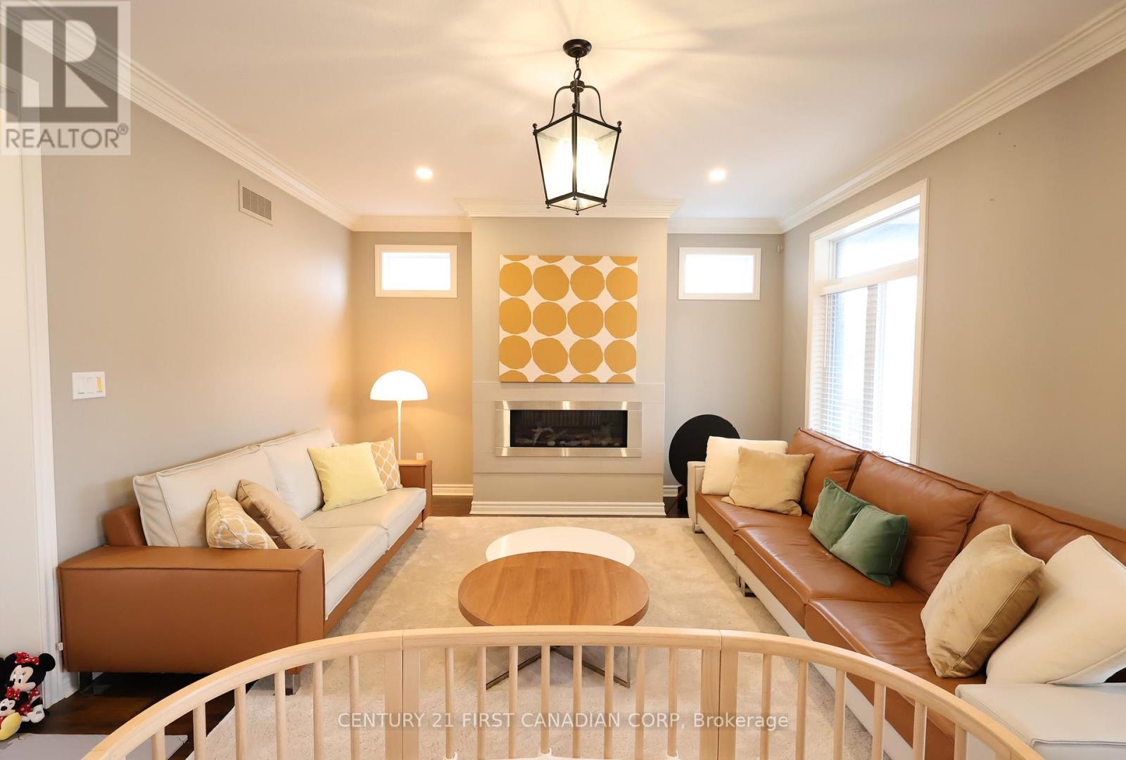Finished basement, walk out with 2 rooms. Welcome to this beautiful Harasym designed home, nestled in the Upper Richmond Village on Sunningdale . This residence seamlessly blends contemporary style with everyday comfort. Upon entry, you are greeted by a high two-story foyer that flows effortlessly into the dinning room, and an elegant office-featuring double glass doors. The open-concept layout creates a perfect flow between the family room, breakfast area, and chef-inspired kitchen. Perfect for both family living and gathering. The kitchen is a standout, equipped with SS modern appliances. Stunning quartz countertops, a good side island, and abundant cabinetry. The family room is warm and inviting, highlighted by a cozy gas fireplace. For convenience, the mudroom offers easy access from the double-car garage. The main floor features high ceilings, enhancing the open and airy feel of the space. Upstairs, the luxurious primary suite offers a private retreat with a spa-like 5-piece ensuite and a spacious walk-in closet. While the other bedrooms share a well-appointed 5-piece bathroom. The laundry room is conveniently located on the main floor for easy access. This house is a carpet-free haven, featuring beautiful hardwood flooring throughout, complemented by ceramic tile in the bathrooms and mudroom. This home offers the perfect blend of luxury, convenience, and comfort. Don't wait! come and see! ** This is a linked property.** (id:64974)