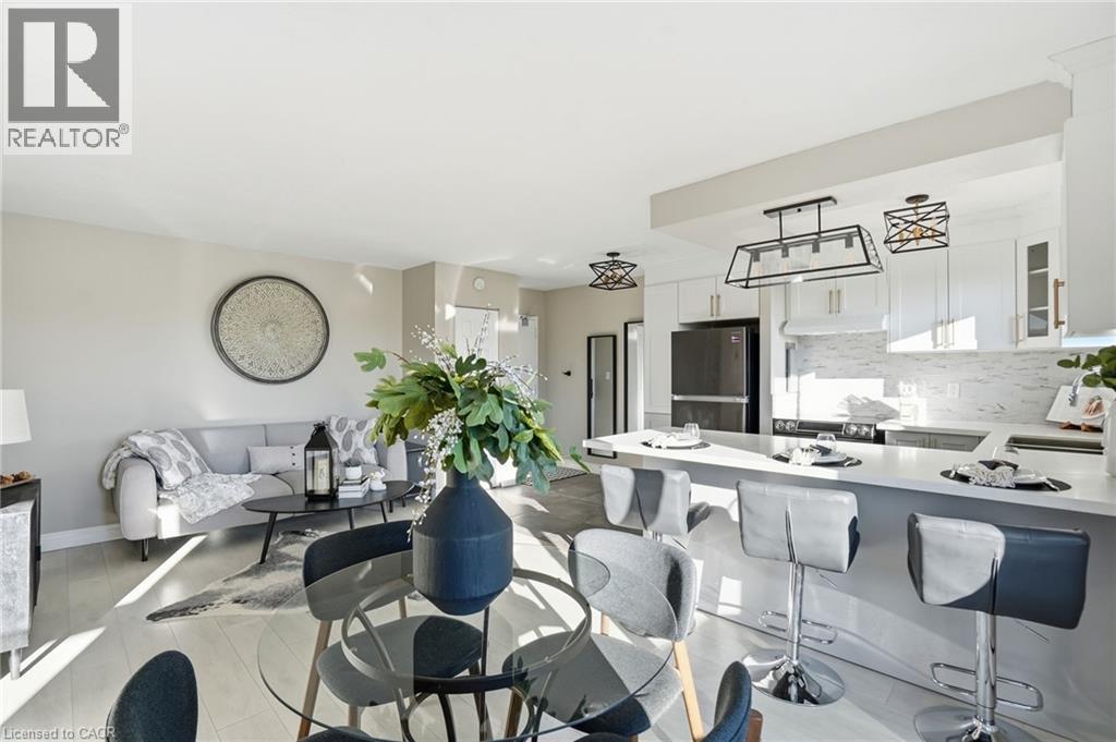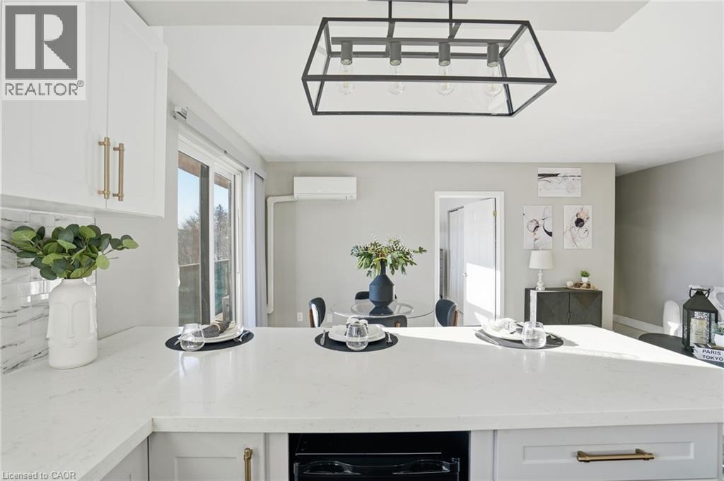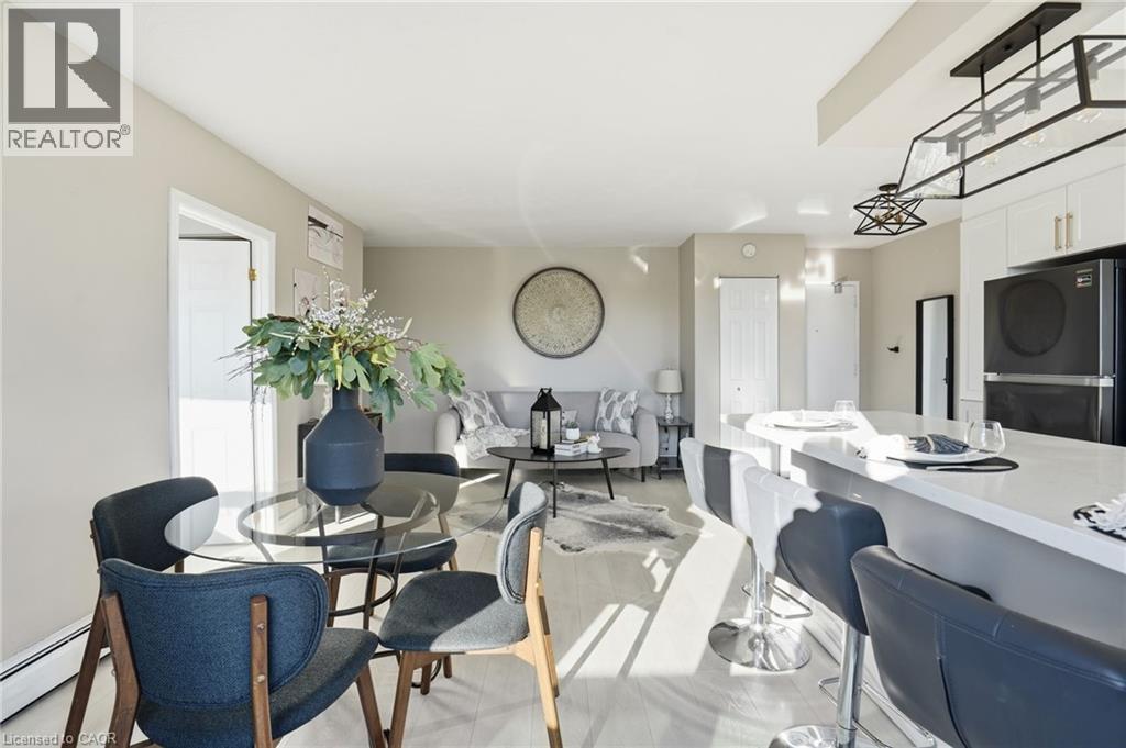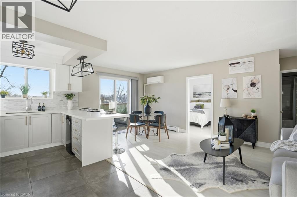 Welcome to this beautifully renovated condo apartment in the highly desirable Bartonville–Glenview neighbourhood of East Hamilton. Offering a comfortable, low-maintenance lifestyle, this move-in-ready unit with an owned storage locker, presents a rare combination of modern updates, peaceful surroundings, and exceptional views—ideal for first-time buyers, downsizers, or investors. The thoughtfully renovated interior features carpet-free living throughout, stone countertops, a functional breakfast bar, and one of the few units in the building with built-in air conditioning, creating a bright, modern space ideal for everyday living and entertaining. Large windows and a massive private balcony extend the living space outdoors and showcase an exceptional scenic view overlooking the tree-lined skyline of the Red Hill Valley Bowl, offering a peaceful green backdrop and a rare connection to nature seldom found in condo living. Enjoy nearby green spaces, including Red Hill Valley Trail across the street providing scenic walking and biking trails throughout the Red Hill Valley. Commuters will appreciate easy access to major routes including the Red Hill Valley Parkway, the LINC, QEW, and Highway 403, making travel across Hamilton and into the GTA efficient and stress-free. Public transit, shopping, restaurants, and essential amenities are all nearby along King Street East, Queenston Road, and Centennial Parkway. Surrounded by parks, schools, and community services, this location offers a peaceful residential setting enhanced by stunning tree-lined valley views, while remaining minutes from downtown Hamilton, Stoney Creek, and major employment hubs. A fantastic opportunity to own in a well-established East Hamilton neighbourhood known for its accessibility, natural surroundings, and lifestyle appeal. (id:64974)