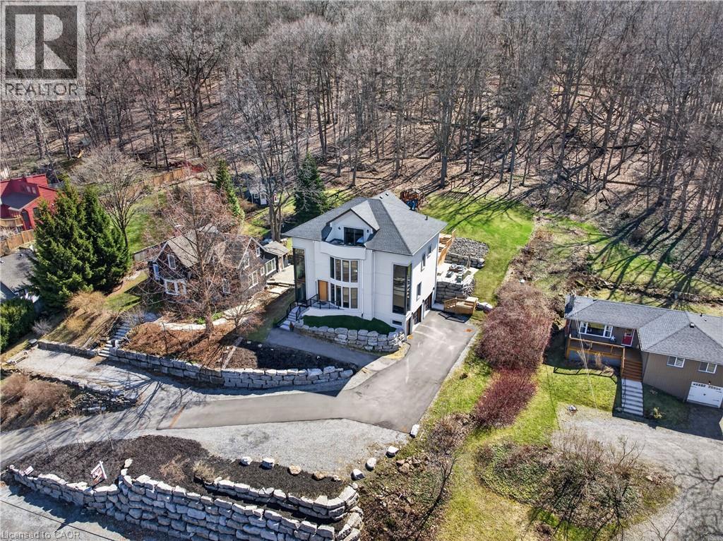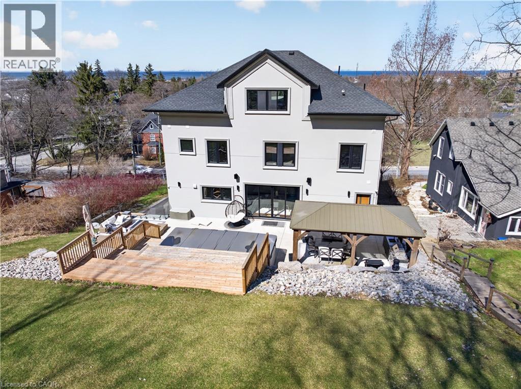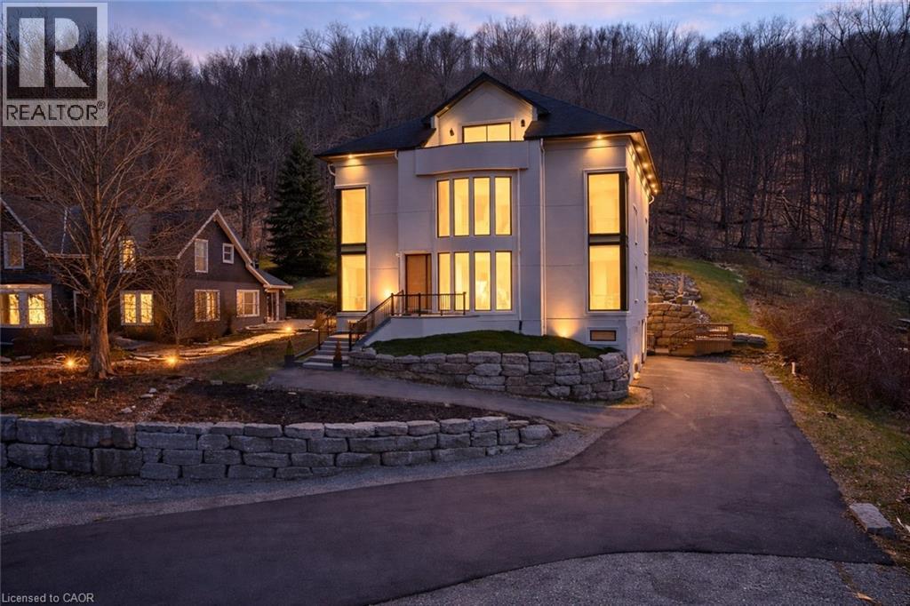 ESCARPMENT LUXURY MASTERPIECE WITH UNOBSTRUCTED LAKE AND TORONTO SKYLINE VIEWS Perched high along the Grimsby escarpment, this is more than a home, it is a rare lifestyle reserved for those who expect more. With sweeping, unobstructed views across Lake Ontario to the Toronto skyline, every moment here feels elevated, private, and exceptional. Inside, soaring ceilings and dramatic walls of glass flood the home with natural light, creating a seamless connection between refined living and the landscape beyond. The chef-inspired kitchen anchors the main level with an oversized island and walk-in pantry, designed for effortless entertaining and everyday comfort. A private in-home elevator connects all three levels, delivering convenience without compromise. The upper floors unfold into a true retreat, featuring a third-level sanctuary with a private balcony where morning coffee and sunset views become part of your daily routine. Step outside to a tiered backyard set against the escarpment, offering rare privacy and a peaceful natural backdrop. The swim spa creates the perfect setting for relaxing evenings and summer days spent at home. Located minutes from downtown Grimsby, you will enjoy boutique shops, dining, parks, and top-rated schools, with quick highway access to Hamilton, Burlington, and the GTA. This is where nature, luxury, and convenience come together. A rare opportunity to experience escarpment living at its highest level. (id:64974)