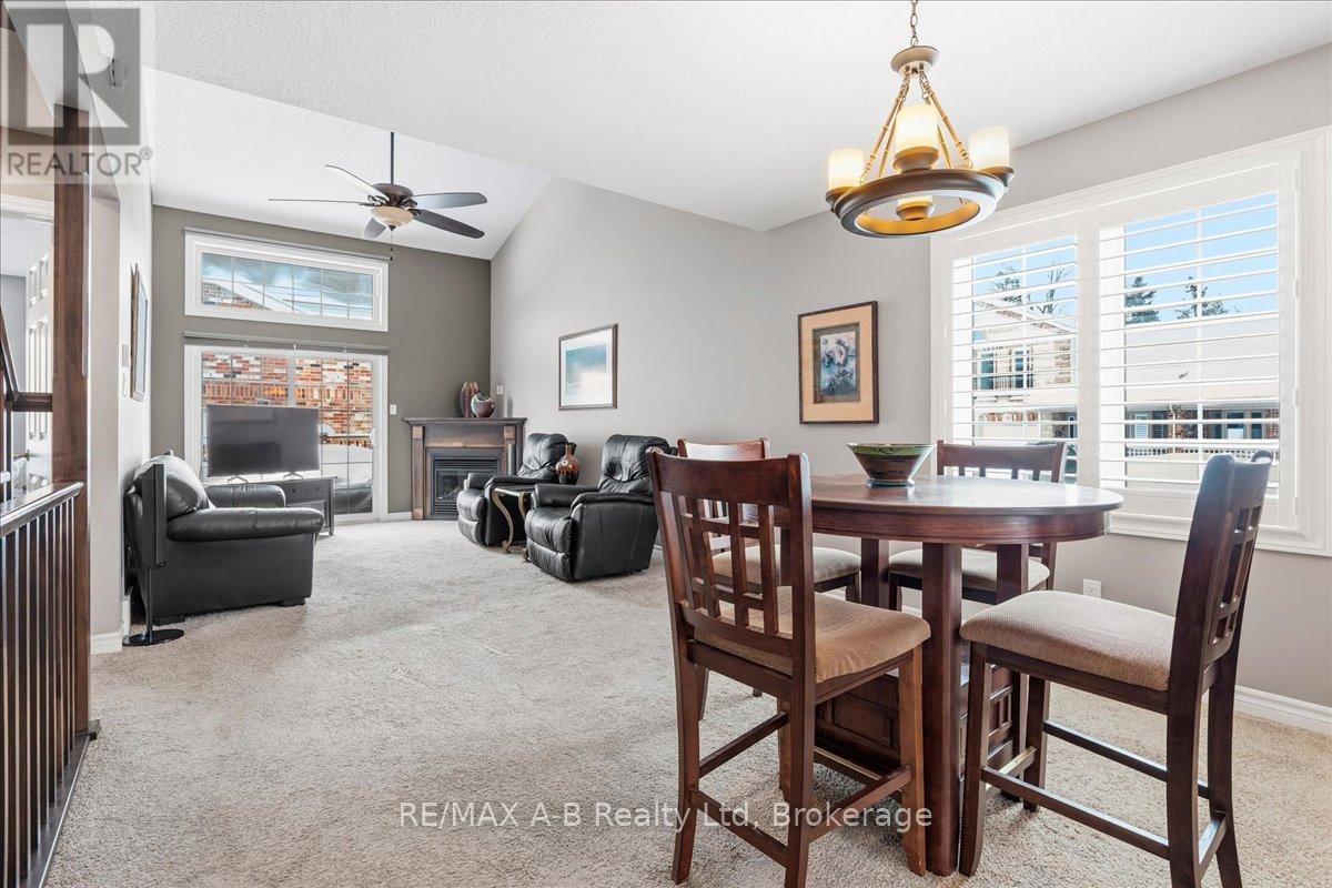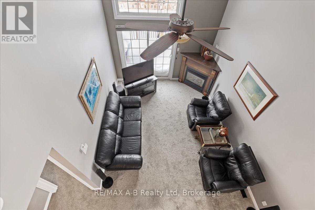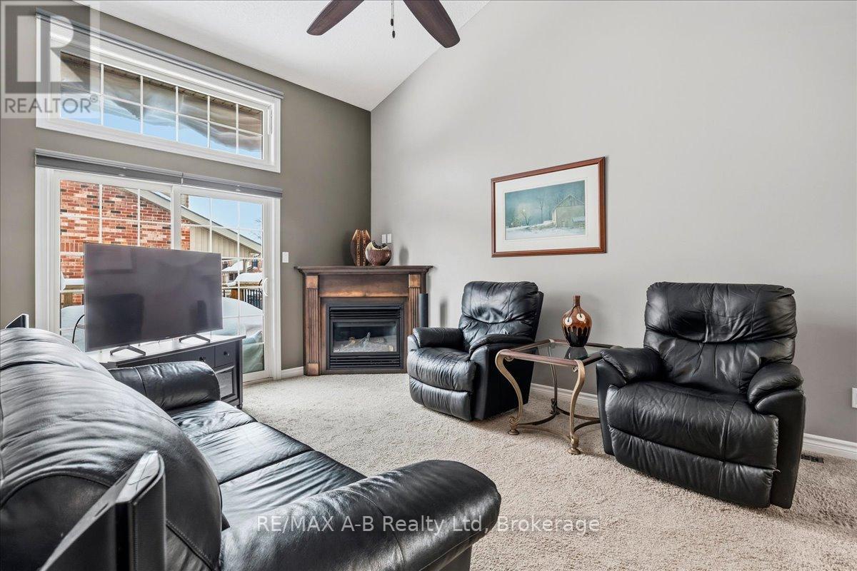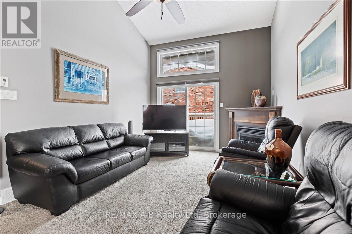 One of the most prestigious and sought-after residences at 50 Galt, this exceptional southeast-facing end unit has abundant natural light and is thoughtfully upgraded throughout. Offering true main-floor living, the home features a spacious primary bedroom with double closets, a private ensuite, and a conveniently oversized laundry closet. The beautifully designed kitchen showcases MacLean cabinetry, stainless steel appliances, and ample counter space-perfect for both everyday living and entertaining. The open-concept living area is warm and inviting, complete with a cozy gas fireplace and patio doors that lead to a private deck with a natural gas hookup and included Napoleon BBQ. Soaring cathedral ceilings create space and lead to the upper level, where you'll find a generous second living area, an additional bedroom, and a full bathroom-ideal for guests, a home office, or flexible lifestyle needs. The lower level offers excellent storage and versatile bonus space, while the garage provides year-round vehicle protection and added convenience. This is condo living at its finest with exceptional space, comfort, and storage in an exclusive and highly desirable setting. (id:64974)