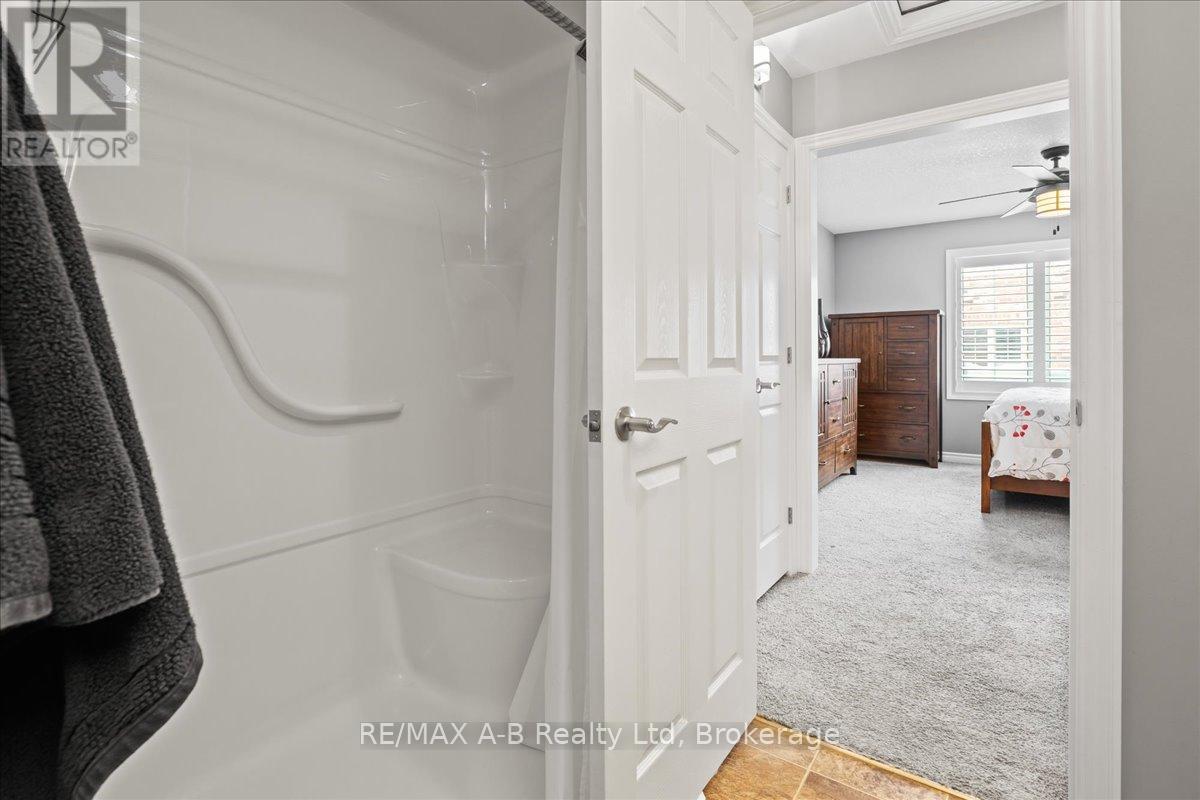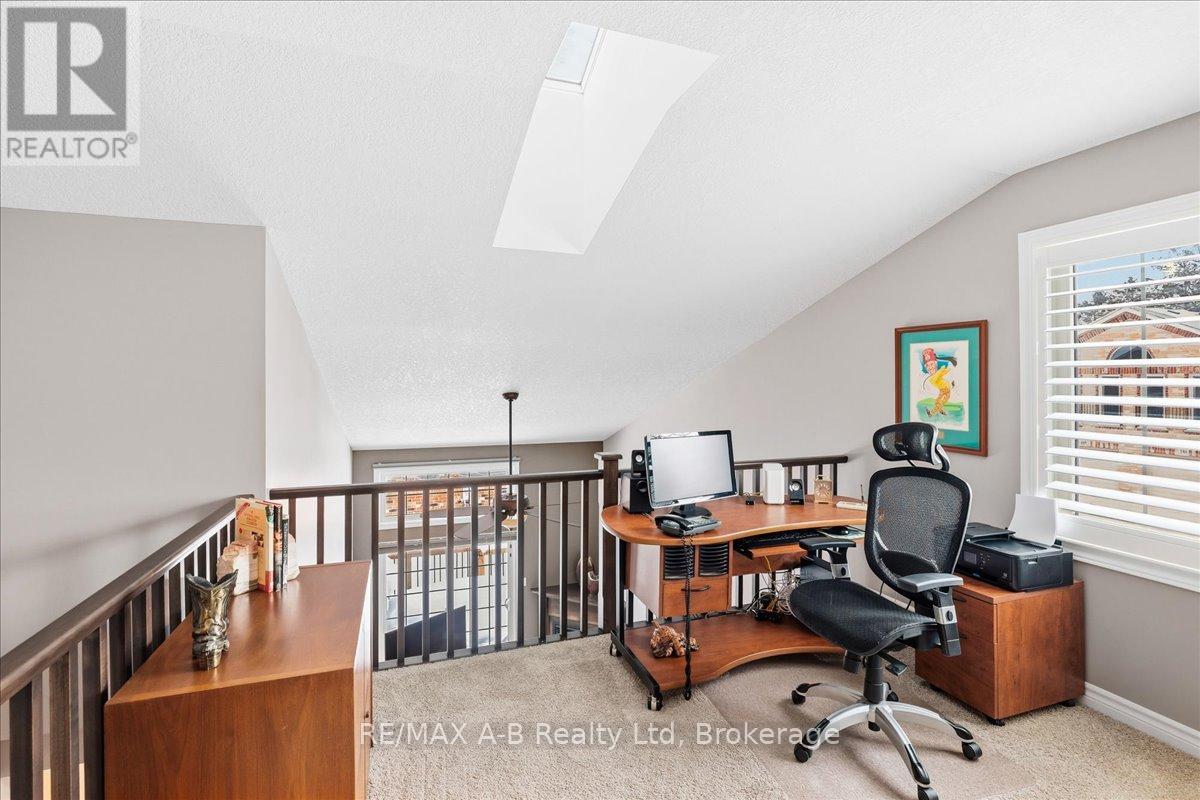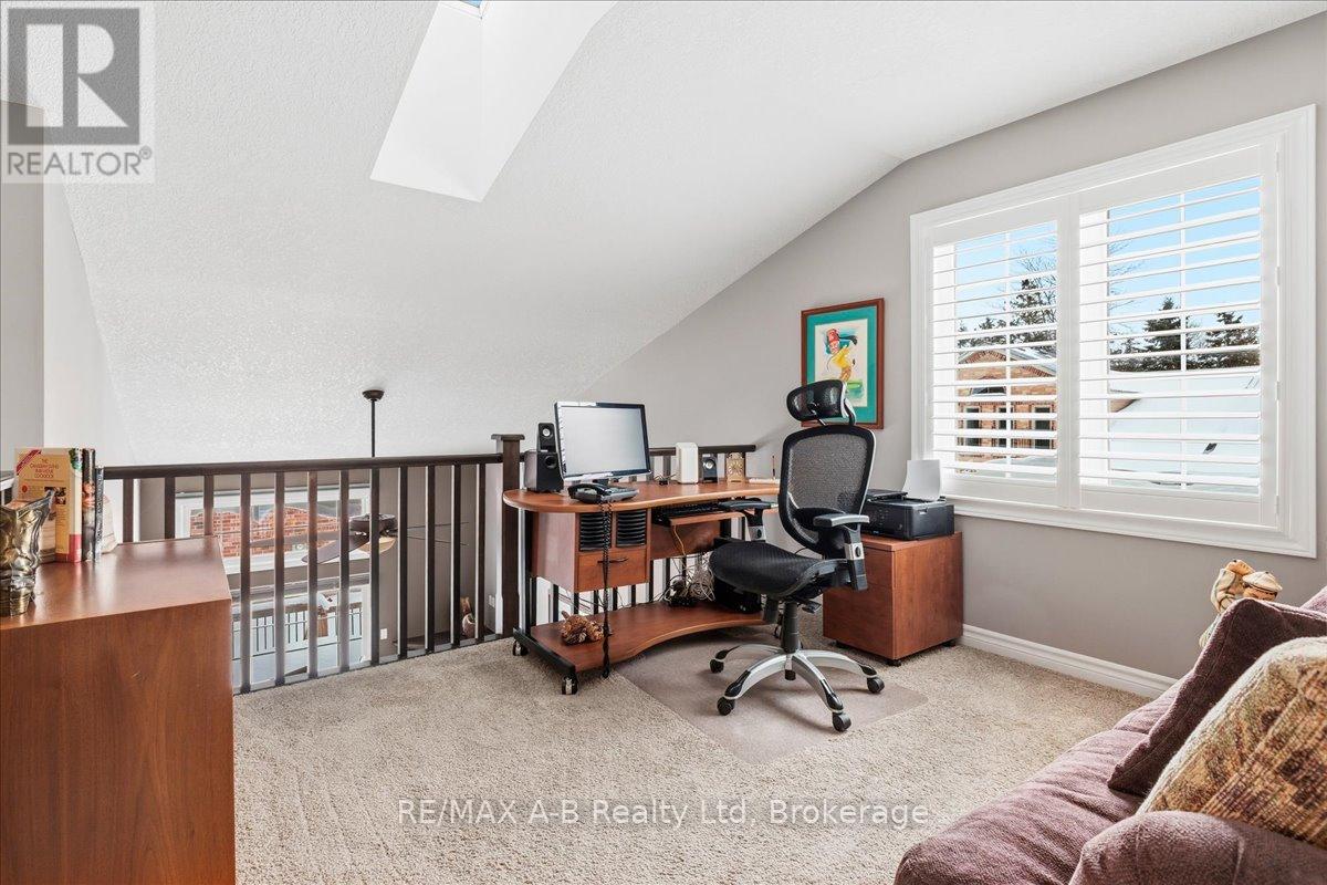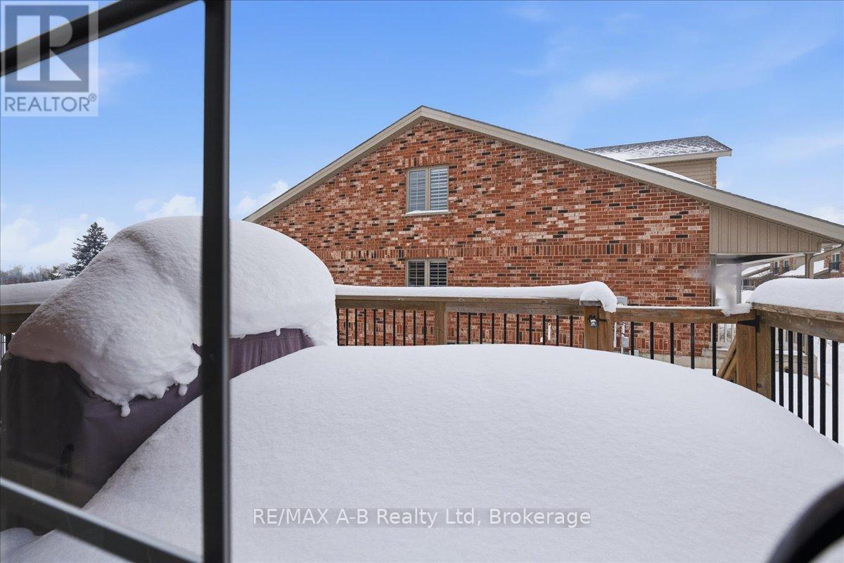 One of the most prestigious and sought-after residences at 50 Galt, this exceptional southeast-facing end unit has abundant natural light and is thoughtfully upgraded throughout. Offering true main-floor living, the home features a spacious primary bedroom with double closets, a private ensuite, and a conveniently oversized laundry closet. The beautifully designed kitchen showcases MacLean cabinetry, stainless steel appliances, and ample counter space-perfect for both everyday living and entertaining. The open-concept living area is warm and inviting, complete with a cozy gas fireplace and patio doors that lead to a private deck with a natural gas hookup and included Napoleon BBQ. Soaring cathedral ceilings create space and lead to the upper level, where you'll find a generous second living area, an additional bedroom, and a full bathroom-ideal for guests, a home office, or flexible lifestyle needs. The lower level offers excellent storage and versatile bonus space, while the garage provides year-round vehicle protection and added convenience. This is condo living at its finest with exceptional space, comfort, and storage in an exclusive and highly desirable setting. (id:64974)