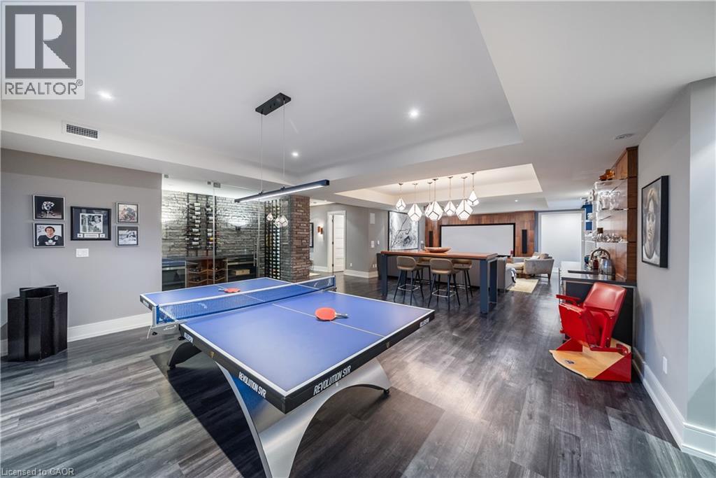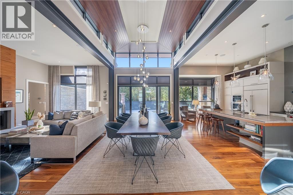 An exceptional custom-built luxury residence in Burlington’s most coveted neighbourhood - Roseland. Refined craftsmanship, thoughtful architecture, and elevated finishes come together to create a home that is both striking and deeply livable. Premium walnut flooring, soaring ceilings with exposed steel beams, and extensive custom millwork establish a sophisticated tone throughout. Oversized Pella windows, paired with custom drapery and blinds, flood the home with natural light while creating a seamless connection between indoor and outdoor living. At the heart of the home, the chef’s kitchen is designed to impress. The dramatic island anchors the space, complemented by a Wolf gas range, Sub-Zero refrigerator and beverage fridge, quartz countertops, and a spacious walk-in pantry with custom organizers, perfectly suited for both everyday living and effortless entertaining. The main level is complete with a private primary sanctuary offering a peaceful retreat, with a spa-inspired ensuite and steam shower, and custom dressing room. A dedicated office with built-in shelving, a well-appointed laundry room, and a thoughtfully designed mudroom with custom storage complete the level with both elegance and practicality. Upstairs, two generously sized bedrooms each feature walk-in closets and private ensuites, along with rough-in for future secondary laundry. The fully finished lower level expands the home’s living space with in-floor heating, a wet bar, projector TV area, wine cellar with potential for temperature control, an additional bedroom with ensuite, and flexible space ideal for a home gym, studio, or additional storage. A rare opportunity to own a meticulously crafted custom home where design, comfort, and luxury living are perfectly balanced. Luxury Certified. (id:64974)