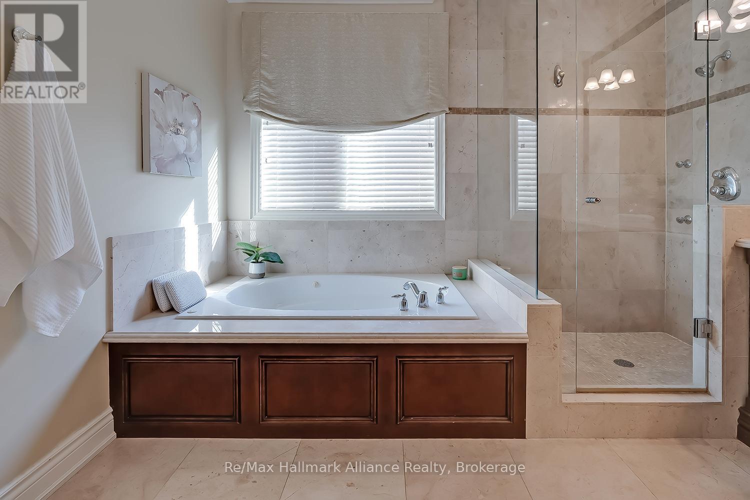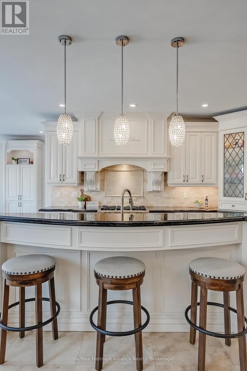 Welcome to 2381 Gamble, a move-in-ready executive home located in the heart of prestigious Joshua Creek, within walking distance to Joshua Creek Public School, trails, parks, and playgrounds, and close to everyday amenities. Offering approximately 3,738 sq ft plus a finished basement, this impressive 4 bedroom, 4.5 bathroom residence features extensive high-quality renovations throughout. A covered front porch leads to a grand foyer with heated porcelain flooring, opening to an elegant main level with Italian porcelain floors, crown moulding, pot lights, and crystal light fixtures. The formal living room and private den/office both feature heated floors with separate temperature controls. The spacious dining room flows into the inviting family room with gas fireplace and included frameless TV. The gourmet kitchen is a standout, featuring travertine flooring, a large centre island with breakfast bar, granite countertops, stone backsplash, high-end stainless steel appliances, and custom cabinetry with soft-close hinges, glass display cabinets, and undermount lighting. A bright breakfast area with five large windows offers a walkout to the patio. The expansive primary suite includes his and hers walk-in closets, a luxurious 5-piece ensuite with marble floors, jacuzzi tub, double vanity, glass shower, and a separate sitting area. The second bedroom features a private 4-piece ensuite, while the third and fourth bedrooms share a 5-piece semi-ensuite. The finished basement offers a 3-piece bath with heated marble floors, custom walnut vanity, entertainment and recreation areas with gas fireplace, built-in cabinetry, speaker system, custom wet bar with wine fridge, and bonus servery. The backyard retreat features an inground saltwater pool, extended patio, professional landscaping with irrigation and lighting, custom cedar shed/pool house, and retractable awning. A rare opportunity in one of Oakville's most sought-after neighbourhoods. (id:64974)