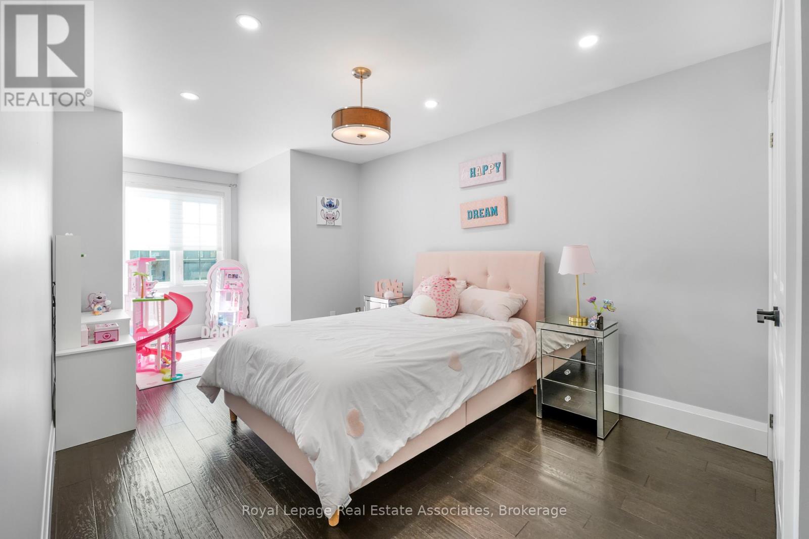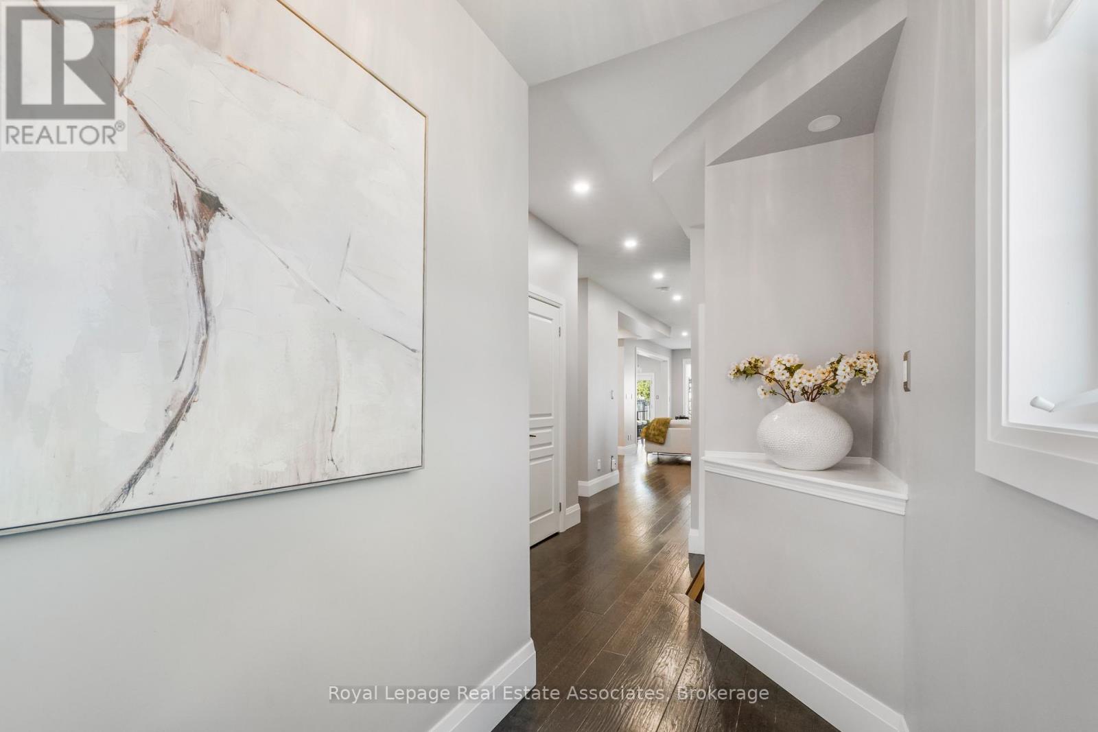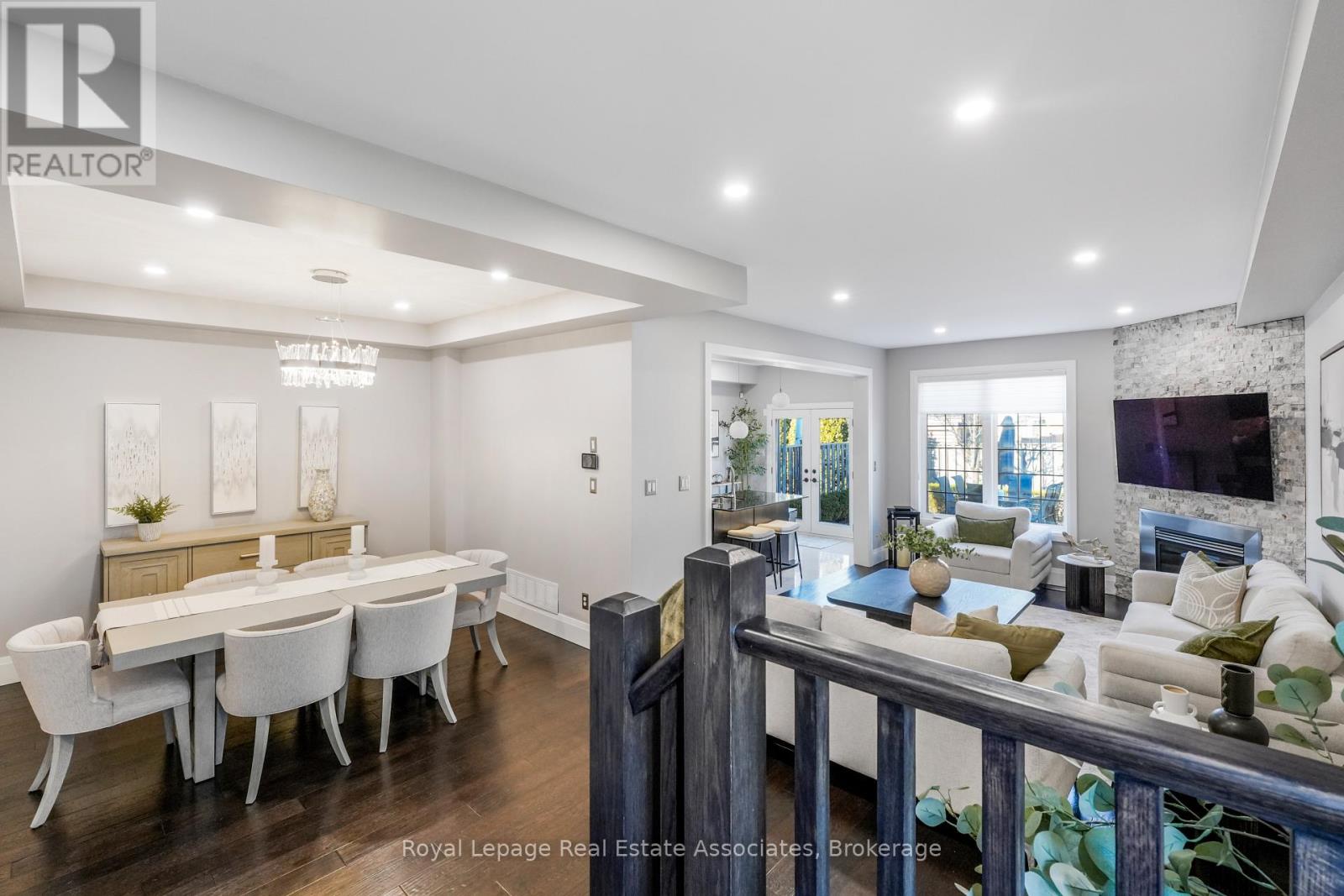 Absolutely stunning 4-bedroom, 4-bathroom semi-detached home on an oversized pie-shaped lot, loaded with high-end upgrades throughout. Hardwood flooring flows seamlessly through the foyer, living, and formal dining areas. The gourmet kitchen features a center island and walk-out to a beautifully landscaped backyard complete with stonework, sprinkler system, remote-controlled LED lighting, a 20' x 20' flagstone patio with pergola, and an additional 16' x 28' lower patio. Outdoor entertaining is elevated with a built-in 36" DCS (Fisher & Paykel) grill, bar fridge, and granite counters.The spacious primary bedroom offers a fully updated 5-piece ensuite, while all bathrooms have been tastefully renovated. Additional features include high-end finishes, upgraded baseboards, designer paint, and a fully finished basement for added living space.Located in a highly desirable area within walking distance to the community centre, Oakville Soccer Club, parks, trails, schools, and close to Lake Ontario and Bronte Creek Provincial Park.A rare opportunity to own a truly exceptional home in a prime location. (id:64974)