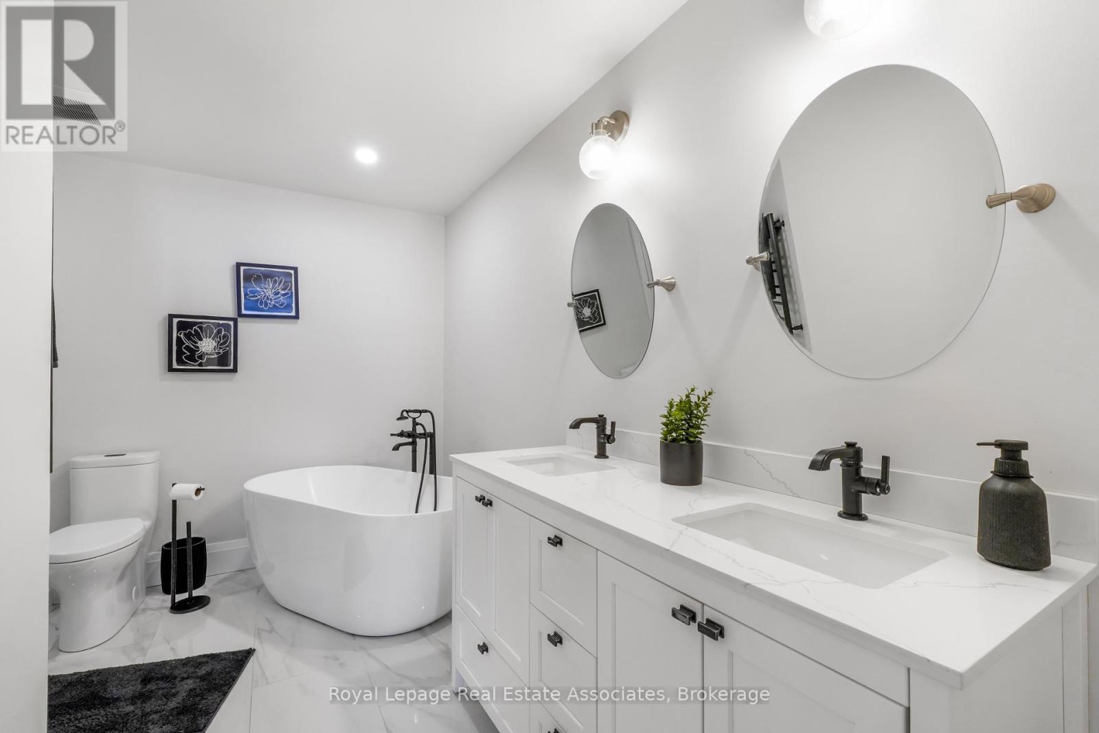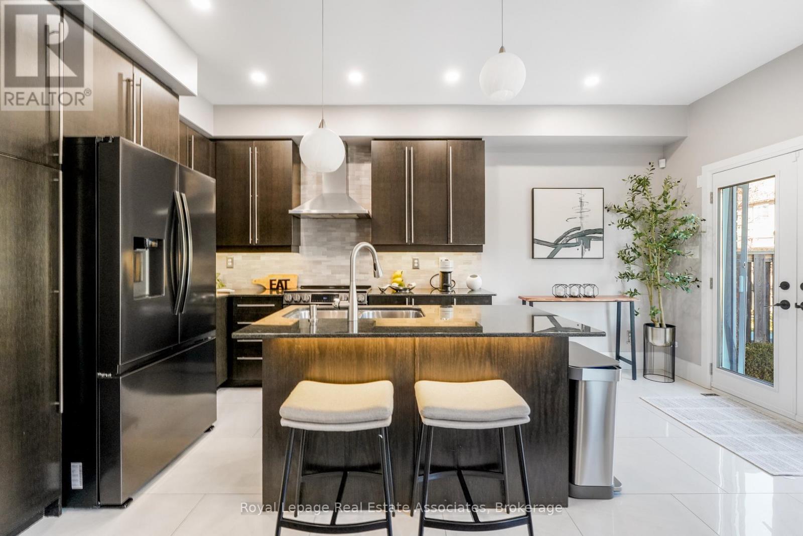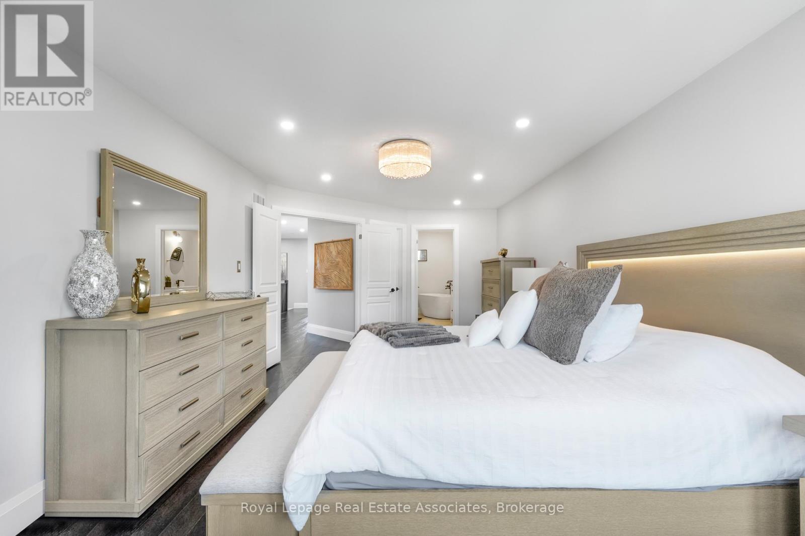 Absolutely stunning 4-bedroom, 4-bathroom semi-detached home on an oversized pie-shaped lot, loaded with high-end upgrades throughout. Hardwood flooring flows seamlessly through the foyer, living, and formal dining areas. The gourmet kitchen features a center island and walk-out to a beautifully landscaped backyard complete with stonework, sprinkler system, remote-controlled LED lighting, a 20' x 20' flagstone patio with pergola, and an additional 16' x 28' lower patio. Outdoor entertaining is elevated with a built-in 36" DCS (Fisher & Paykel) grill, bar fridge, and granite counters.The spacious primary bedroom offers a fully updated 5-piece ensuite, while all bathrooms have been tastefully renovated. Additional features include high-end finishes, upgraded baseboards, designer paint, and a fully finished basement for added living space.Located in a highly desirable area within walking distance to the community centre, Oakville Soccer Club, parks, trails, schools, and close to Lake Ontario and Bronte Creek Provincial Park.A rare opportunity to own a truly exceptional home in a prime location. (id:64974)