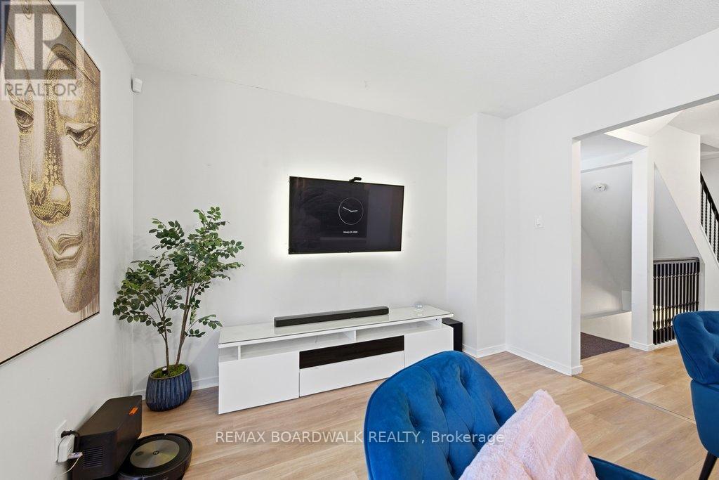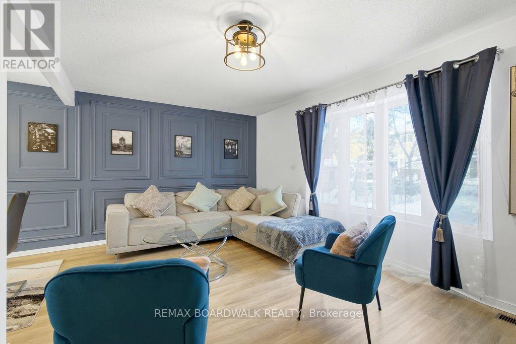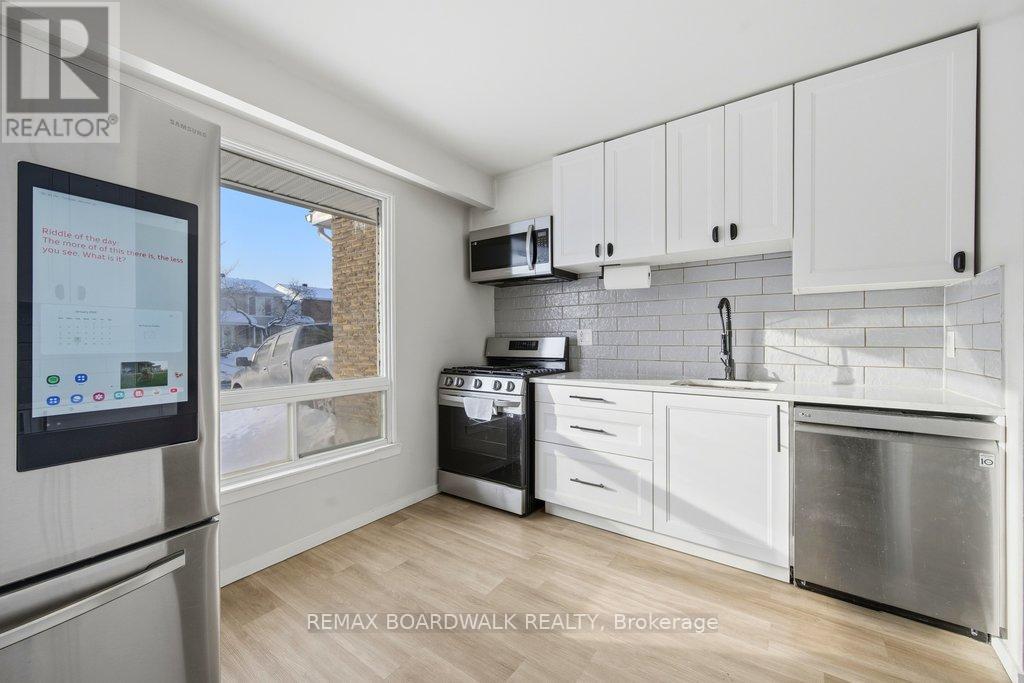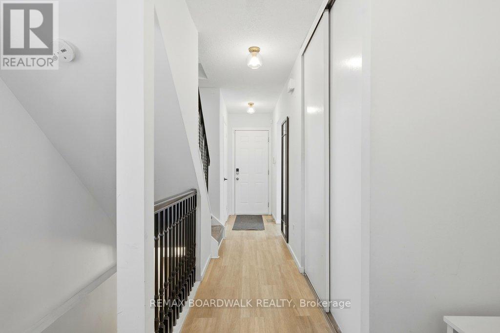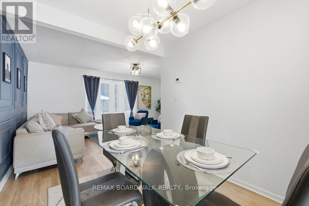 Welcome to Rondel Street in the heart of Blackburn Hamlet! A sought-after Costain Homes model offers one of the builder's most popular townhome layouts, featuring a bright, open-concept main floor filled with natural light. This end-unit carriage home has been extensively upgraded, showcasing crisp white cabinetry, stone countertops, upgraded flooring, and custom millwork that beautifully defines the living and dining areas. The finished basement, complete with new carpet (2026), provides the perfect family room or teenage retreat. Step outside to a fully fenced, low-maintenance backyard where you can relax or entertain on the expansive 200+ sq. ft. deck or unwind on the interlock patio (15X15) with a full gazebo. Additional highlights include a one-car garage equipped with a Stage 2 EV charger. Ideally located within walking distance to shopping, transit, schools, parks, the public library, and the community swimming pool, this home combines comfort, convenience, and thoughtful upgrades in a fantastic neighbourhood. (id:64974)