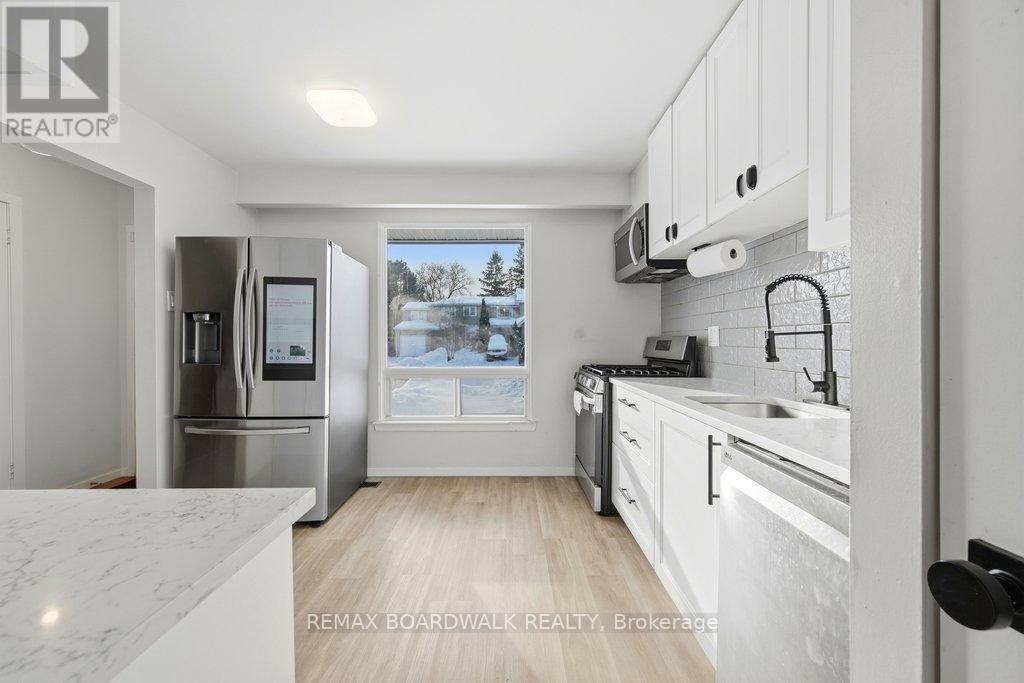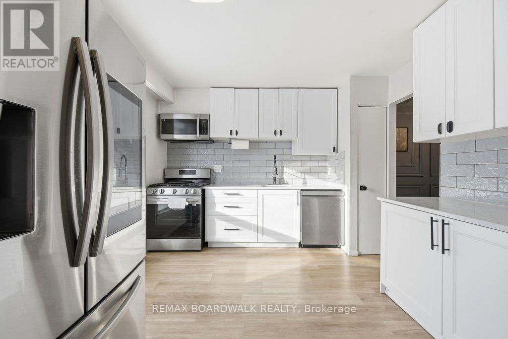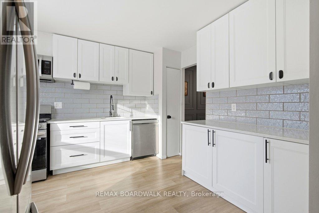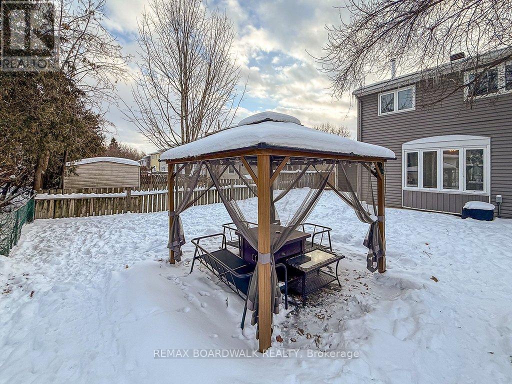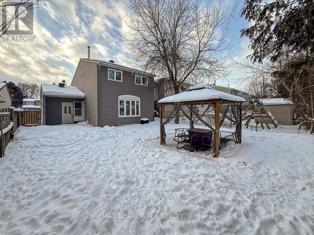 Welcome to Rondel Street in the heart of Blackburn Hamlet! A sought-after Costain Homes model offers one of the builder's most popular townhome layouts, featuring a bright, open-concept main floor filled with natural light. This end-unit carriage home has been extensively upgraded, showcasing crisp white cabinetry, stone countertops, upgraded flooring, and custom millwork that beautifully defines the living and dining areas. The finished basement, complete with new carpet (2026), provides the perfect family room or teenage retreat. Step outside to a fully fenced, low-maintenance backyard where you can relax or entertain on the expansive 200+ sq. ft. deck or unwind on the interlock patio (15X15) with a full gazebo. Additional highlights include a one-car garage equipped with a Stage 2 EV charger. Ideally located within walking distance to shopping, transit, schools, parks, the public library, and the community swimming pool, this home combines comfort, convenience, and thoughtful upgrades in a fantastic neighbourhood. (id:64974)