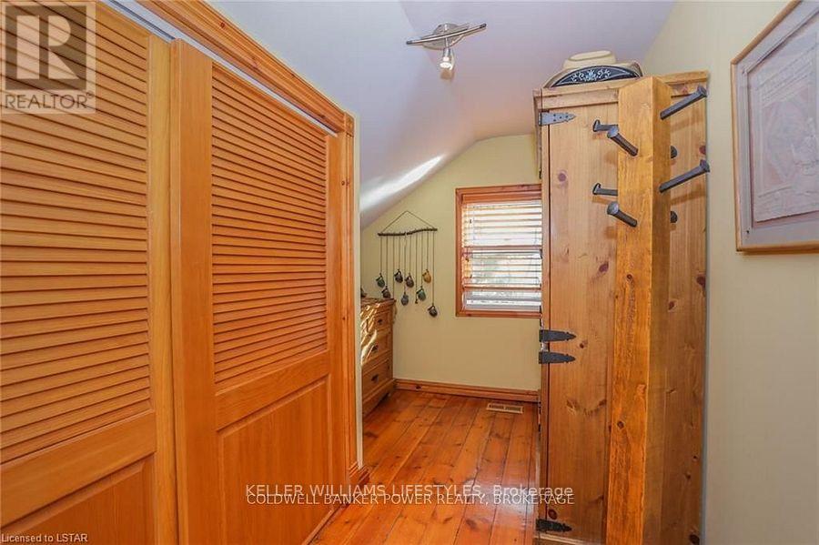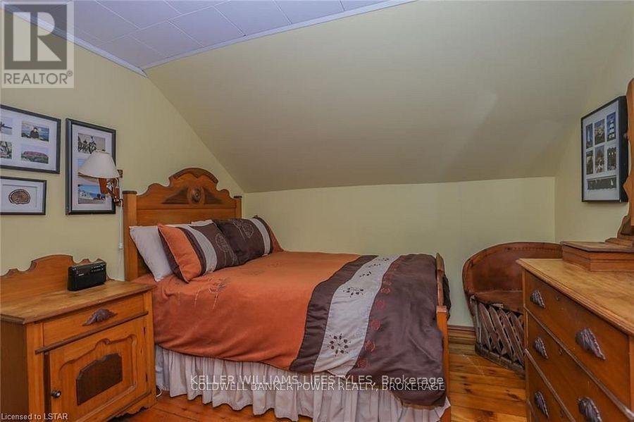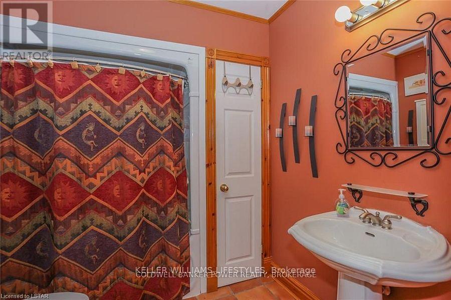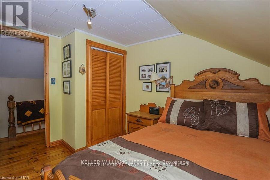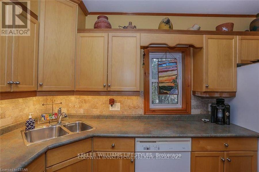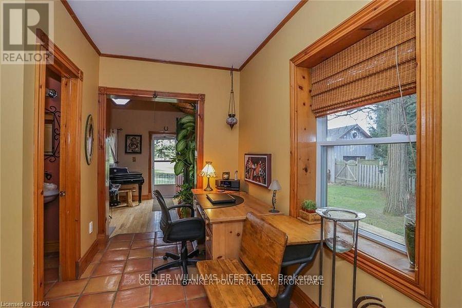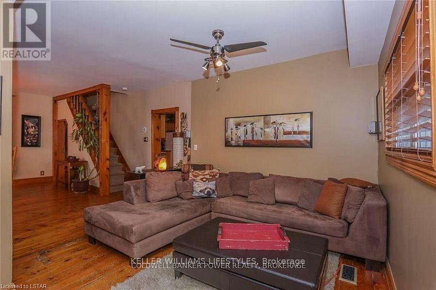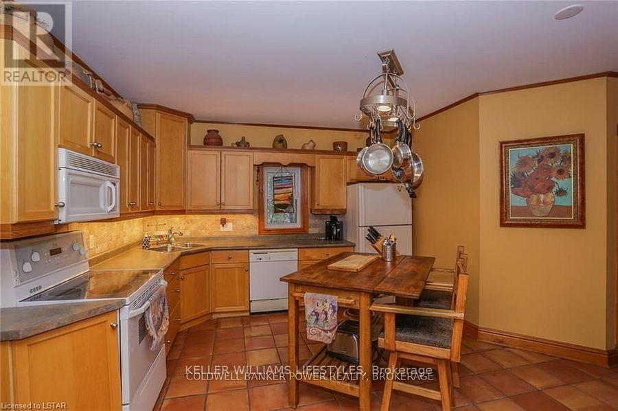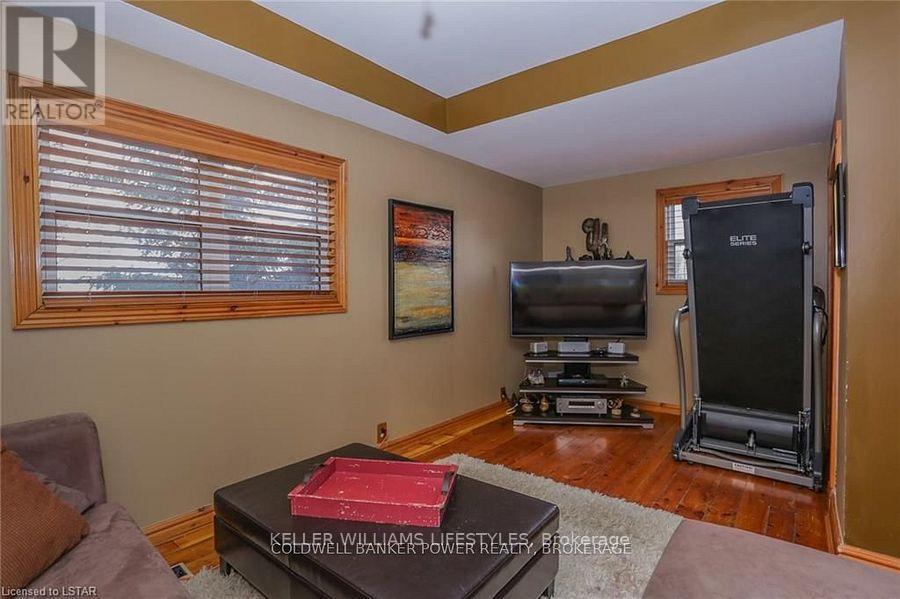 Looking for a place where life slows down and memories speed up? Welcome to your everyday getaway. This charming country retreat sits on 2/3 of an acre just 15 minutes northwest of London and is the perfect blend of comfort, character, and outdoor living.Inside, you'll find warm wood tones, beautiful Mexican Saltillo tile, and soaring cathedral ceilings that give the home a cozy, cottage feel with plenty of space to gather. The family room, with its pine cathedral ceiling and gas fireplace stove, overlooks the backyard and is the kind of space you'll never want to leave. A huge front great room, updated kitchen, and spacious main floor laundry/mudroom make everyday living easy.Step outside and this is where the magic really happens, fully fenced, landscaped yard backing onto farmland for ultimate privacy. Host friends and family on the large deck with lighting and waterfall, relax in the 8-person hot tub, enjoy evenings around the fire, rinse off in the private outdoor shower, or hang out under the tiki hut. It's built for entertaining and unwinding.Updates include furnace and central air (2017), updated electrical panel, shingles (2010), upgraded eavestroughs, central vac in house and garage, and more. Excellent neighbours and a fantastic workshop/garage space (approx. 30' x 12.5' & 20.5' x 12') for hobbies, storage, or projects.This isn't just a home, it's where weekends happen... every single day. Don't miss it. (id:64974)