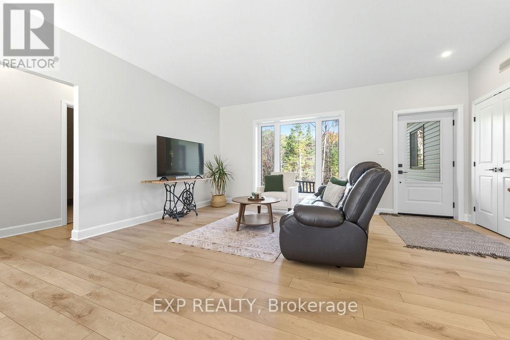 Welcome to 2394A Highway 132 just 5 minutes from the beautiful town of Renfrew, set on just over an acre of property surrounded by nature. This energy efficient 2023 built bungalow features ICF construction and in-floor radiant heating and offers three bedrooms, two full bathrooms, a beautiful, bright and spacious open concept living area combined with a custom kitchen, quartz countertops and a large island, perfect for morning breakfasts or gathering with friends. The primary bedroom features a luxurious ensuite and walk in-closet. Two additional generously sized bedrooms complete the home, along with a bonus room perfect for a home office or additional storage space. An attached garage with in-floor heating completes this turn-key home. (id:64974)