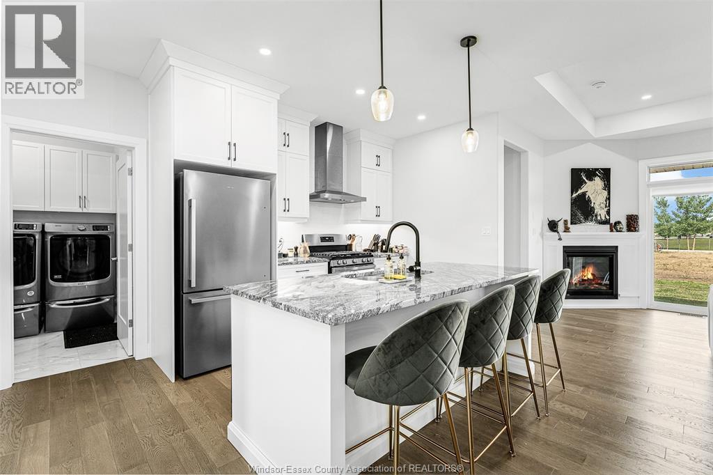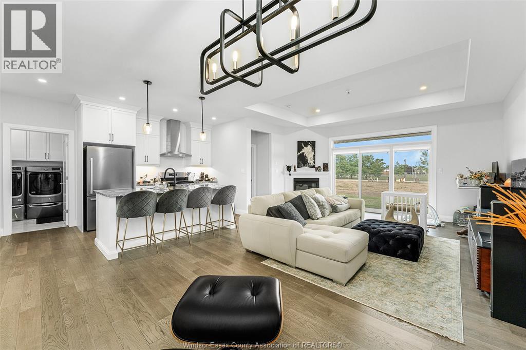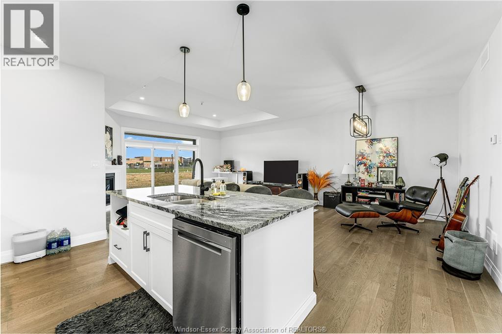 Step into luxury at 2398 Barkley, a beautifully finished 2-bedroom, 2-bathroom ranch townhouse in a prime east Windsor. This elegant home features a custom kitchen with an oversized quartz island, flowing into a bright great room with gas fireplace and a dining area that opens to a spacious covered patio. The primary suite includes coffered ceilings, a large walk-in closet, and a stunning ensuite with a ceramic and glass shower. With 9-foot ceilings, engineered hardwood floors, detailed trim, and a main floor laundry room, every inch is thoughtfully designed. Lawn care and snow removal are covered with a $95/month fee, and the sodded yard with sprinkler system is included. Seller is open to finishing the basement before closing at an agreed price. Seller reserves the right to accept or reject any/all offers for any reason. (id:64974)